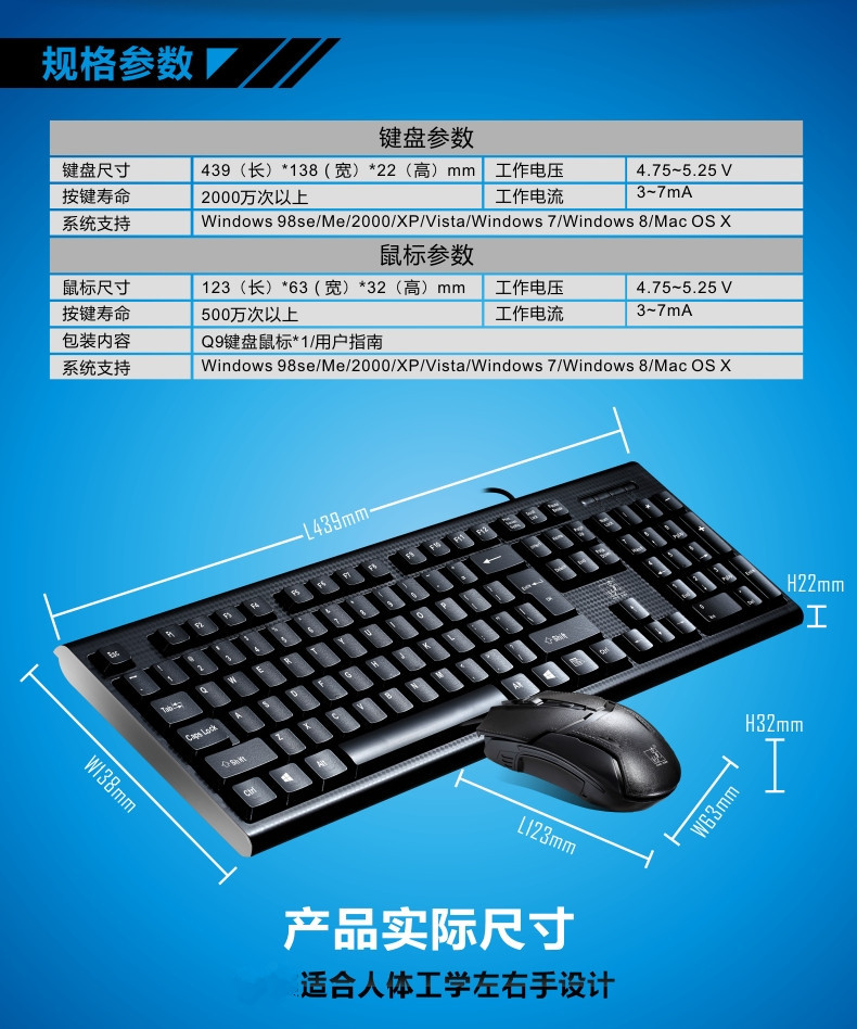 Chuang Guangbao Q9 USB 키보드 및 마우스 세트 유선 사무실 컴퓨터에 키보드 및 마우스 세트 액세서리 제조 업체 도매