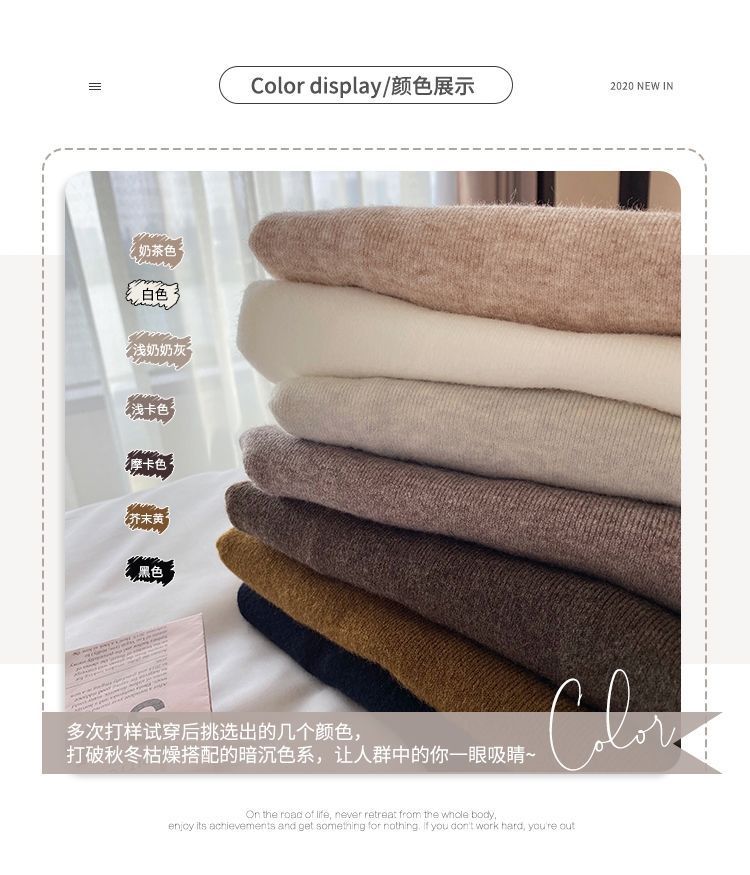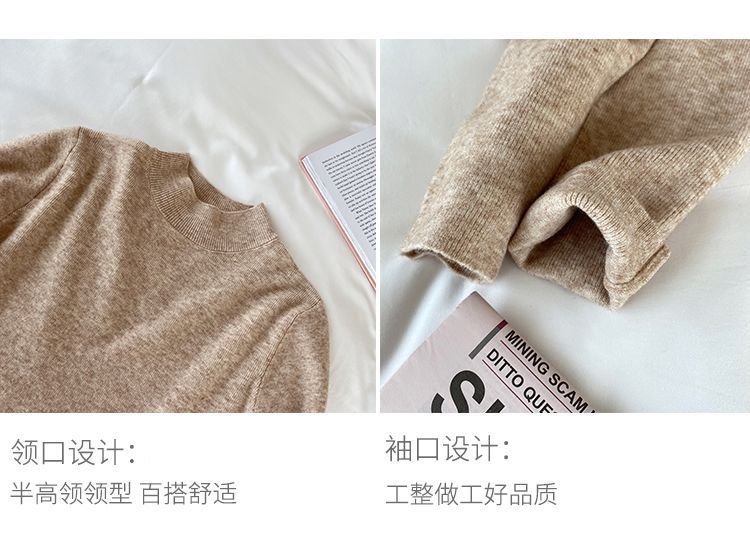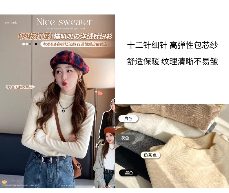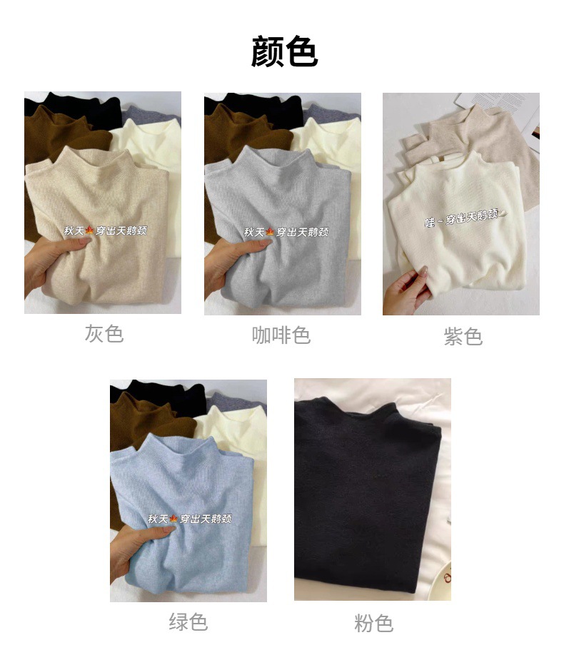 일본 스타일 간단한 작은 수직 칼라 니트베이스 셔츠 여성의 가을과 겨울 부드러운 왁스 긴 소매 내부 스웨터 캐주얼 올 매치 탑