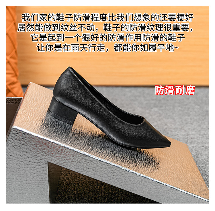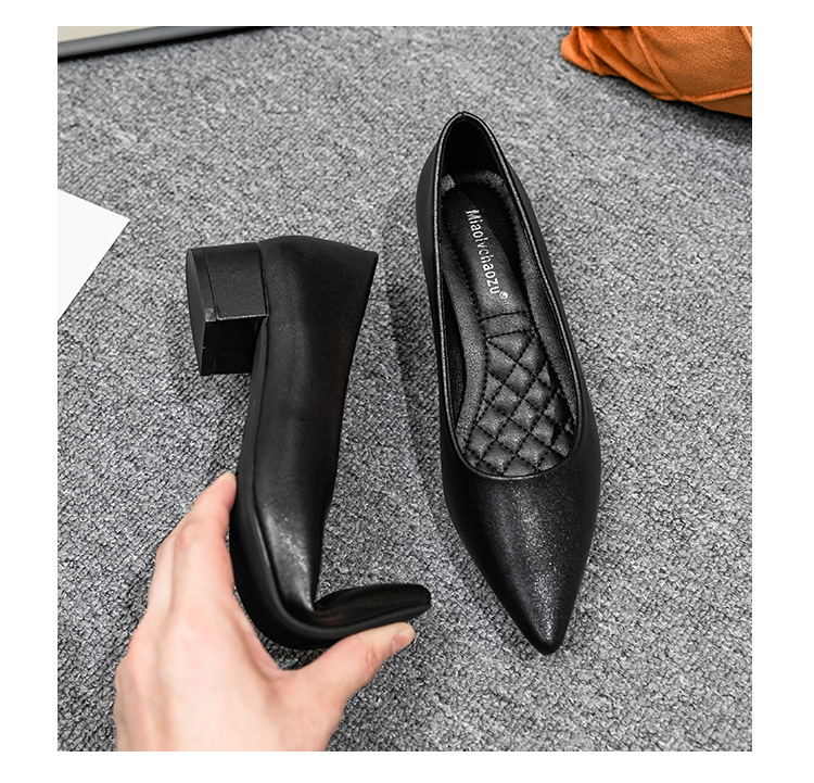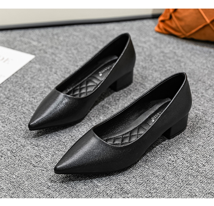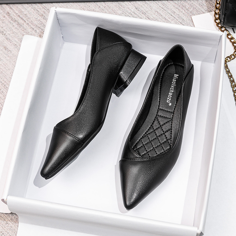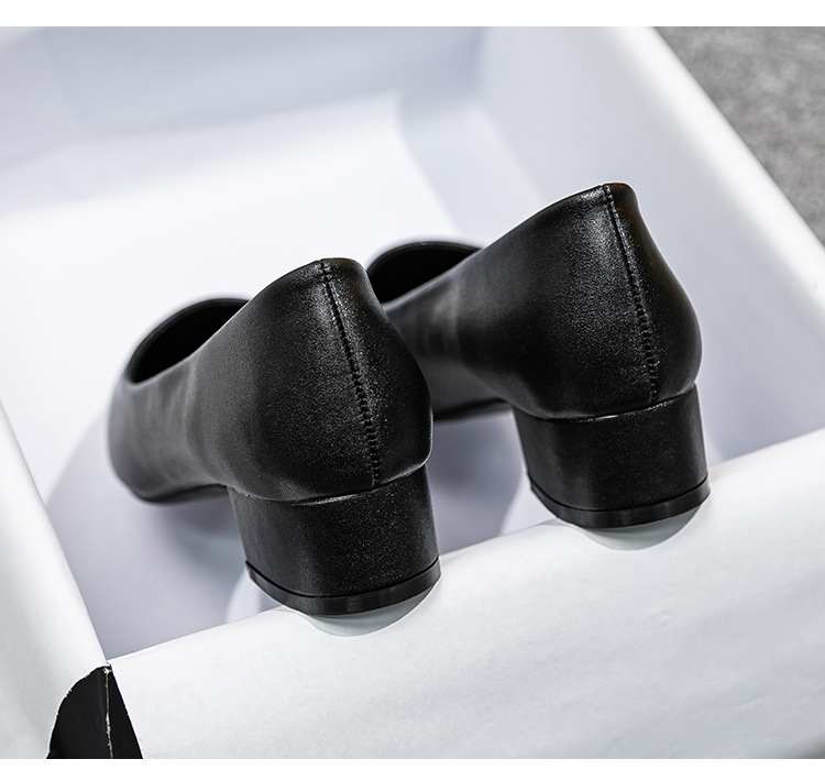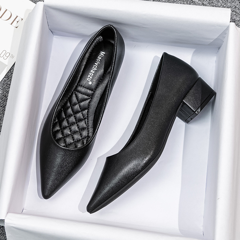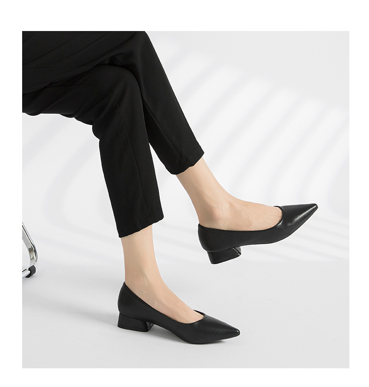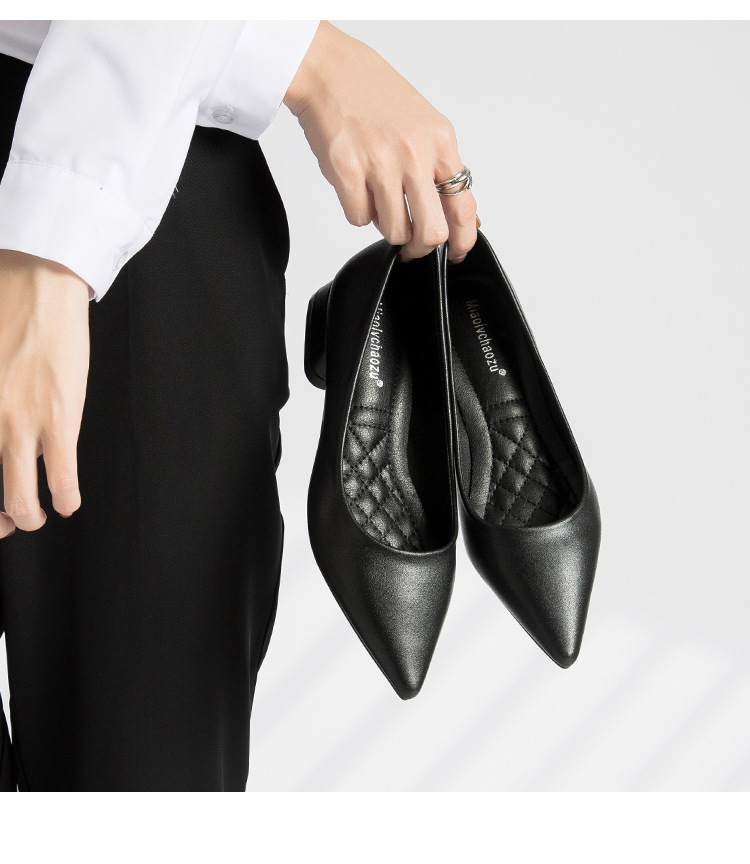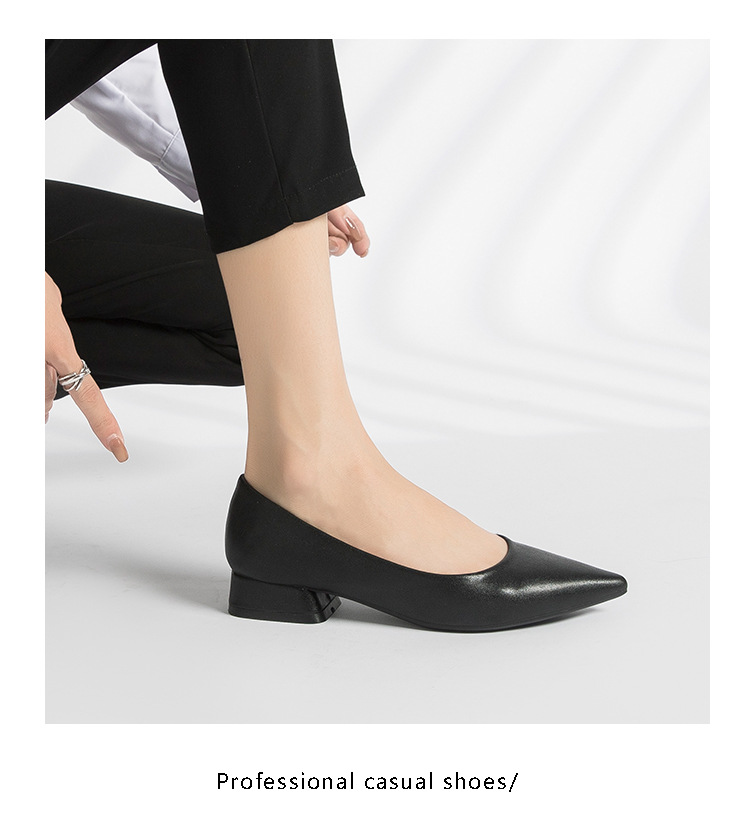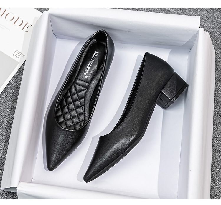 여성용 작업화, 블랙 소프트 가죽, 면접용, 작업복, 다용도, 뾰족코, 굽이 두꺼운 싱글 슈즈, 여성용 부드러운 밑창 가죽 신발, 여성용 중간 굽