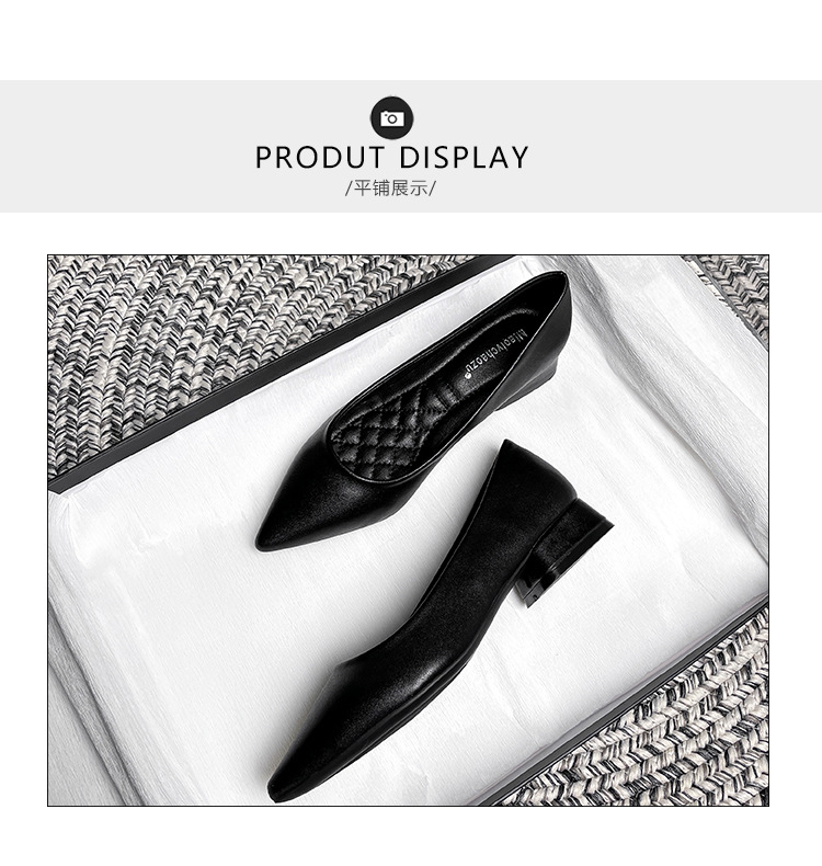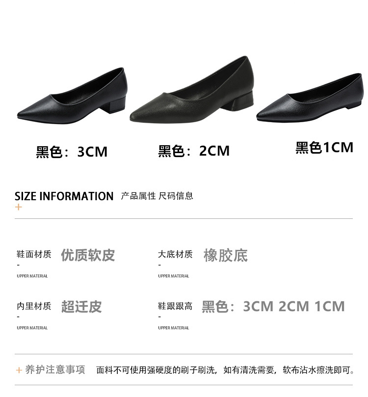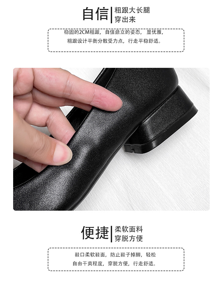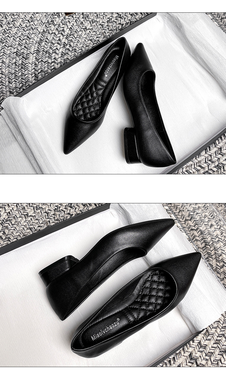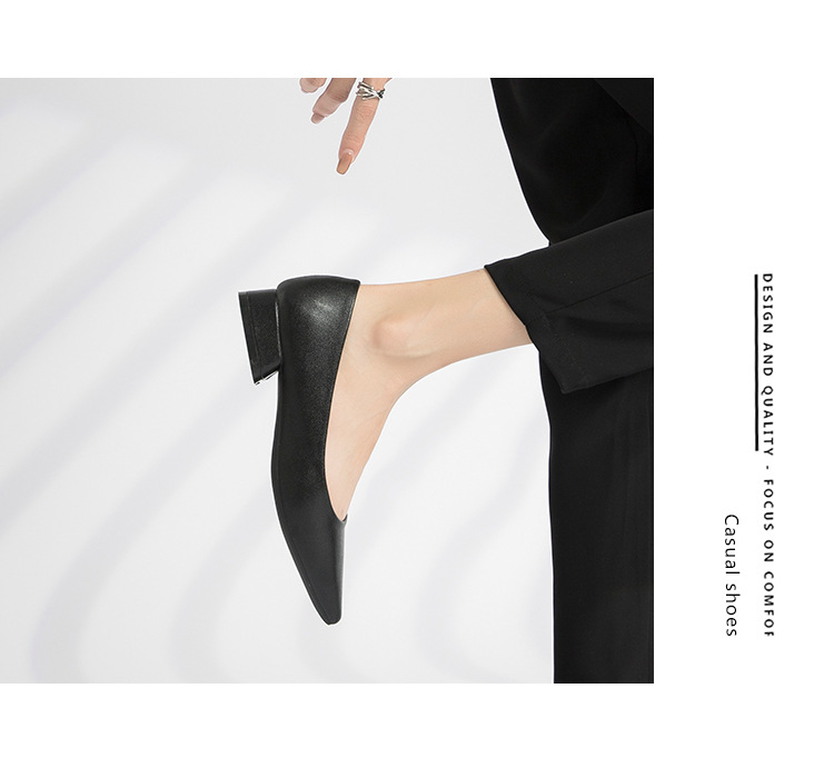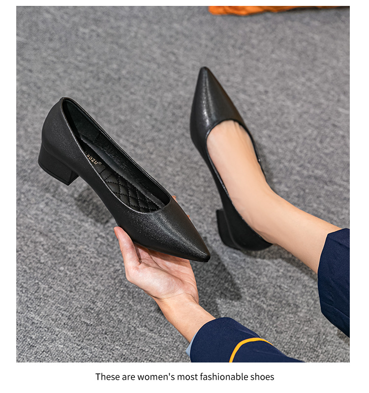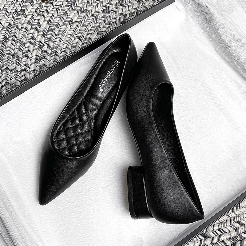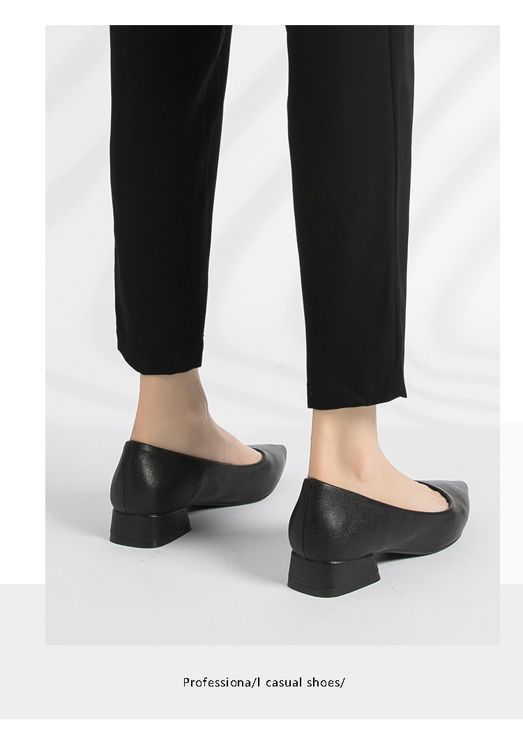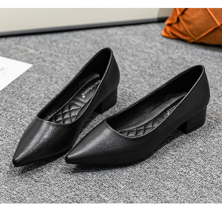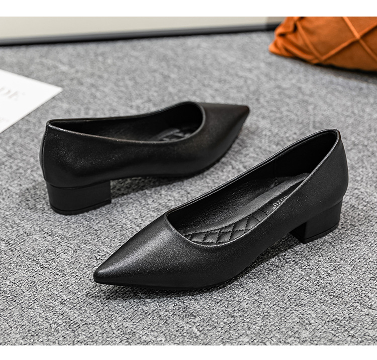 여성용 작업화, 블랙 소프트 가죽, 면접용, 작업복, 다용도, 뾰족코, 굽이 두꺼운 싱글 슈즈, 여성용 부드러운 밑창 가죽 신발, 여성용 중간 굽