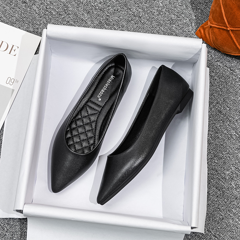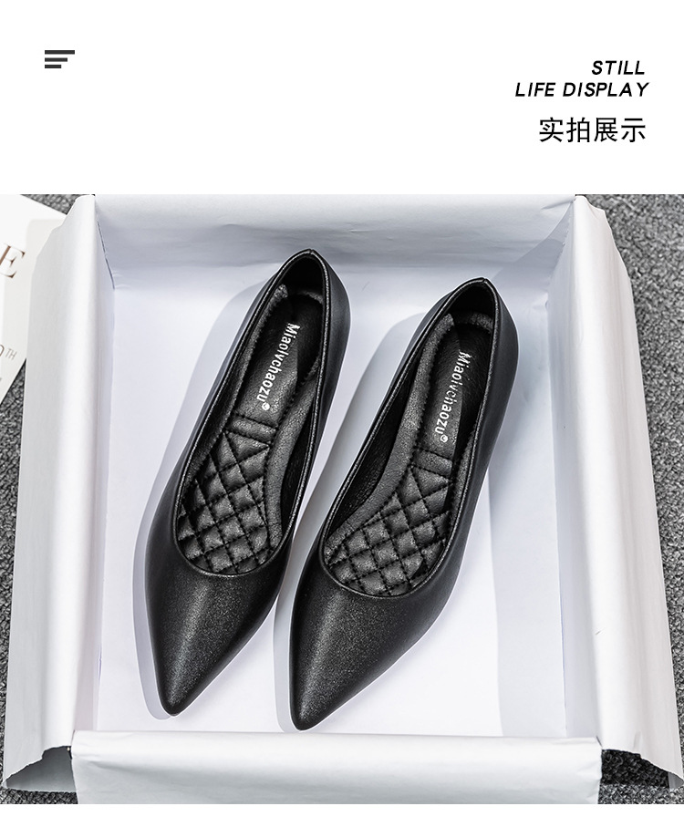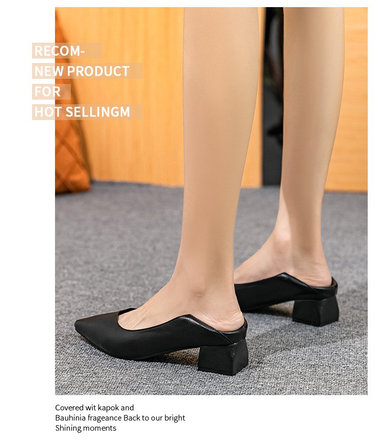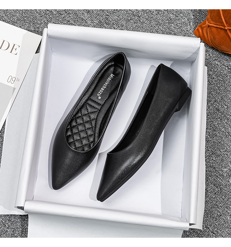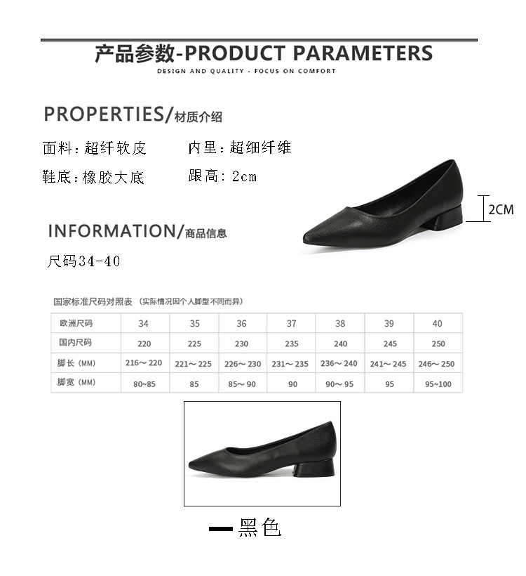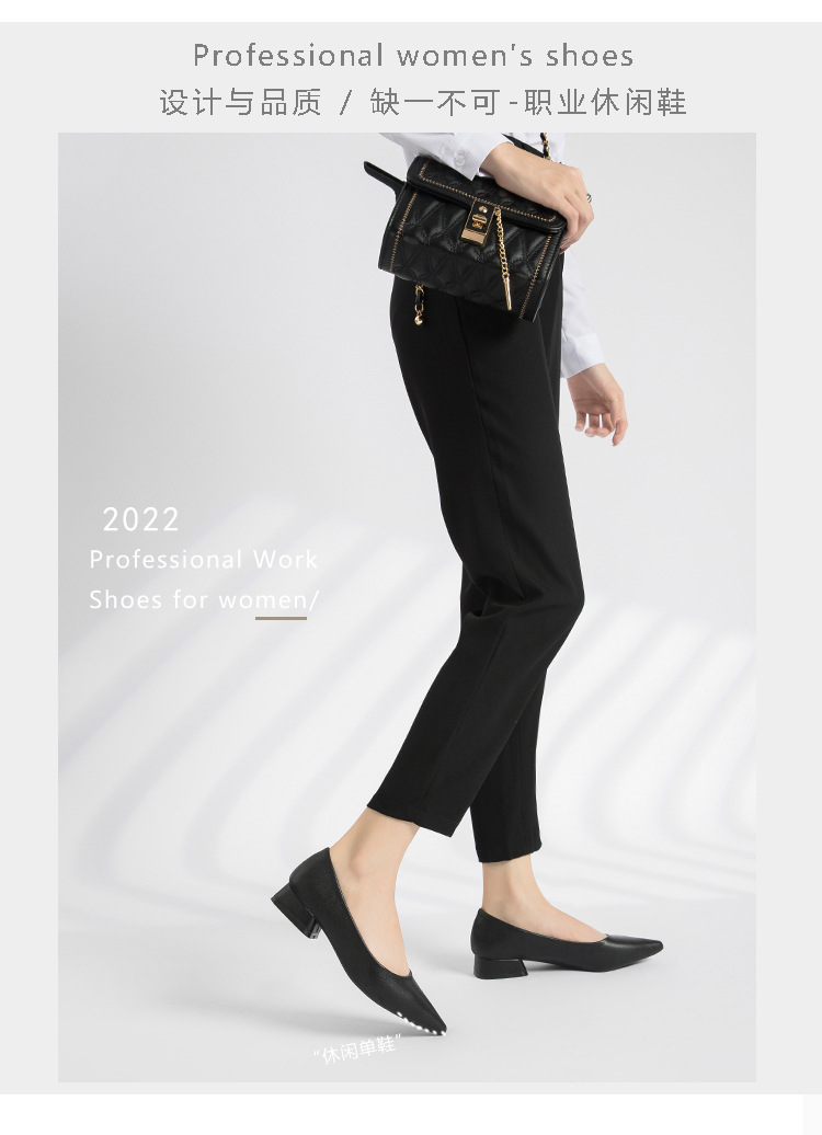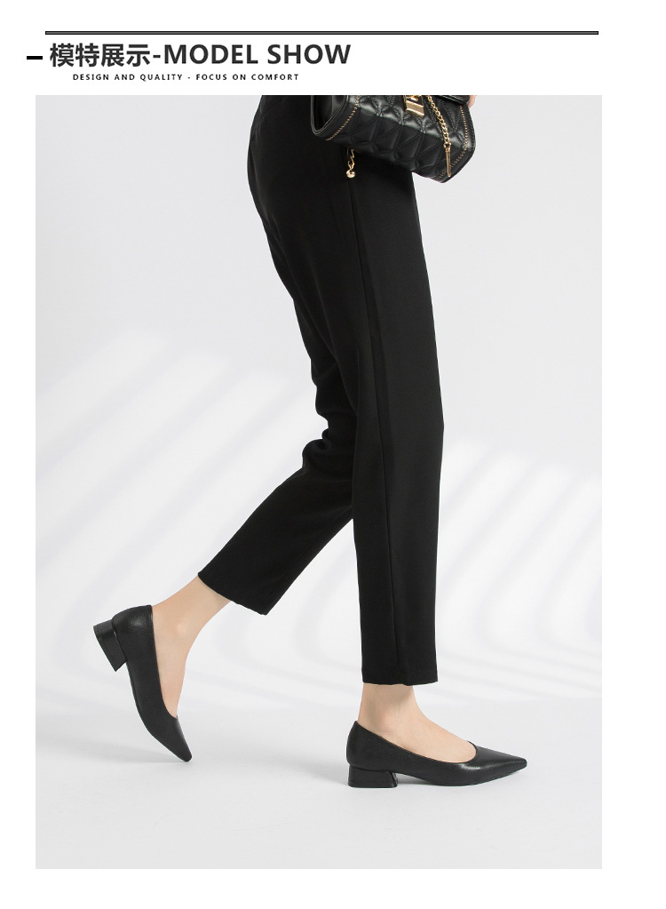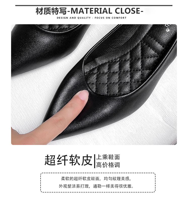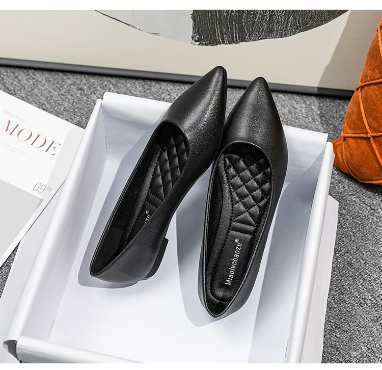 여성용 작업화, 블랙 소프트 가죽, 면접용, 작업복, 다용도, 뾰족코, 굽이 두꺼운 싱글 슈즈, 여성용 부드러운 밑창 가죽 신발, 여성용 중간 굽