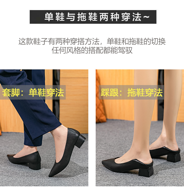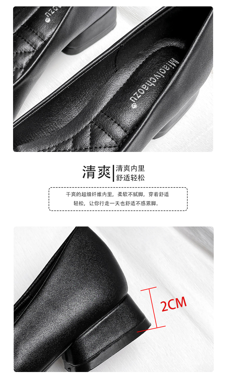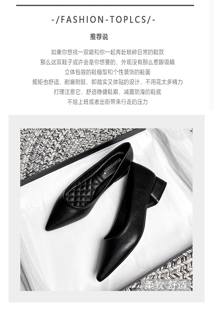 여성용 작업화, 블랙 소프트 가죽, 면접용, 작업복, 다용도, 뾰족코, 굽이 두꺼운 싱글 슈즈, 여성용 부드러운 밑창 가죽 신발, 여성용 중간 굽스토어 가기