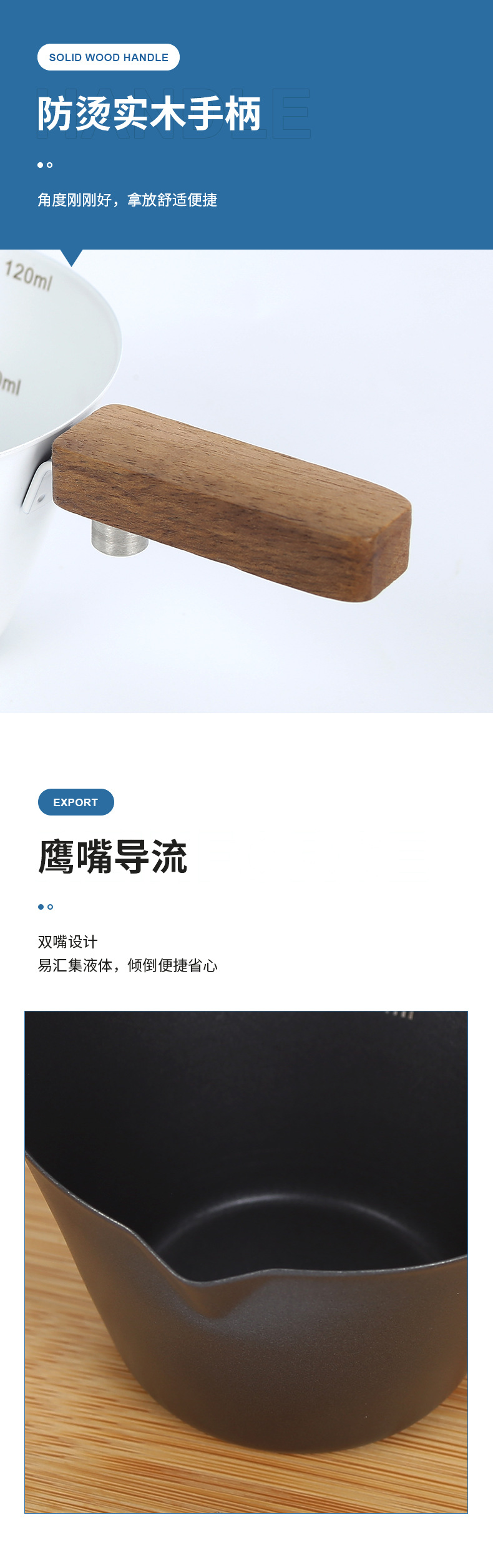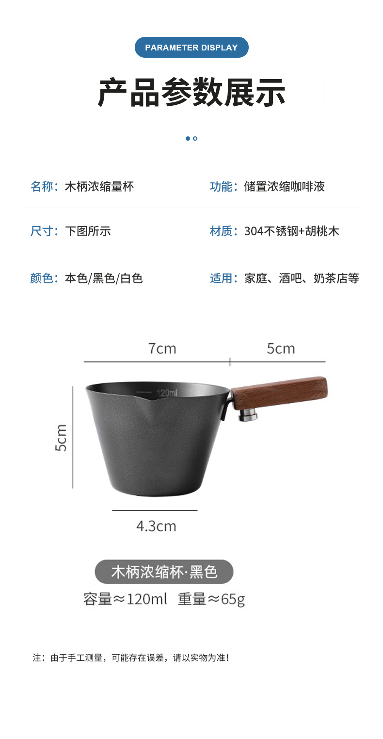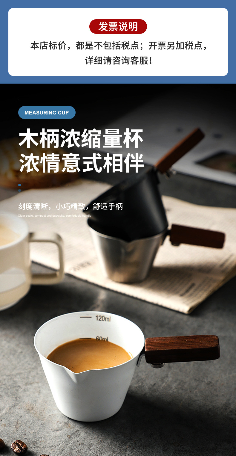 스케일 호두 손잡이 120ml 상업용 커피 추출 컵이있는 304 스테인레스 스틸 나무 손잡이 에스프레소 측정 컵스토어 가기