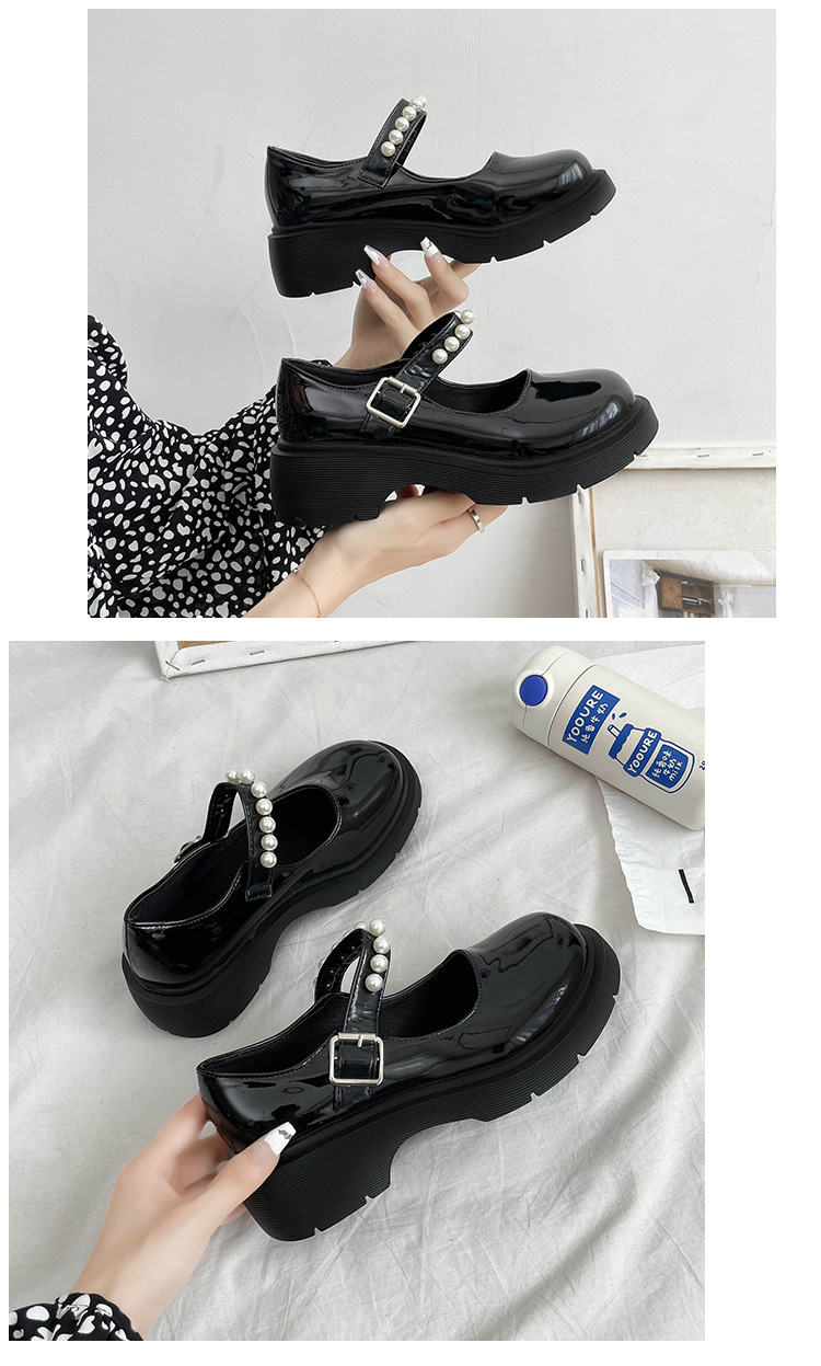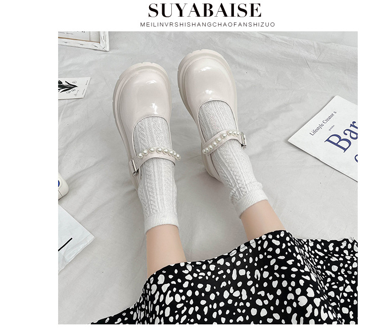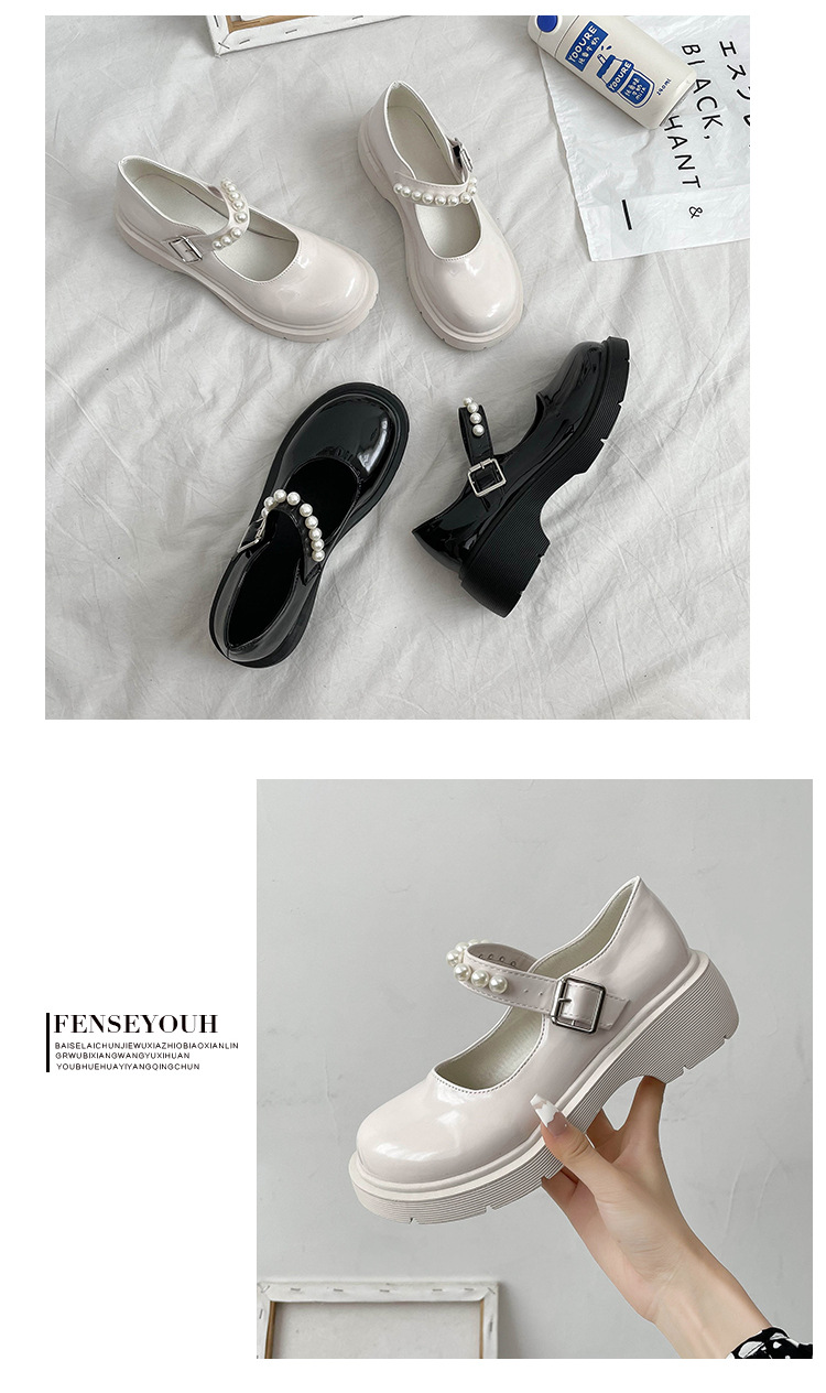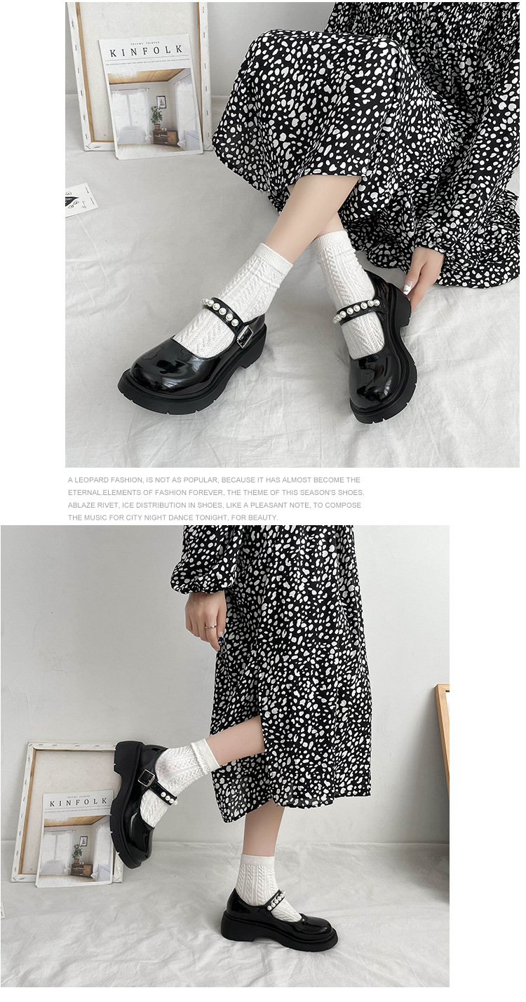 메리제인 슈즈 여성용 2025년 가을 신상 프렌치 스타일 라운드 토 얕은 굽 가죽 신발 진주 장식 굵은 굽 단화스토어 가기