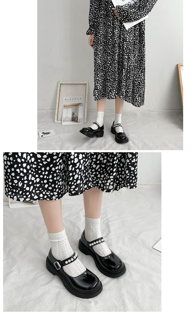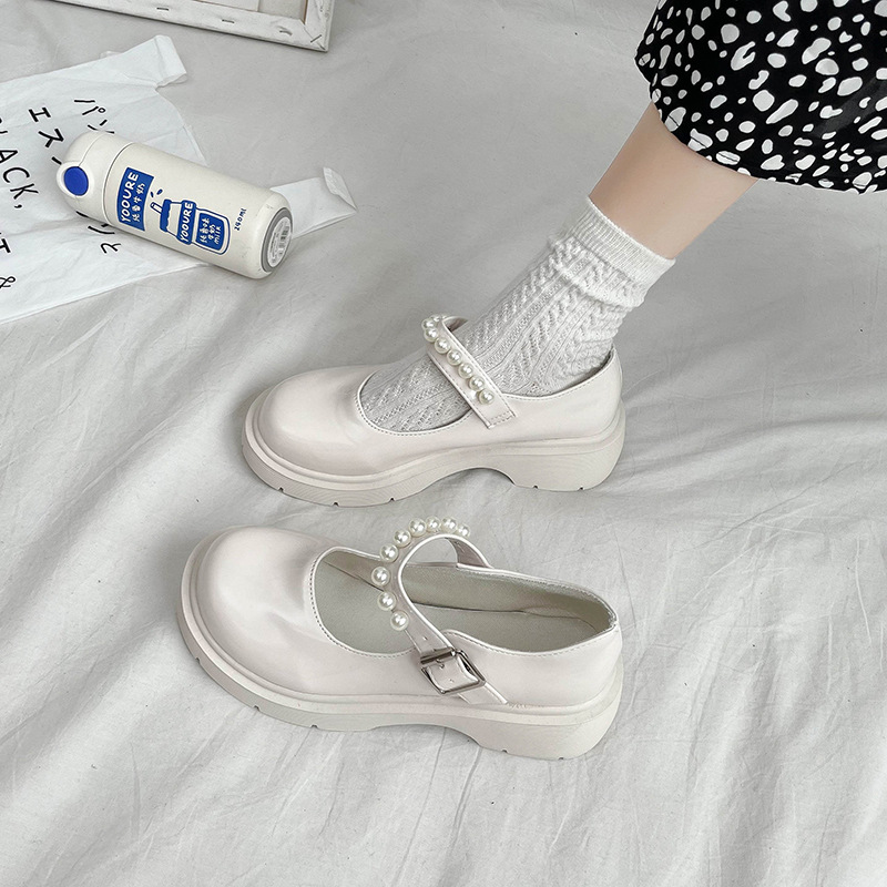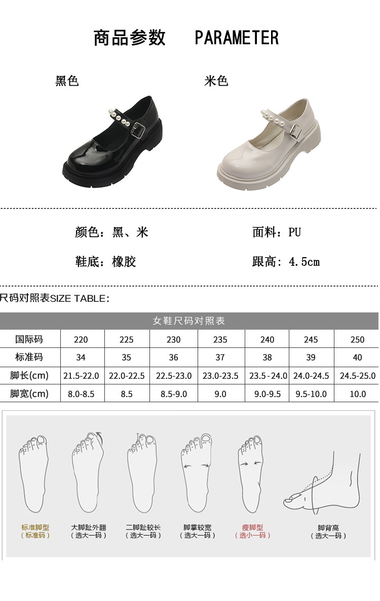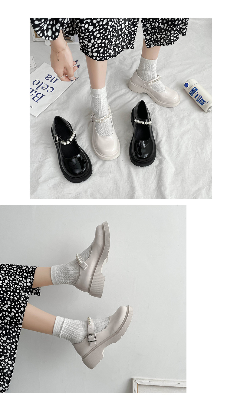 메리제인 슈즈 여성용 2025년 가을 신상 프렌치 스타일 라운드 토 얕은 굽 가죽 신발 진주 장식 굵은 굽 단화스토어 가기