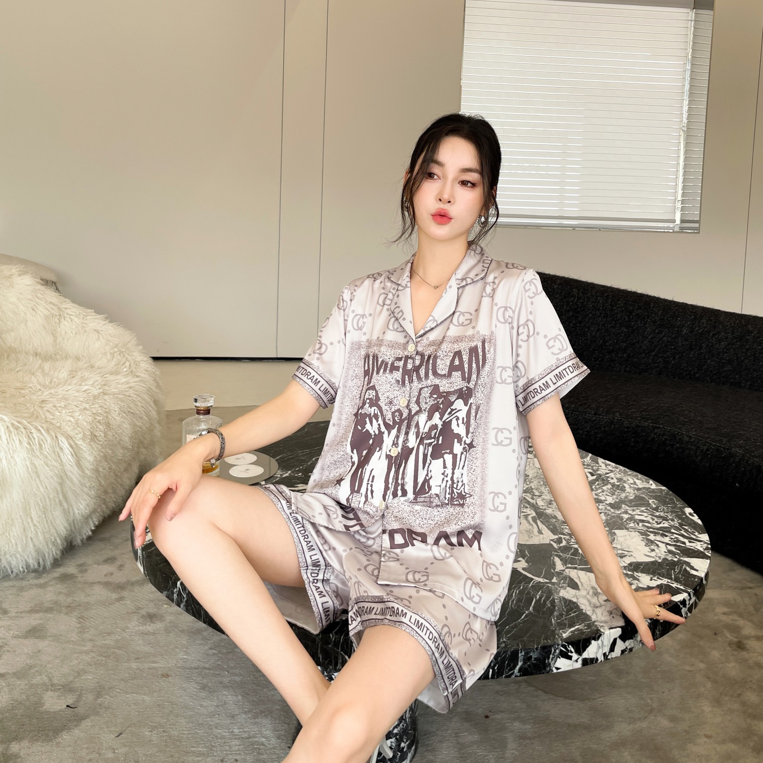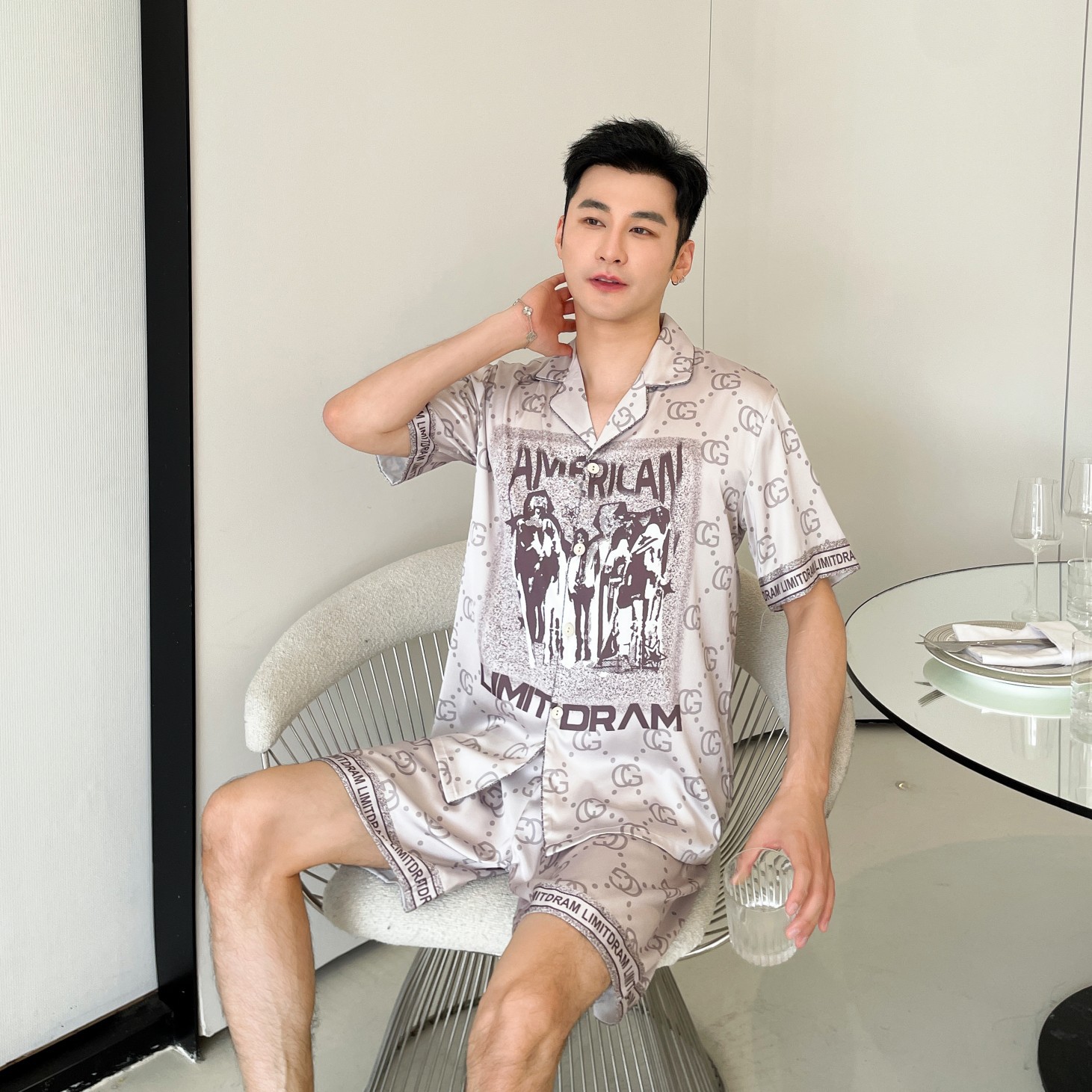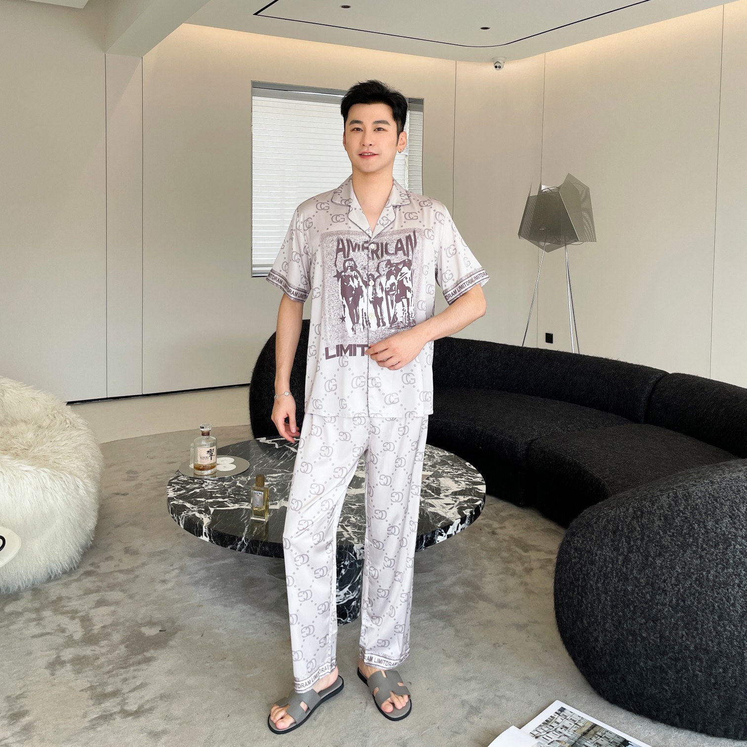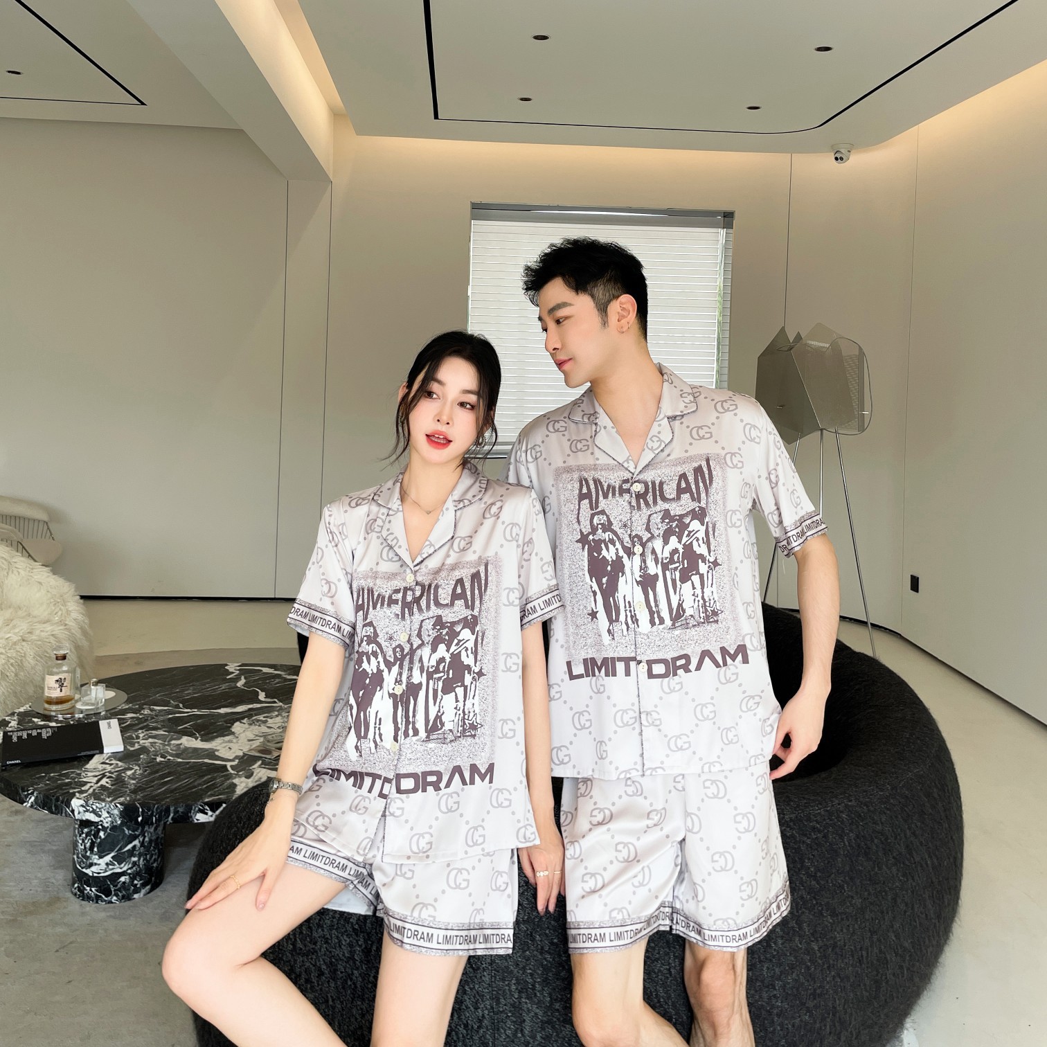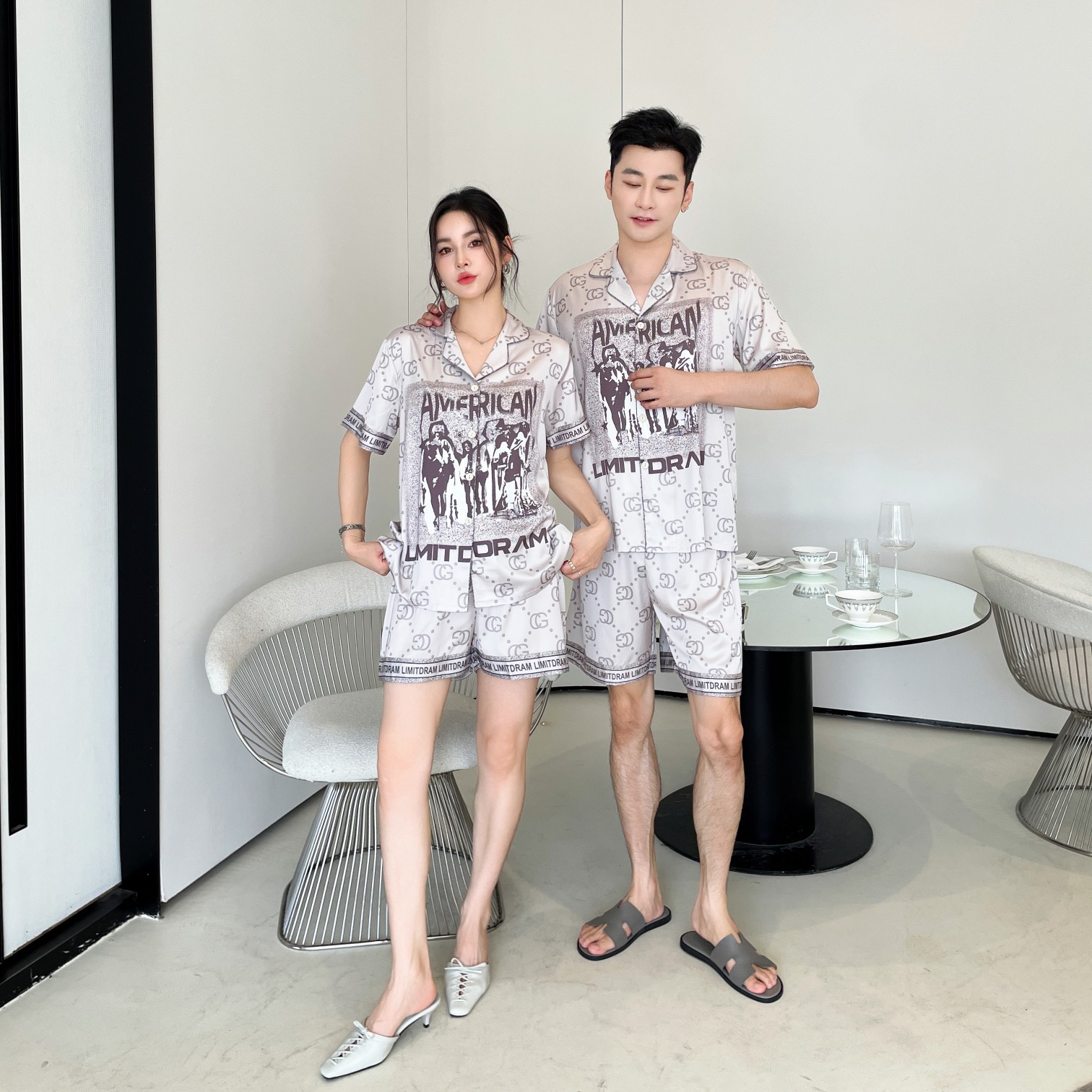 이른 봄 새 커플 잠옷 아이스 실크 긴 소매 홈 옷 남자 하이 엔드 포시즌 여자 아우터 세트 입고스토어 가기