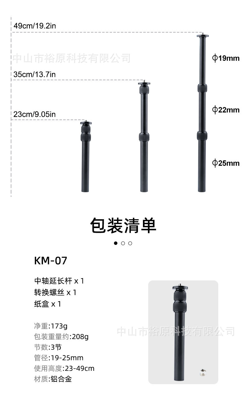 금속 3단 중앙축 연장봉 마이크로 DSLR 카메라 삼각대 사진 스탠드 안정기 짐벌 연장 액세서리