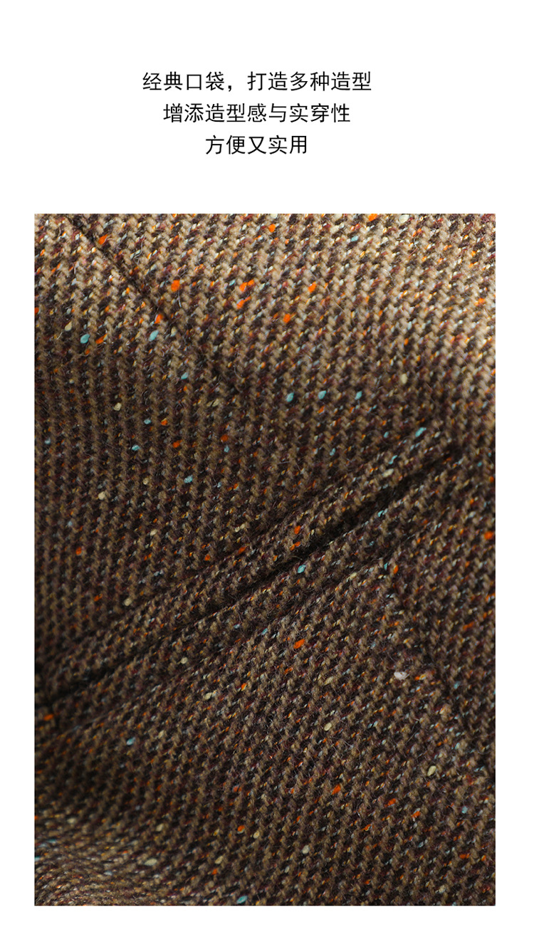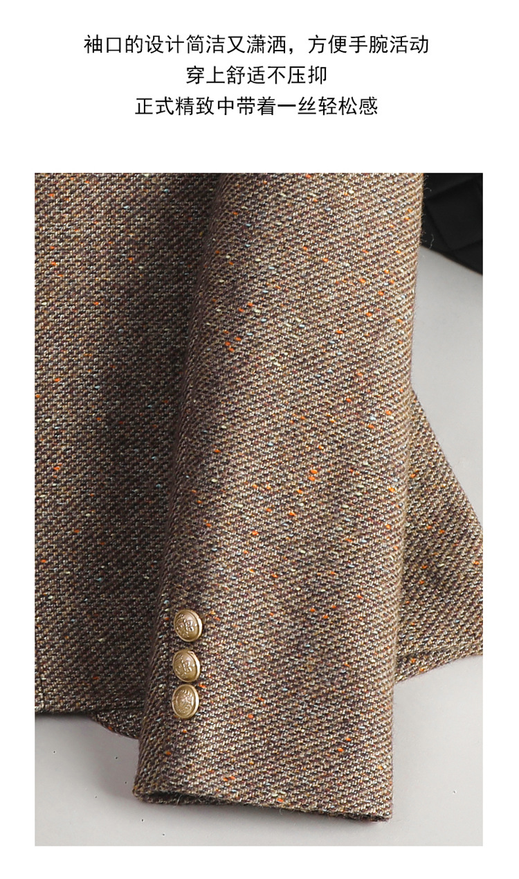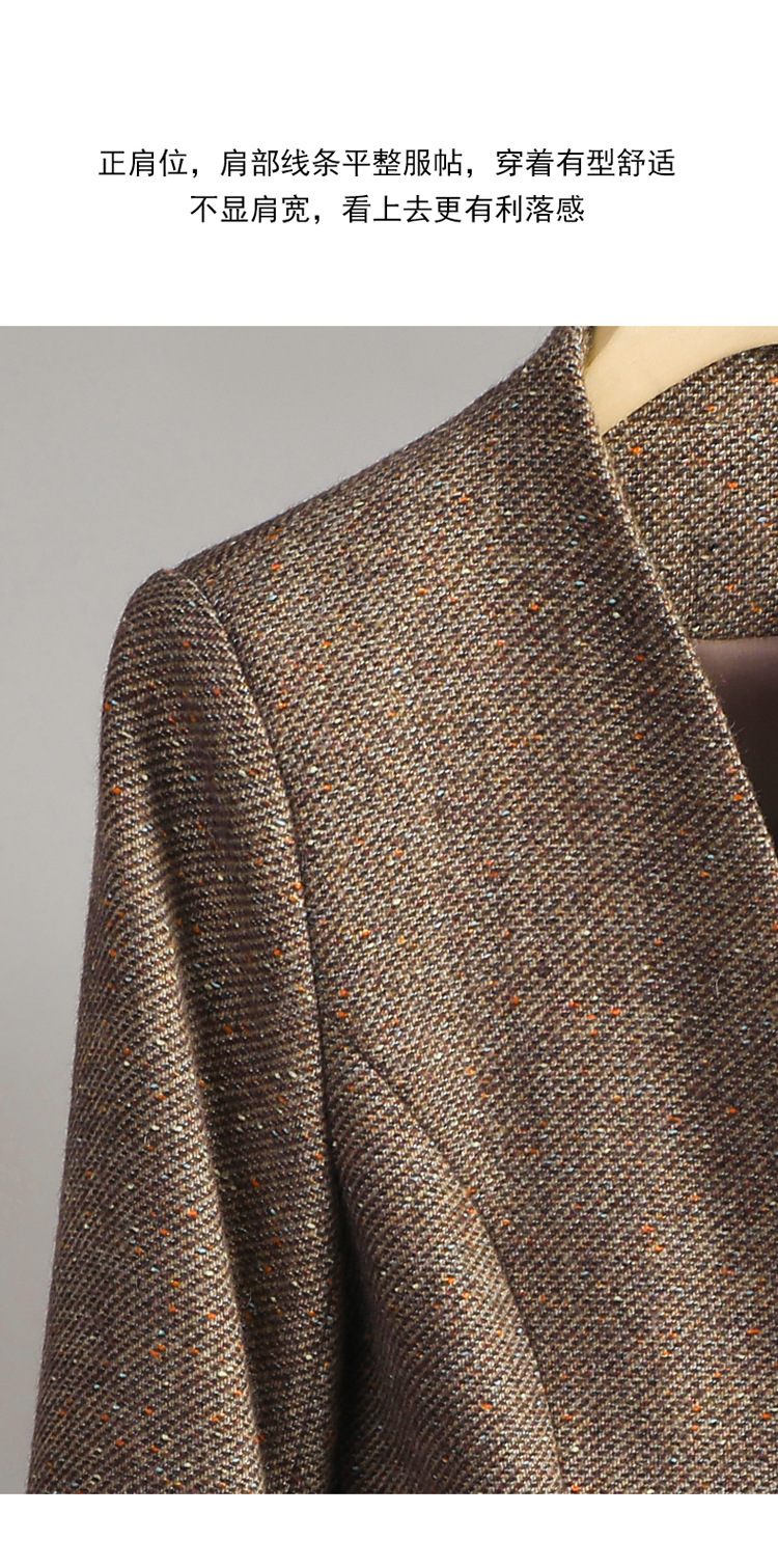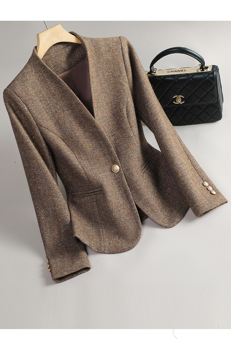 커피색 울 블레이저 여성 2025 가을/겨울 신상품, 우아한 샤넬 스타일, 스팽글, 칼라 없는 캐주얼 정장, OL스토어 가기