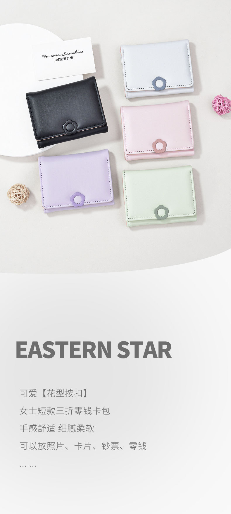 Dongxin 2024 한국어 버전 새로운 스타일 신선하고 달콤한 단색 단순 소형 70% off 미니 얇은 학생 짧은 지갑