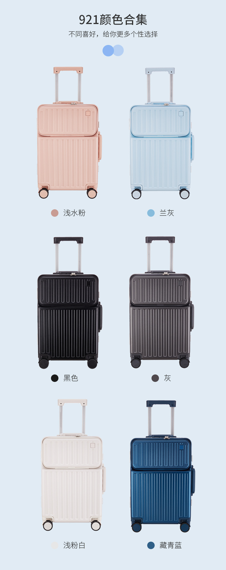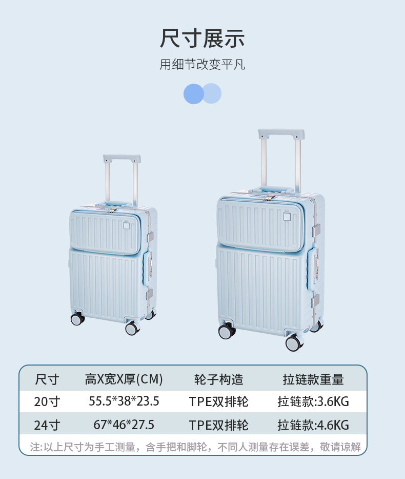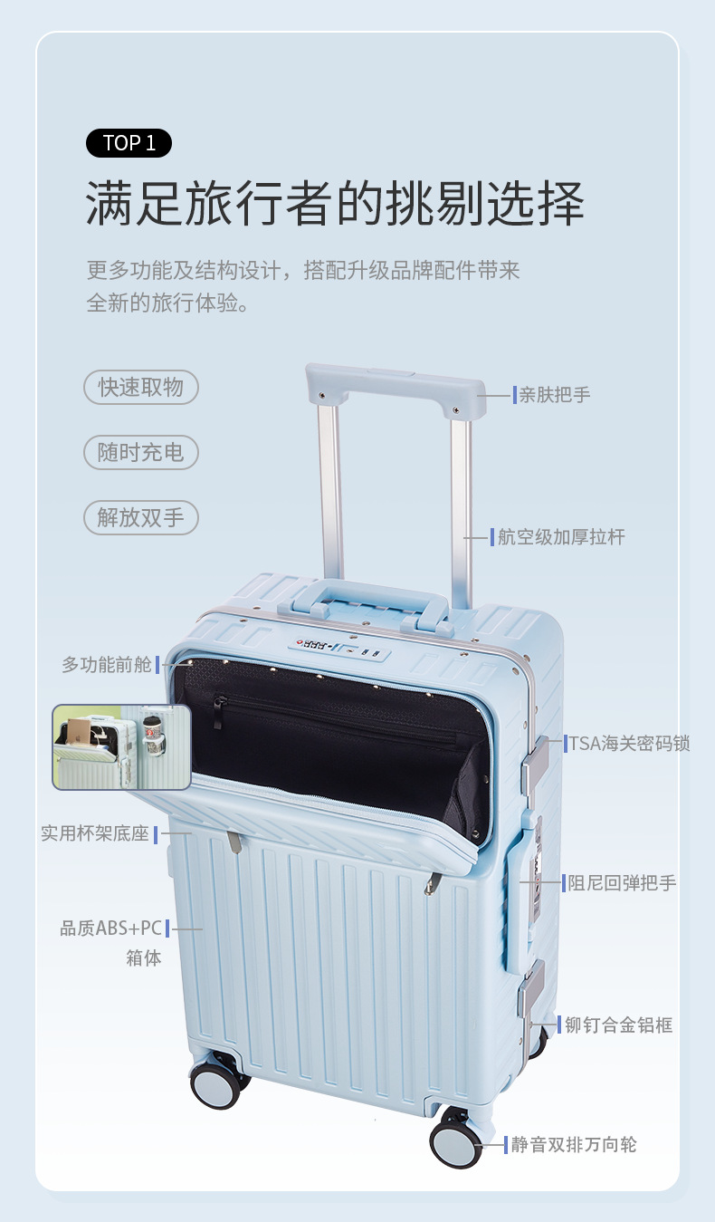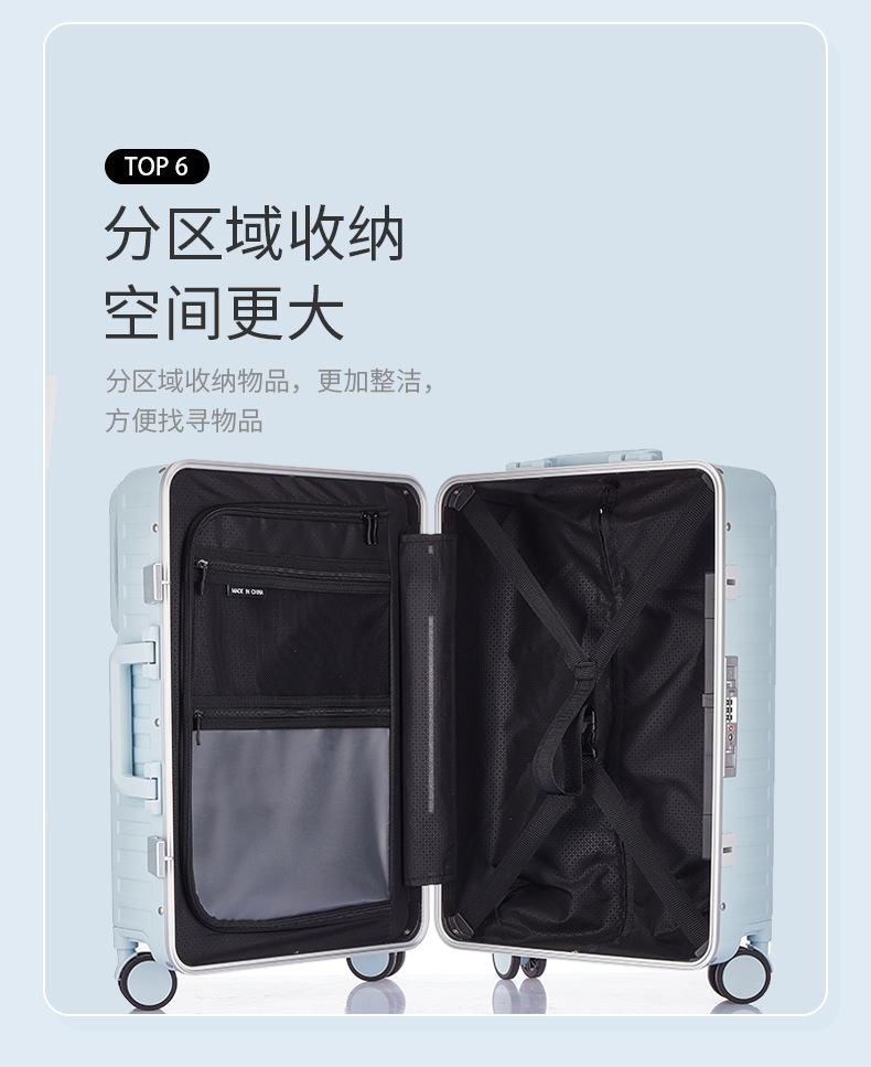 전면 개방 수하물 케이스 컴퓨터 트롤리 케이스 20 인치 접이식 케이스 유니버설 휠 알루미늄 프레임 가방