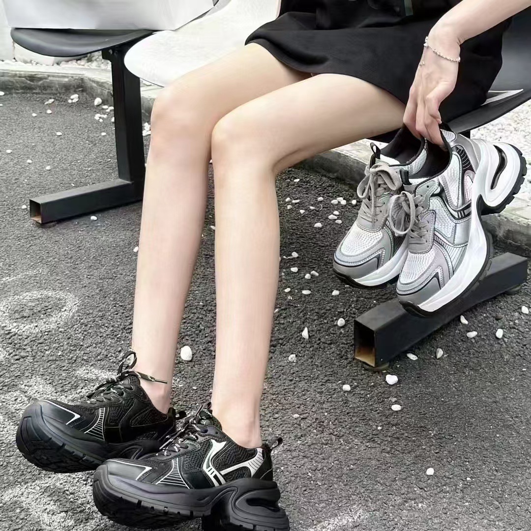 가오 벤 에디션 ~ 자오 루시 같은 두꺼운 바닥 가죽 캐주얼 운동화 7cm 작은 높이 증가 앞 레이스 토레 신발 여성