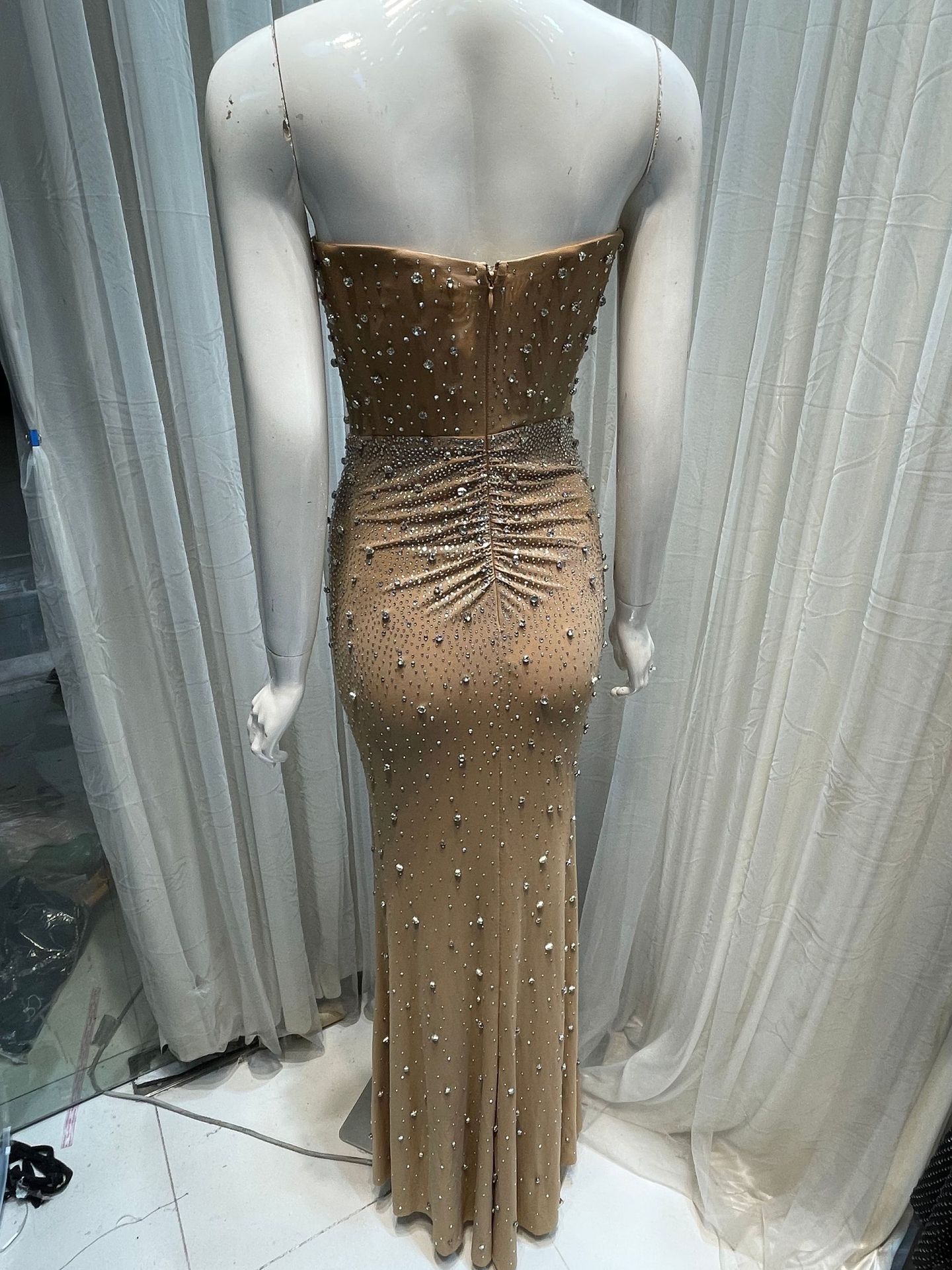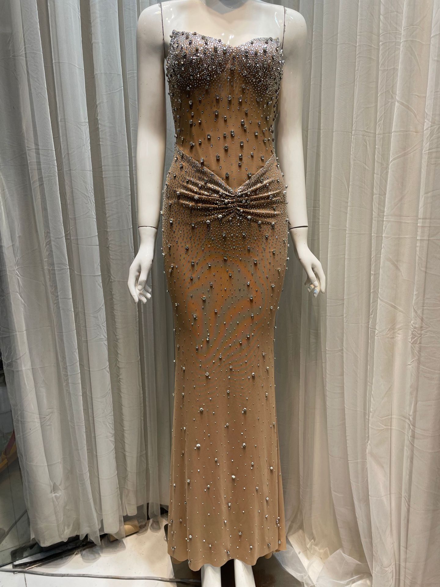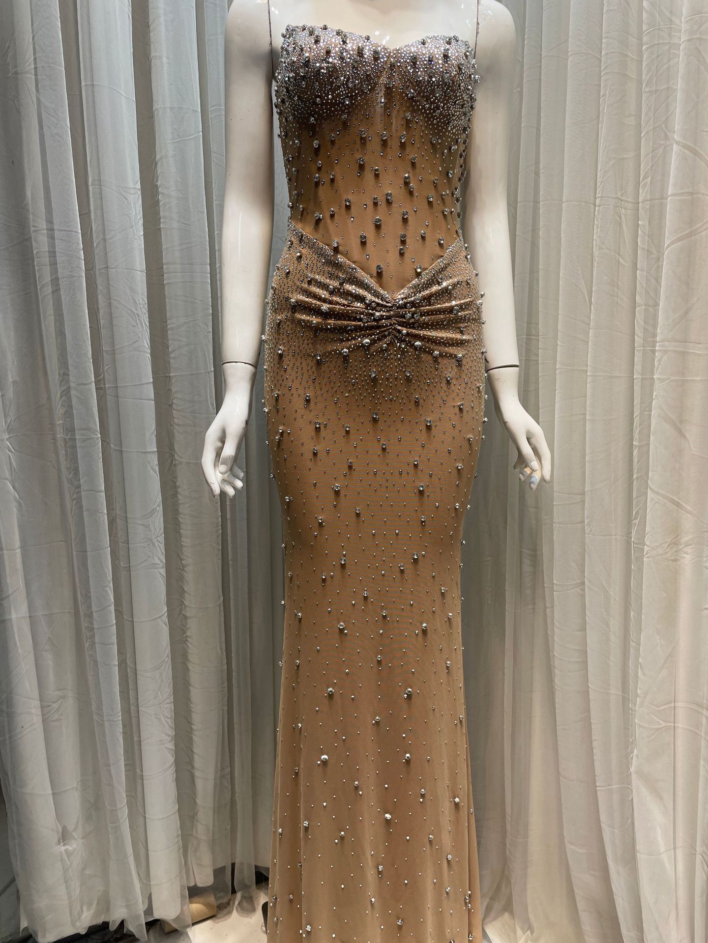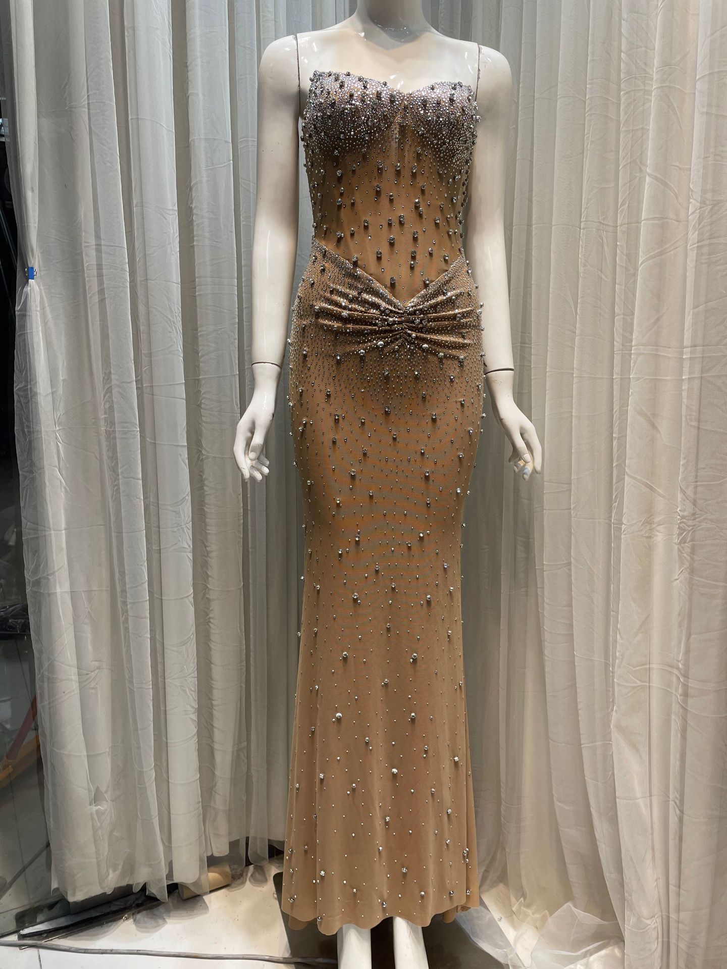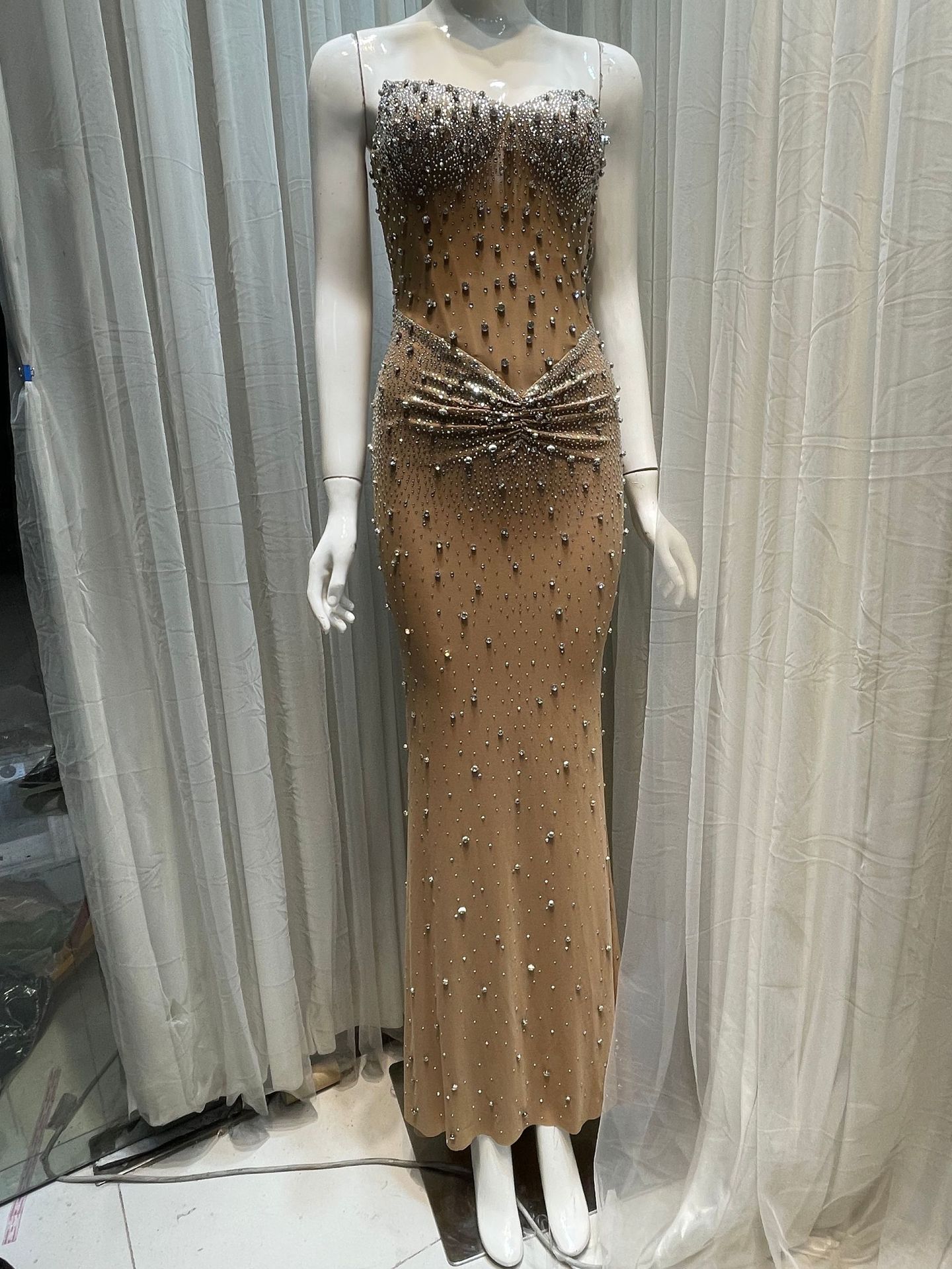 고급 중공업 우아한 럭셔리 풀 다이아몬드 섹시한 생선 뼈 튜브 탑 원피스 허리 엉덩이 긴 슬림-여성을위한 저녁 원피스스토어 가기