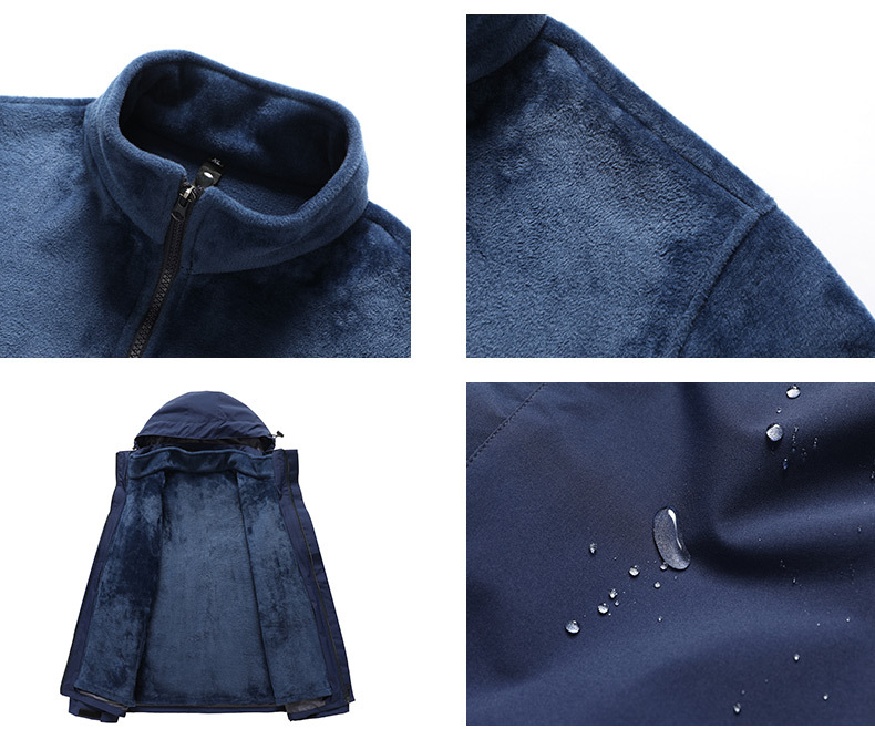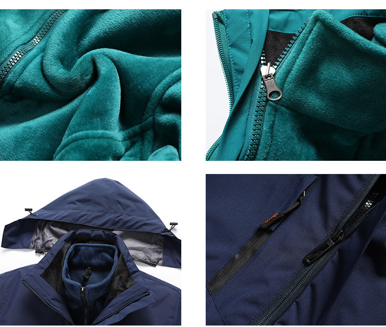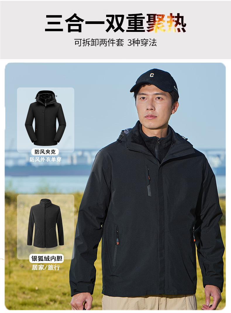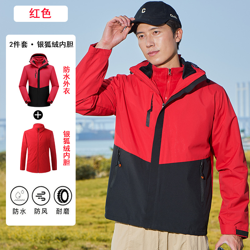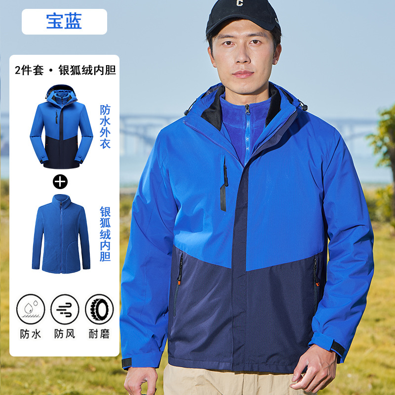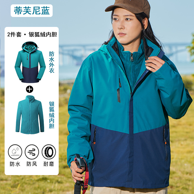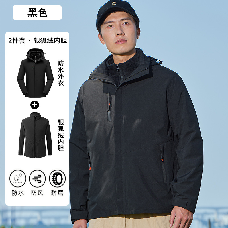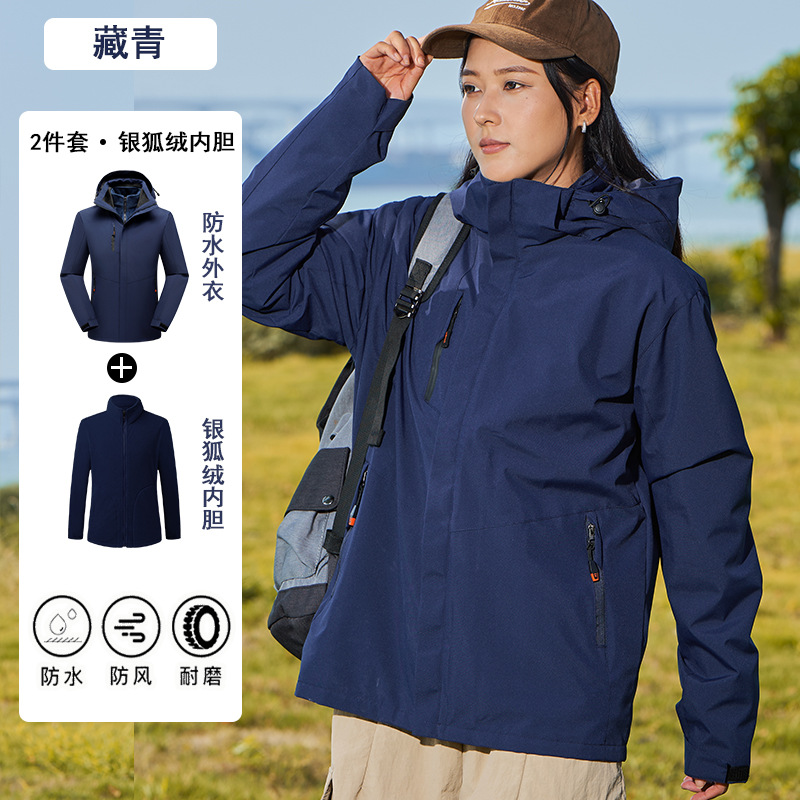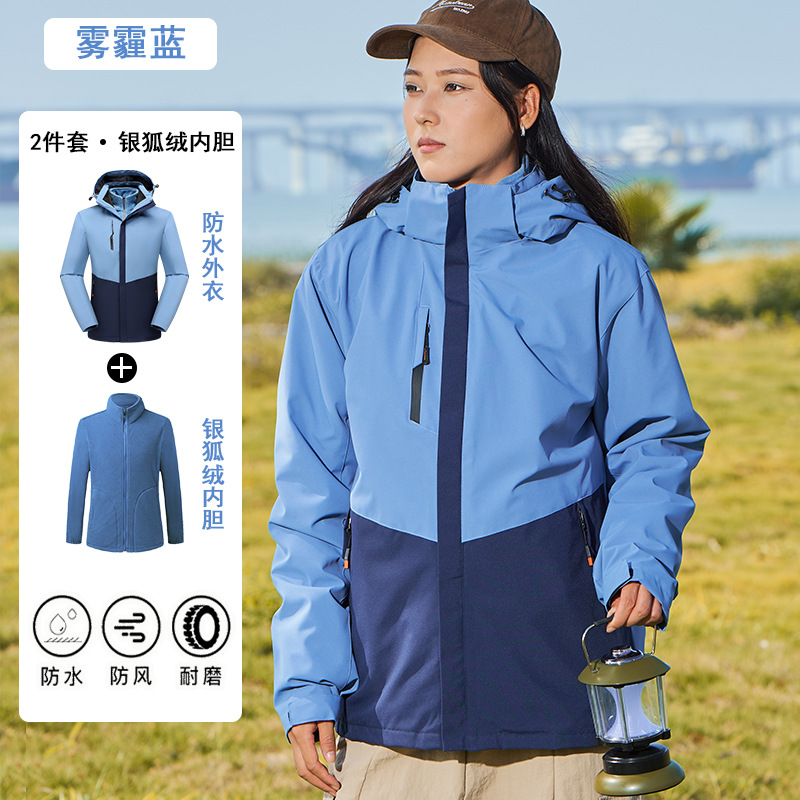 남녀공용 3-in-1 재킷, 탈부착 가능한 등산복, 방풍 및 보온 이중 세트, 실버 폭스 벨벳 안감스토어 가기