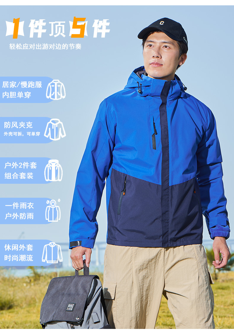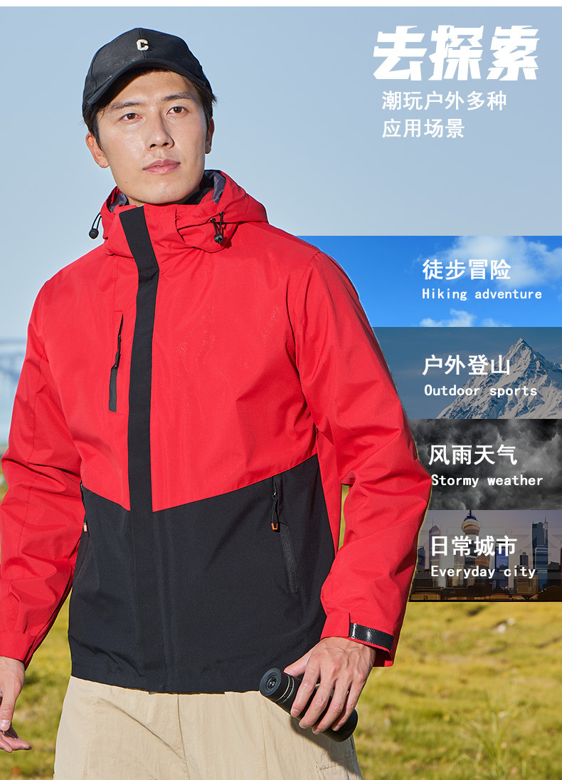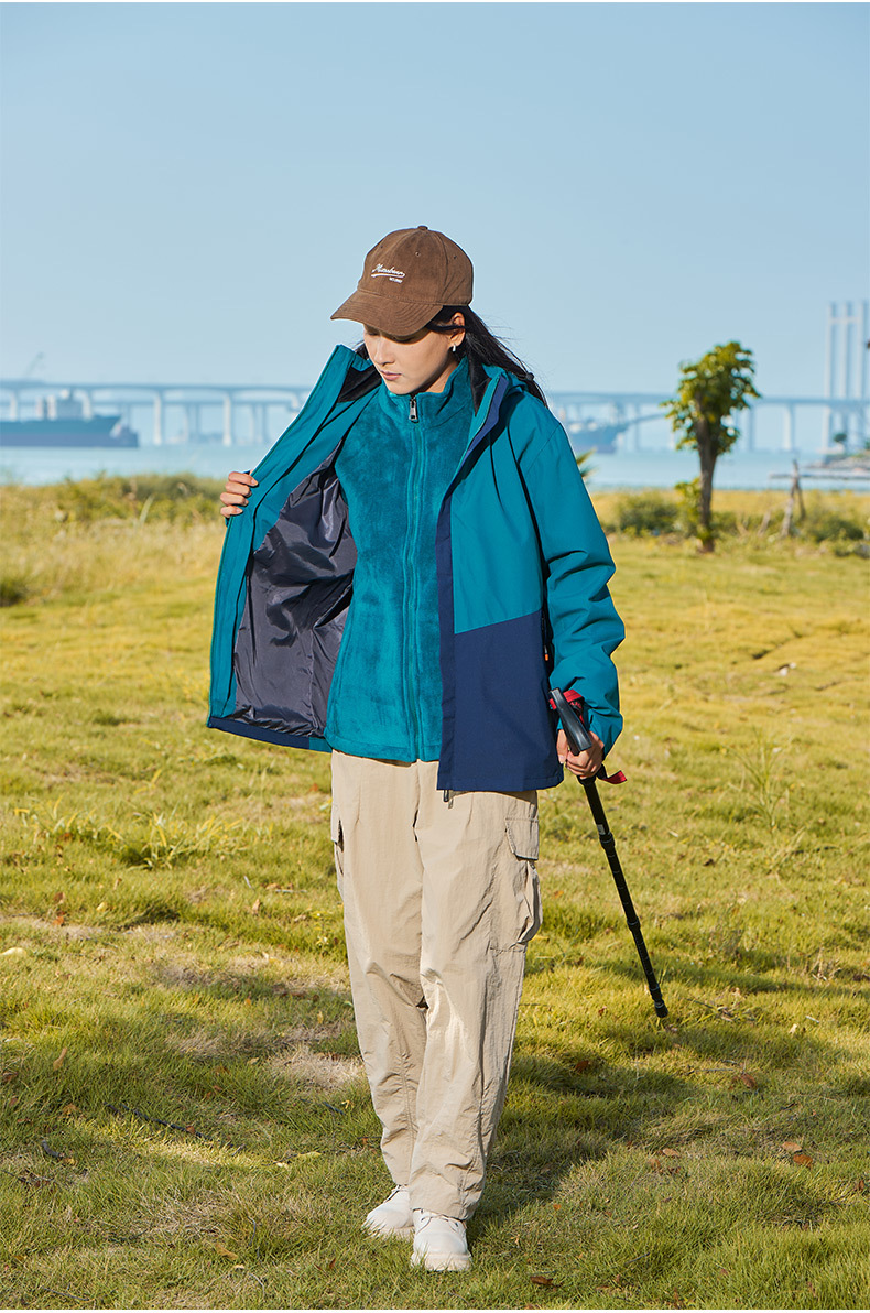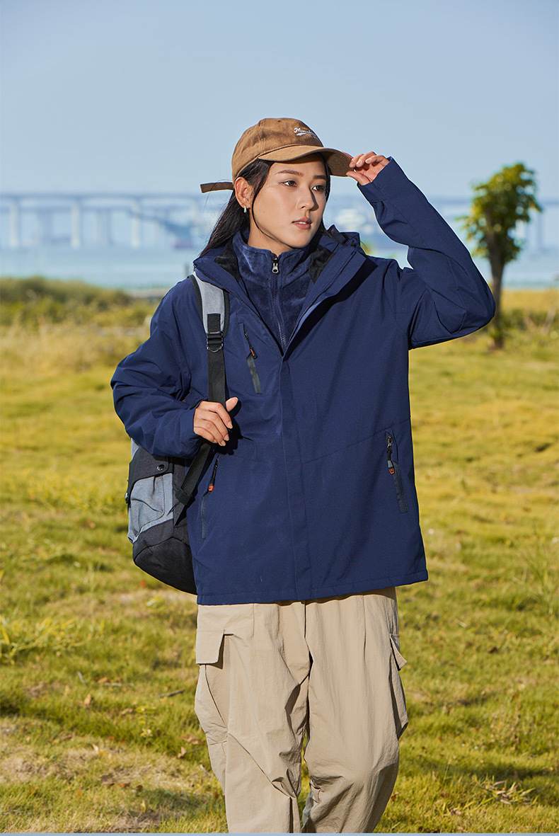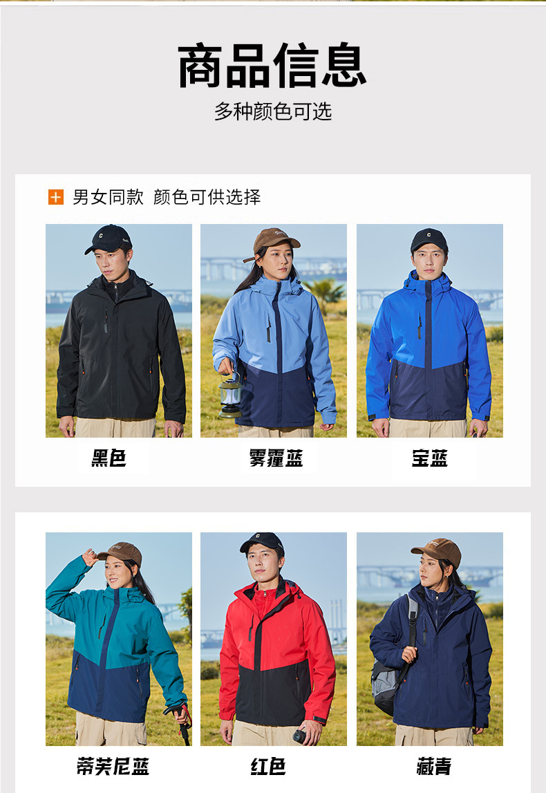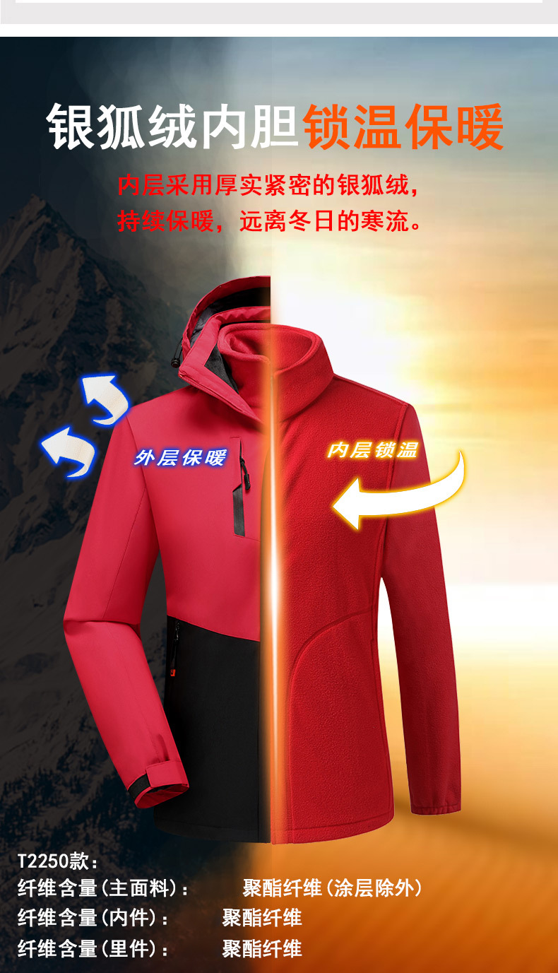 남녀공용 3-in-1 재킷, 탈부착 가능한 등산복, 방풍 및 보온 이중 세트, 실버 폭스 벨벳 안감스토어 가기