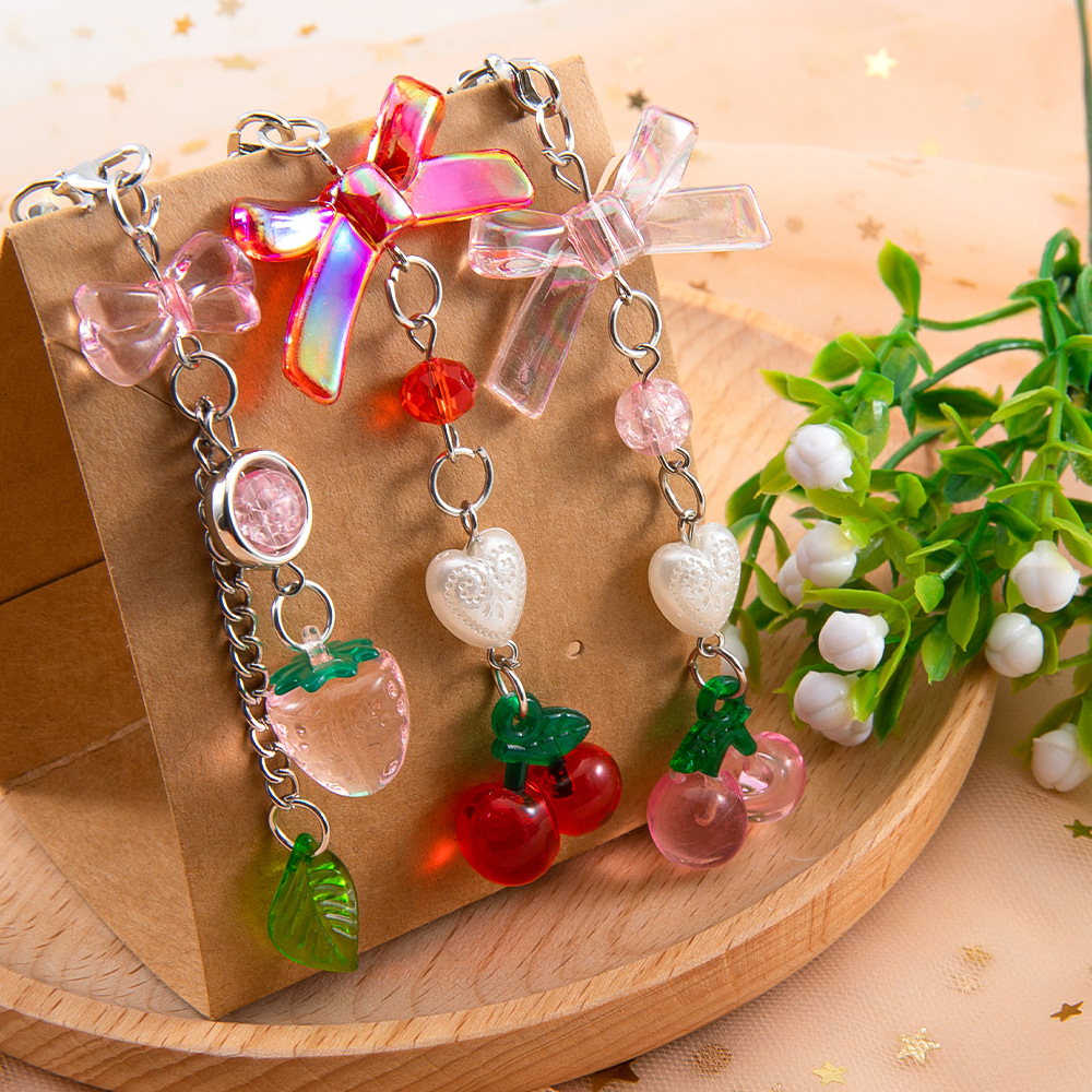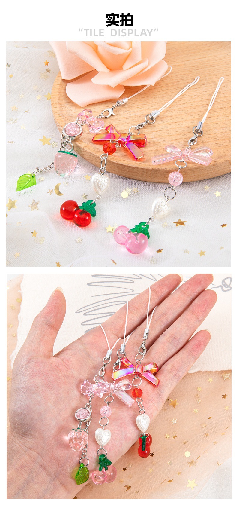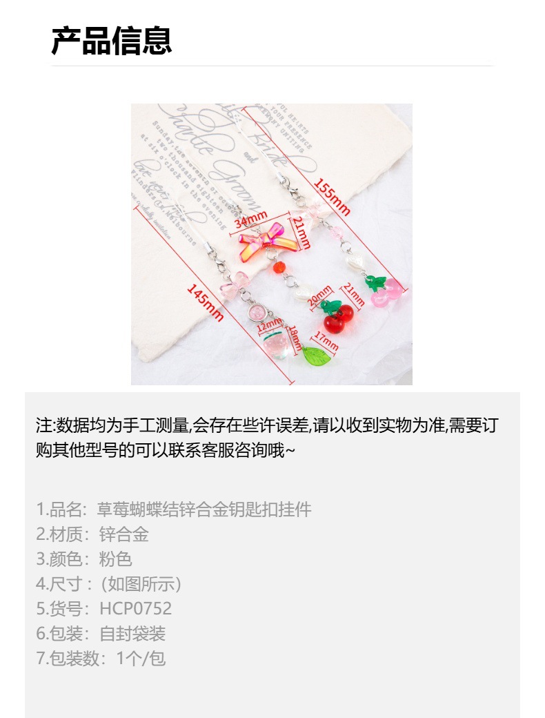귀여운 인 스타일 달콤한 딸기 활 아연 합금 키 체인 펜던트 비드 체인 키 체인 완성 된 카메라 버클