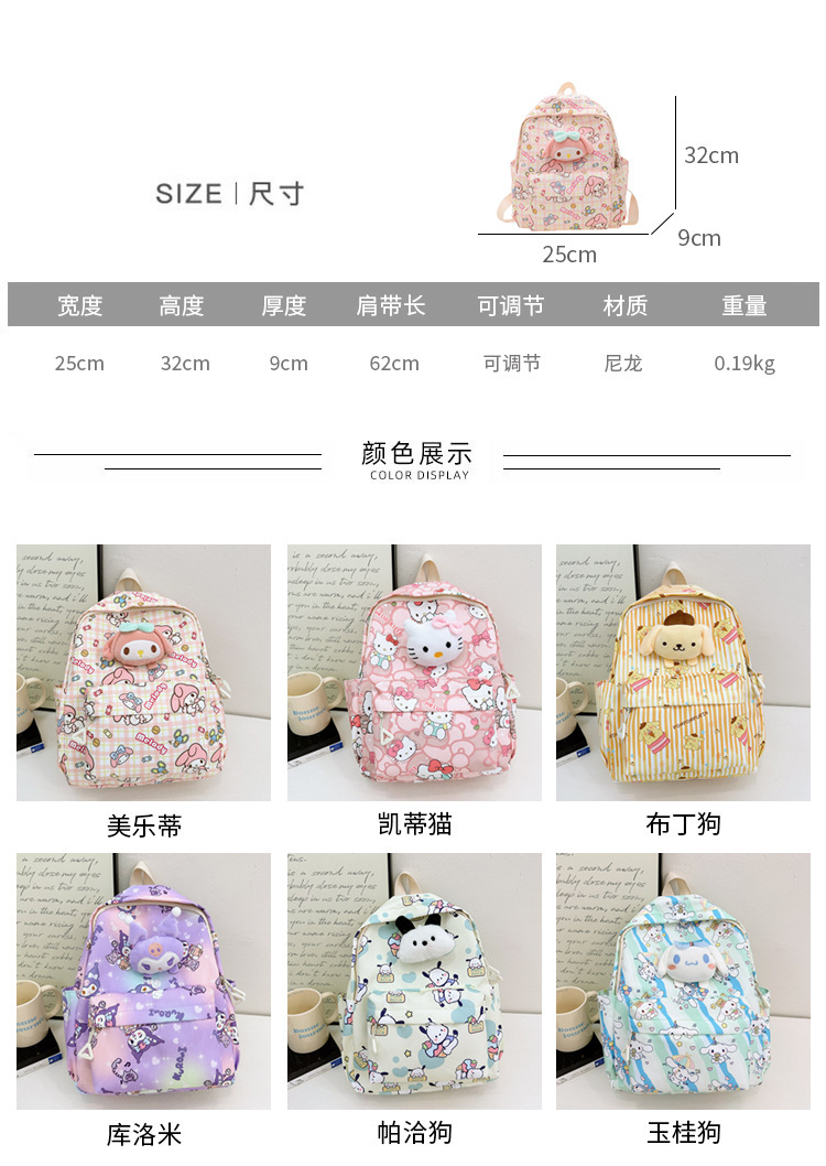 산리오 새로운 어린이 학교 가방 귀여운 만화 경량 배낭 유치원 높은 가치 경량 올매치 가방