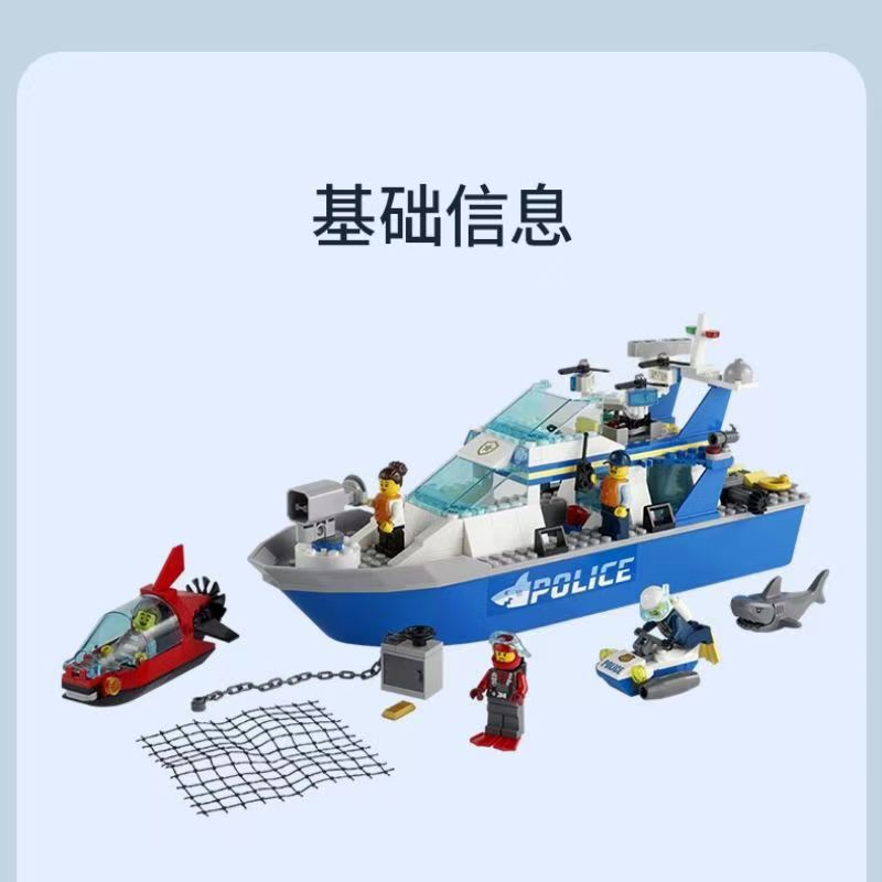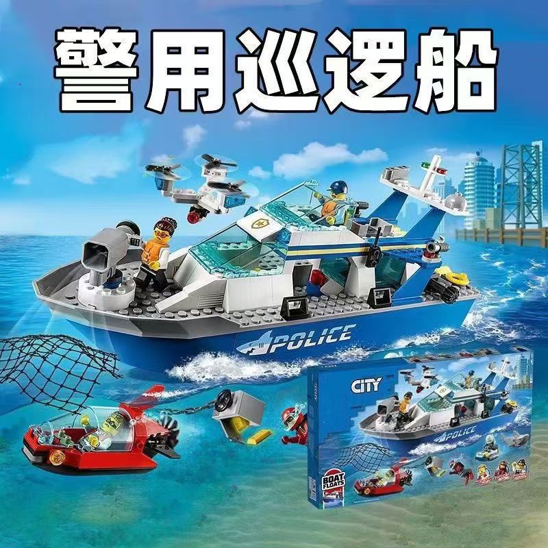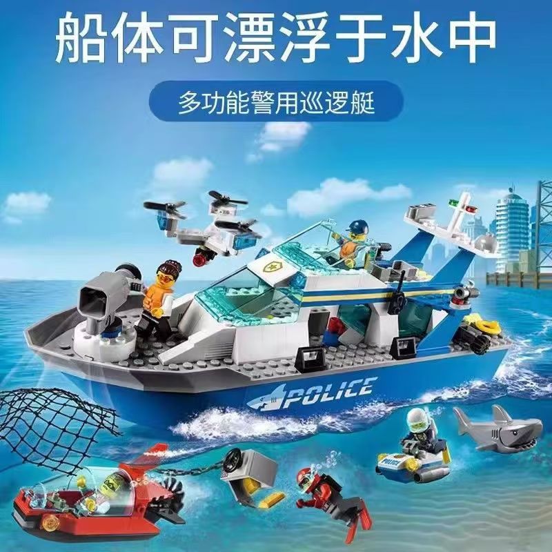레고 시티 시리즈 경찰 순찰선 항공기 경찰 조립 블록 소년 교육 장난감 선물스토어 가기
