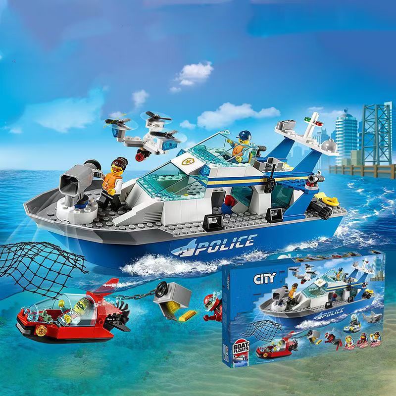 레고 시티 시리즈 경찰 순찰선 항공기 경찰 조립 블록 소년 교육 장난감 선물