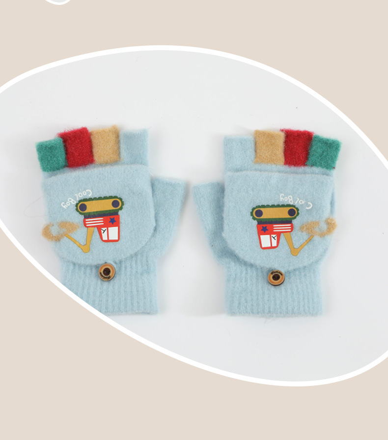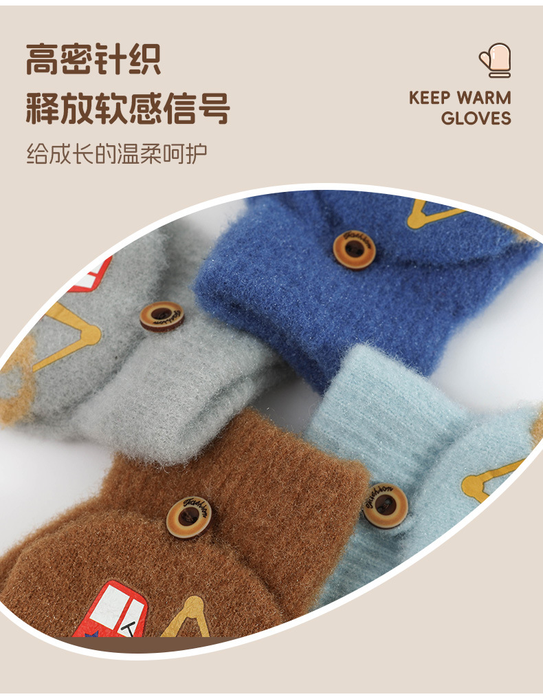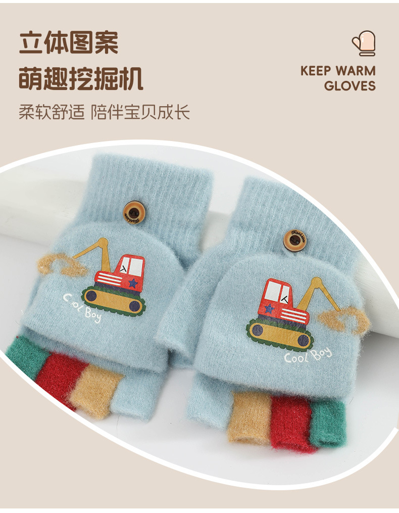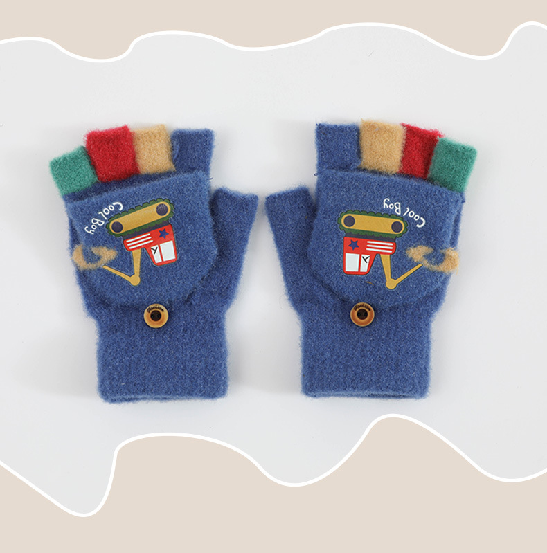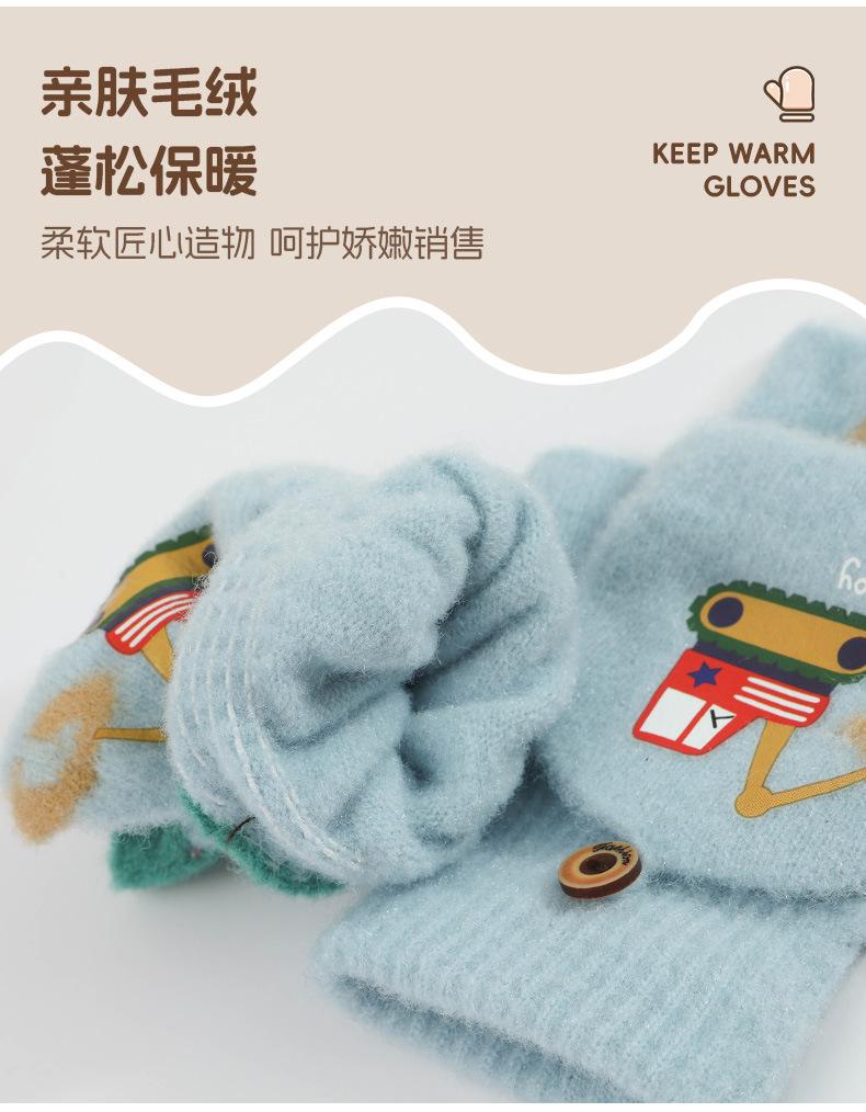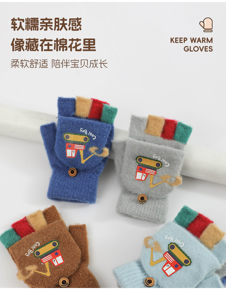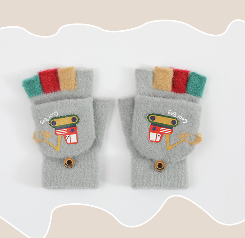 귀여운 Digger Plush Flip 하프 핑거 어린이 장갑 가을과 겨울 세 살 소년 소녀 따뜻한 니트 울 장갑