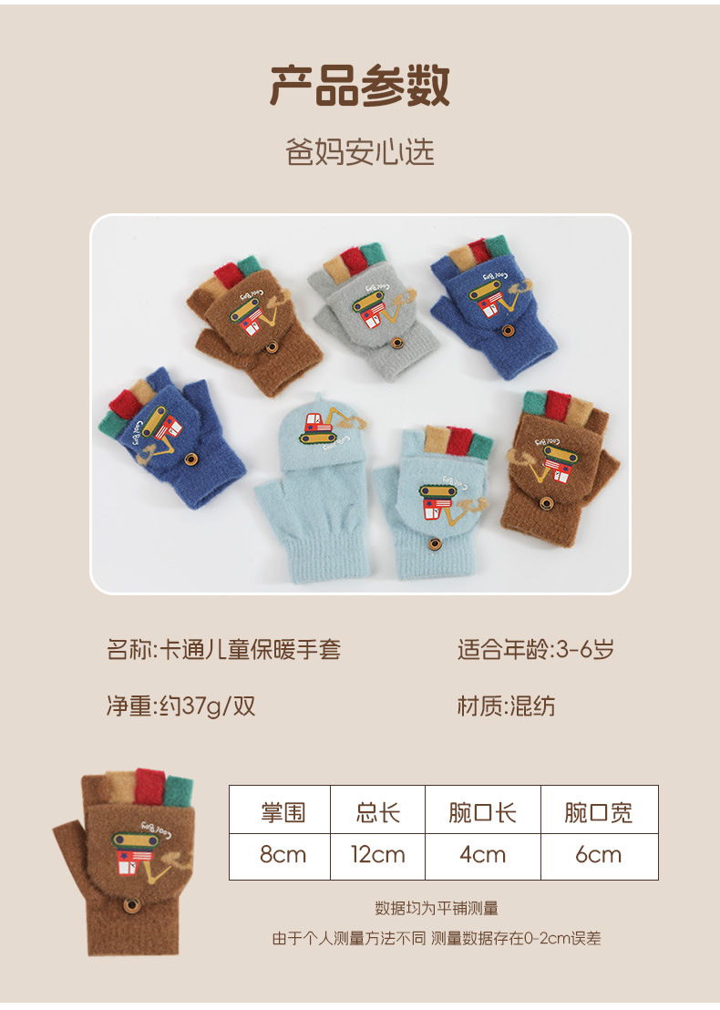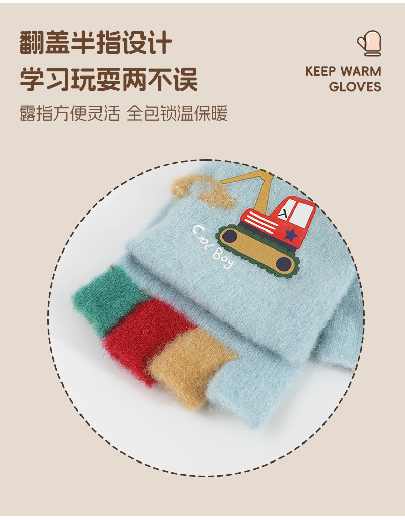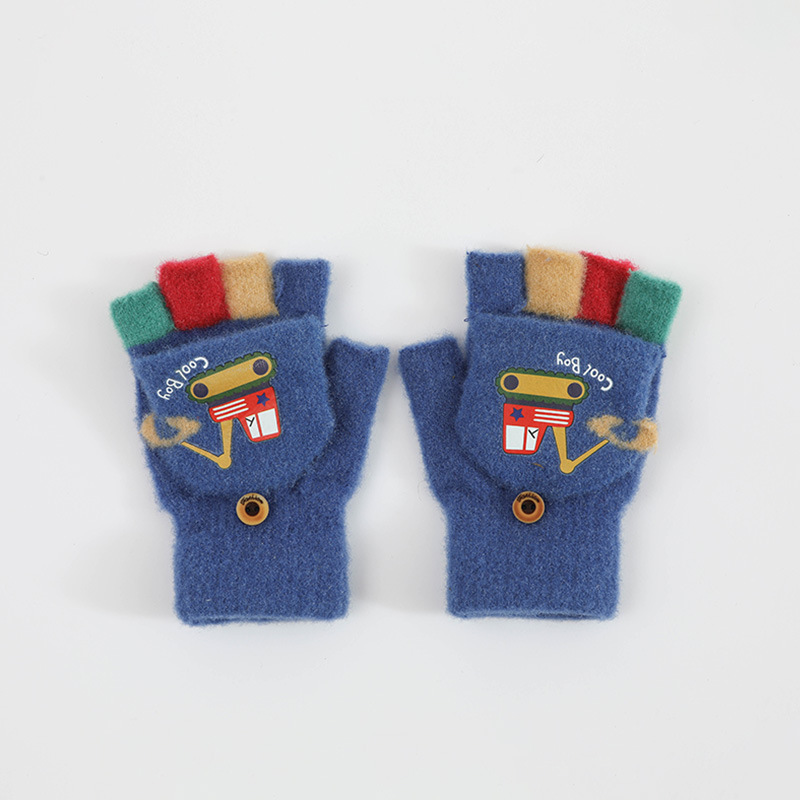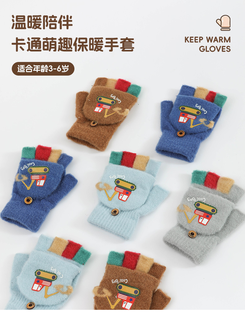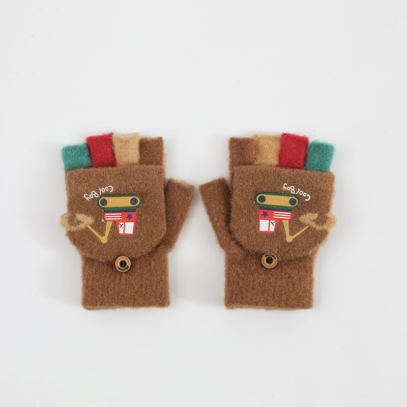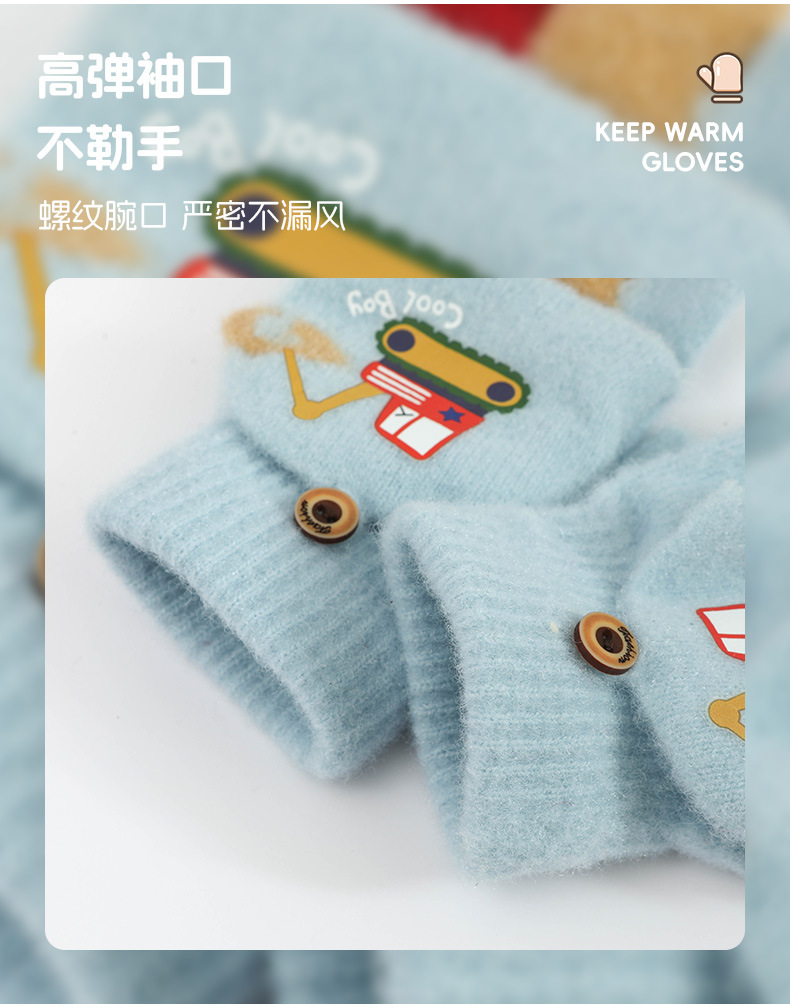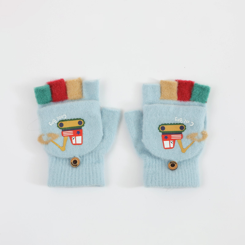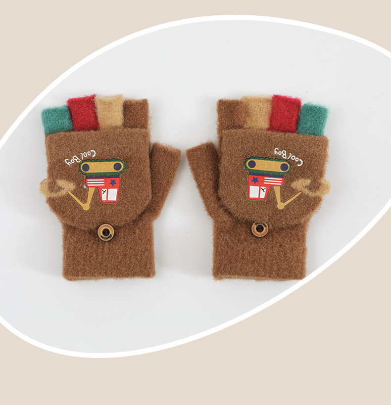 귀여운 Digger Plush Flip 하프 핑거 어린이 장갑 가을과 겨울 세 살 소년 소녀 따뜻한 니트 울 장갑