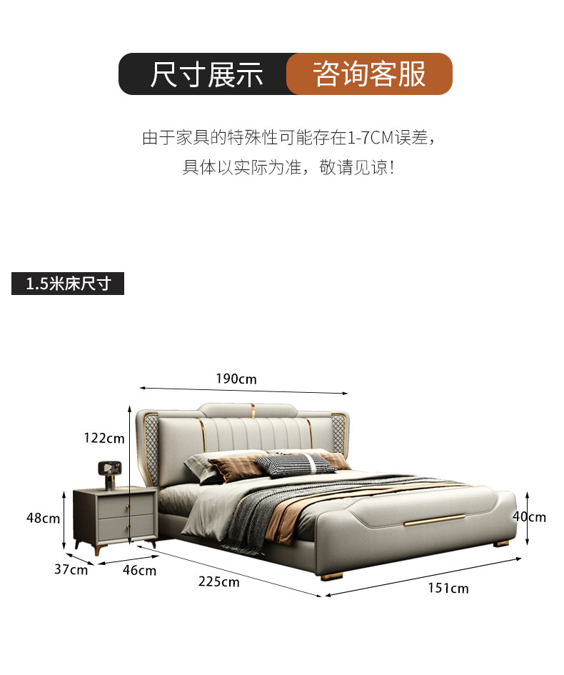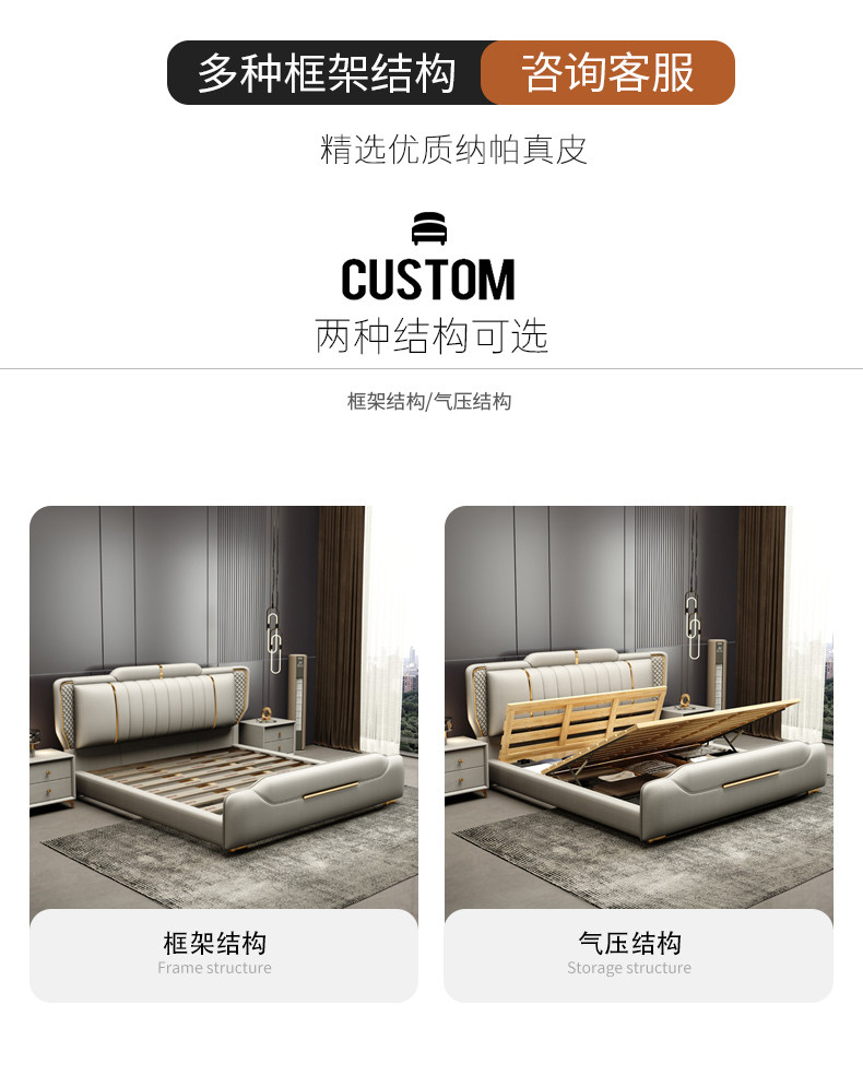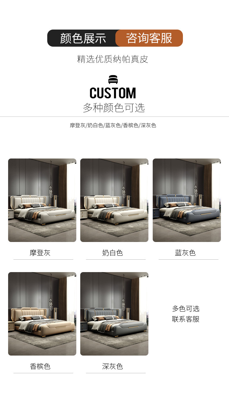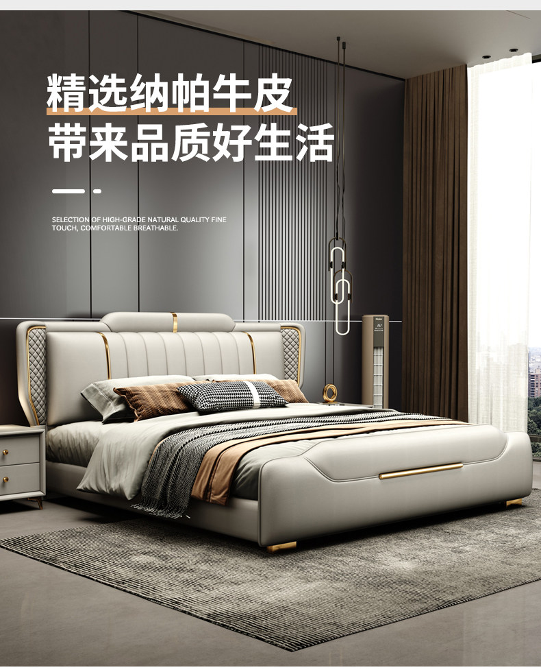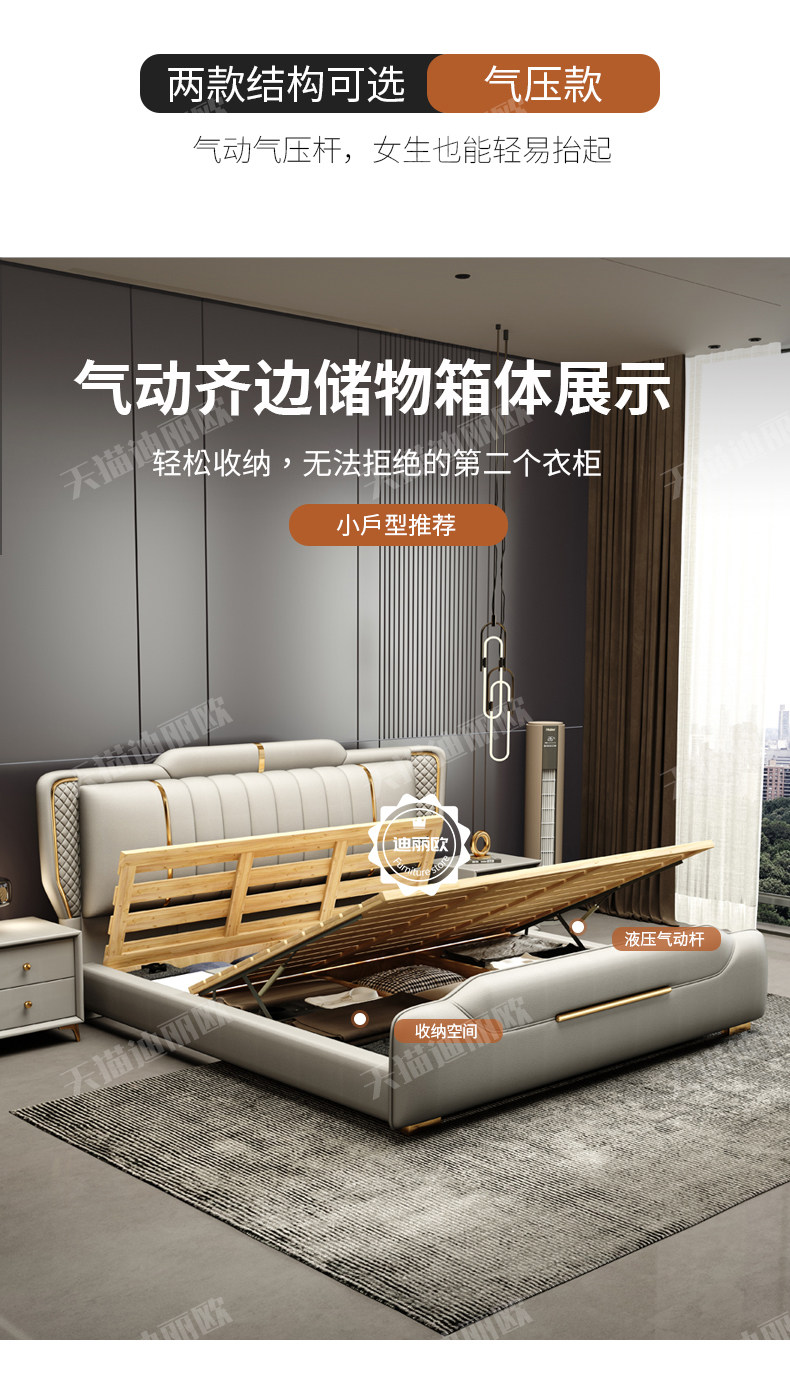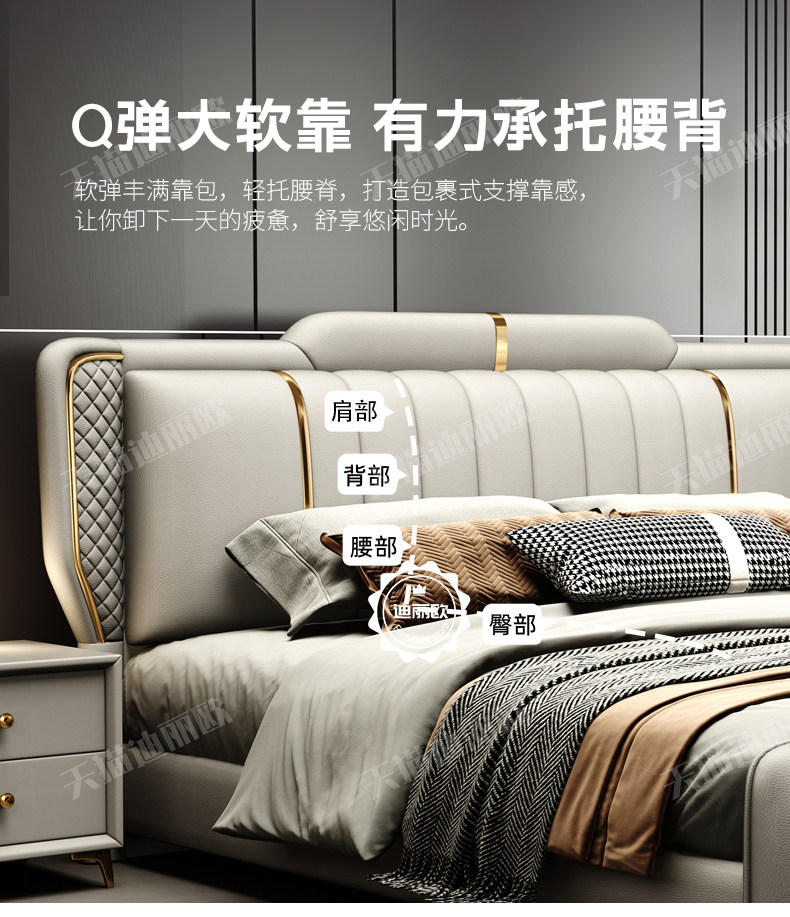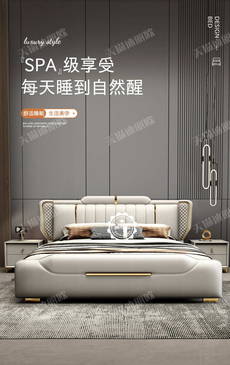 이탈리아 빛 럭셔리 가죽 침대 2.2 m 현대 간단한 마스터 침실 소프트 백 더블 침대 1.8 하이 엔드 대기 보관 웨딩 침대스토어 가기
