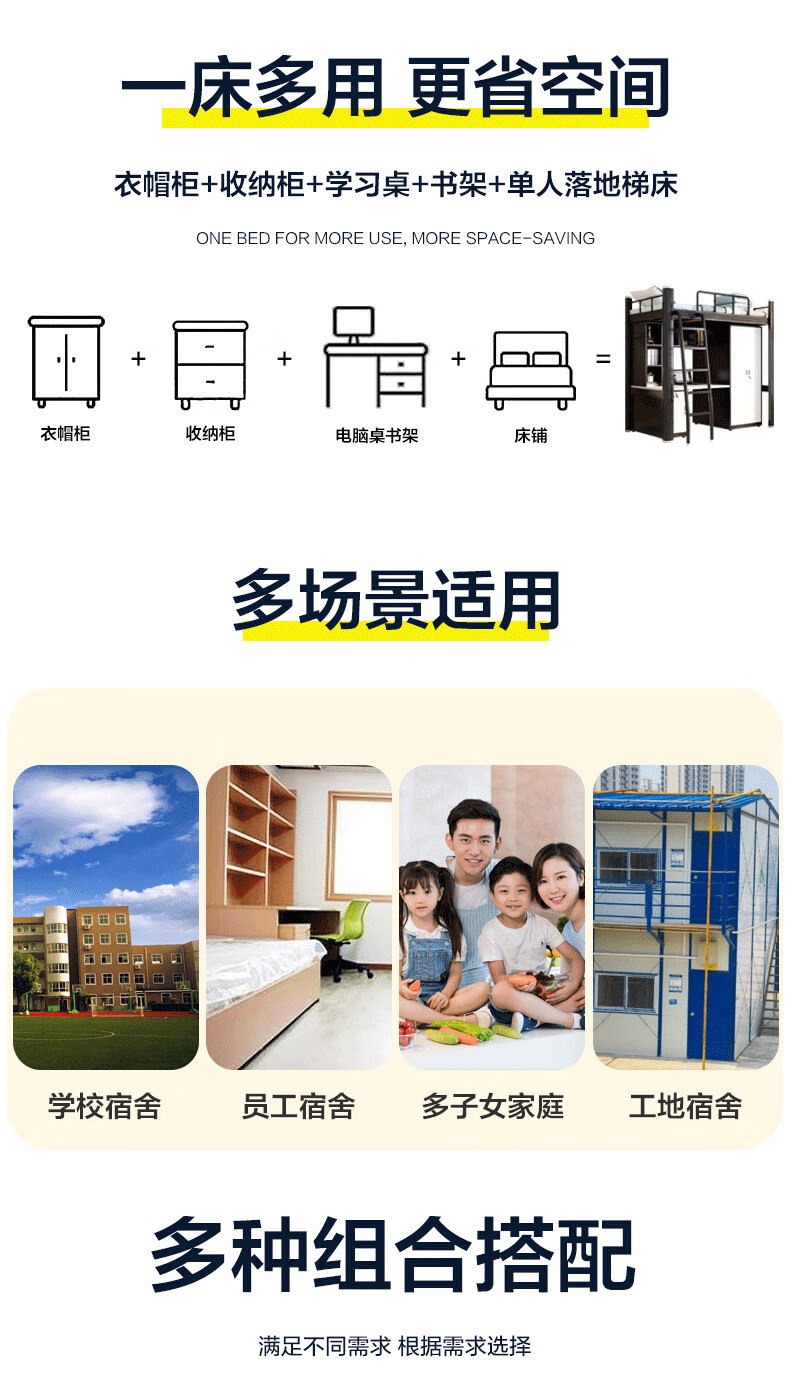 맞춤형 이층침대, 철제 프레임, 이층침대, 기숙사 침대, 이층침대, 철제 학생 기숙사 침대, 높낮이 침대, 철제 침대