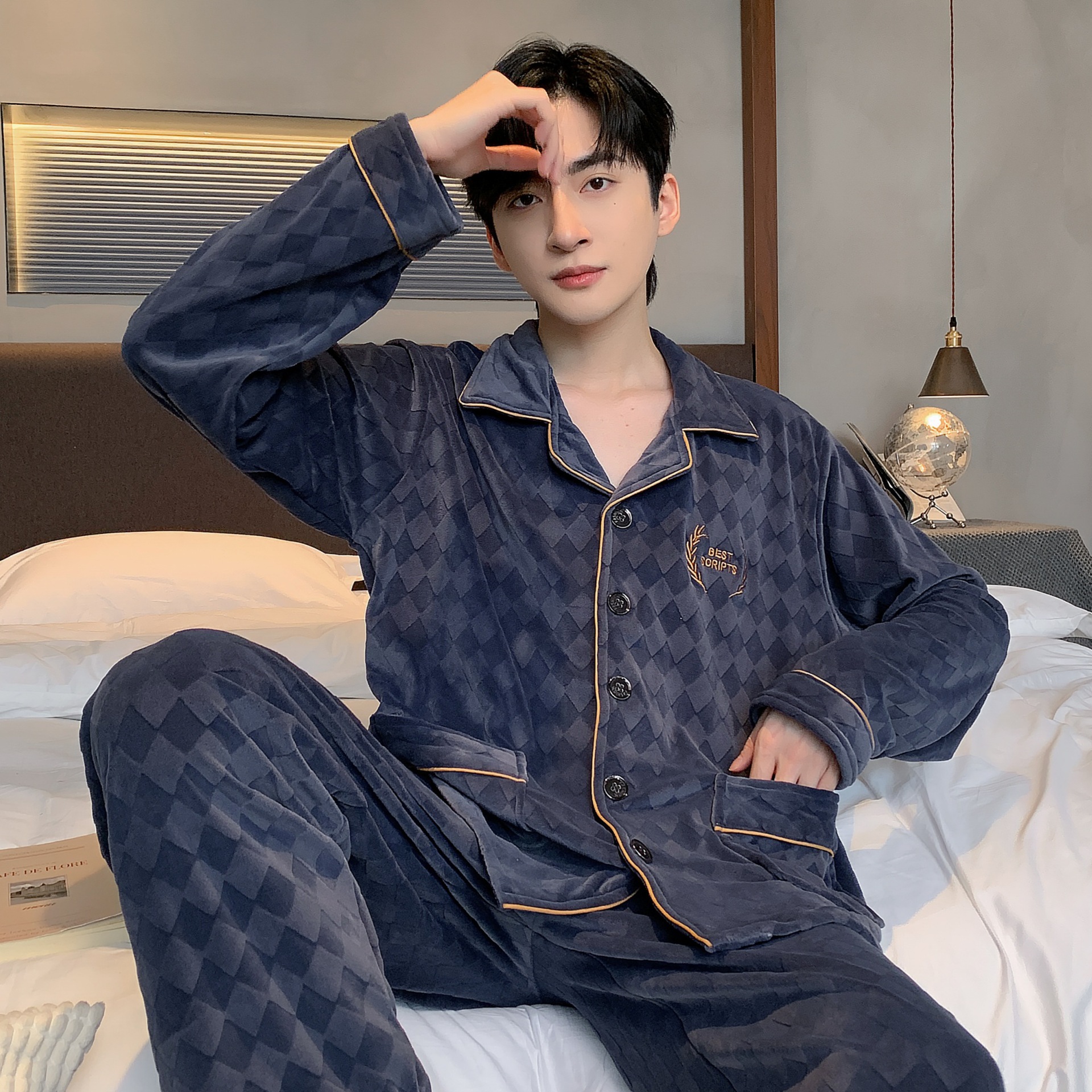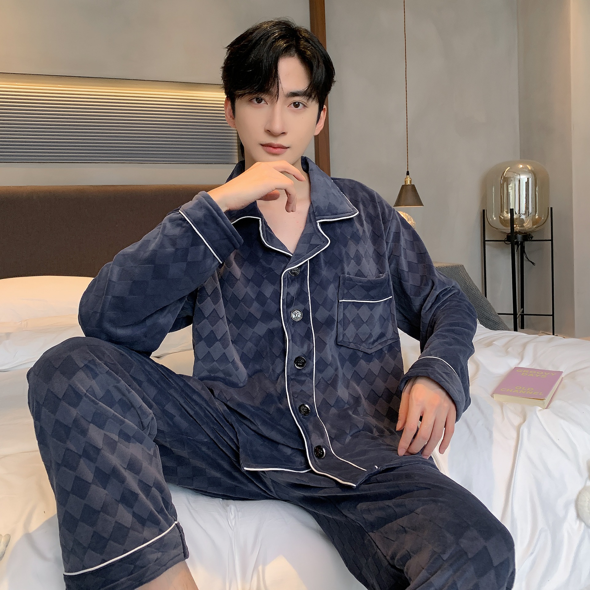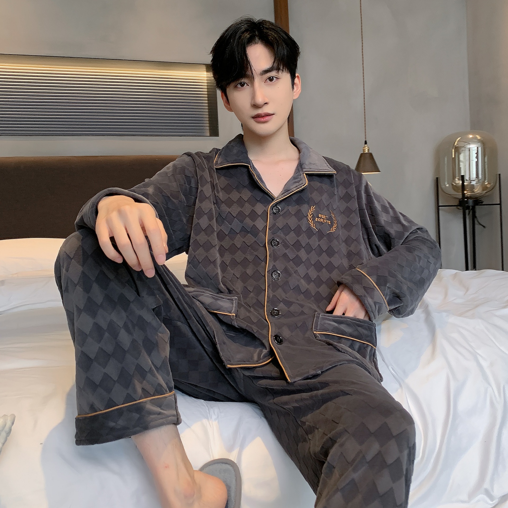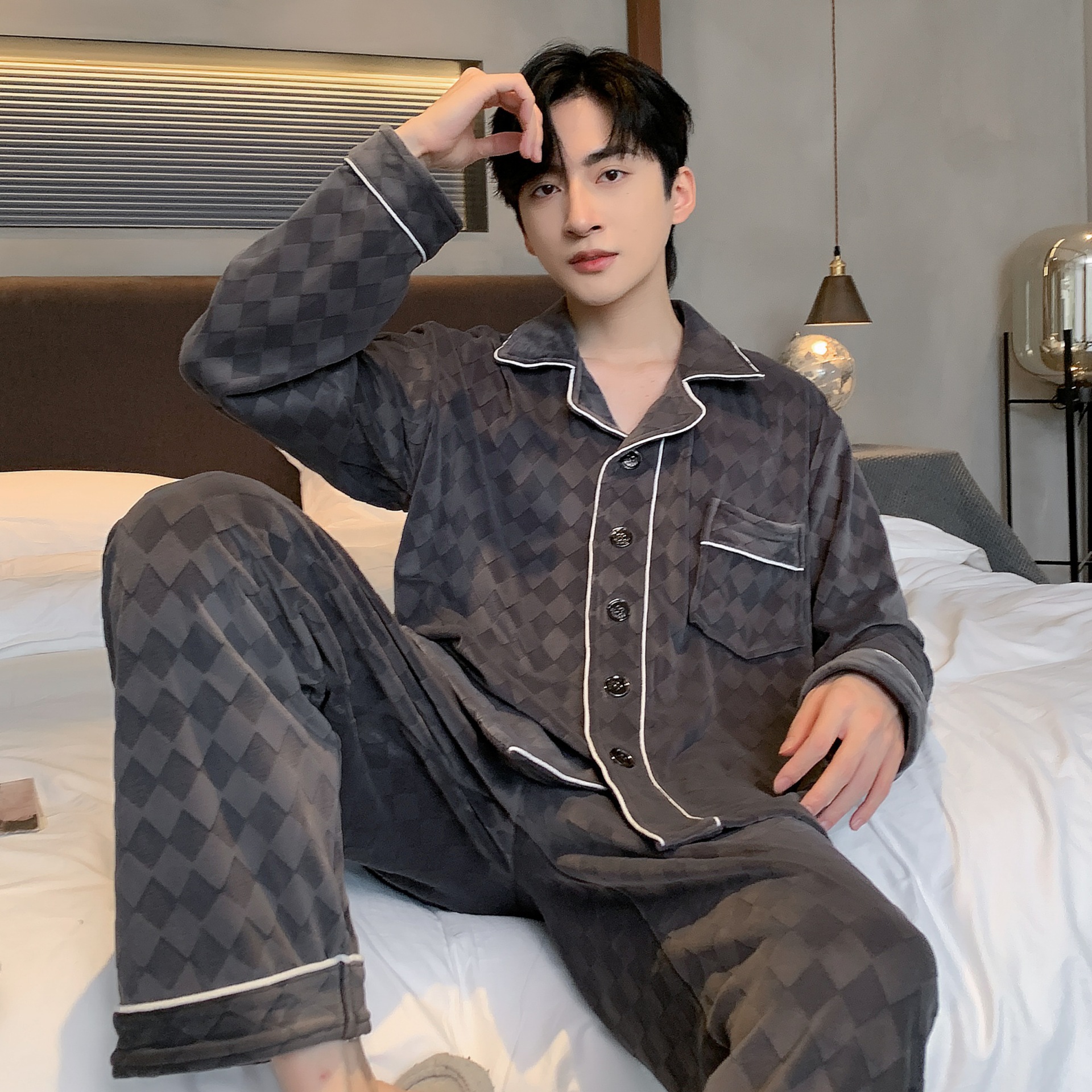 신상품 남성용 아일랜드 벨벳 잠옷 가을 겨울용 플러스 벨벳 보온 루즈핏 코랄 벨벳 얇은 벨벳 외출복 겸용 홈웨어