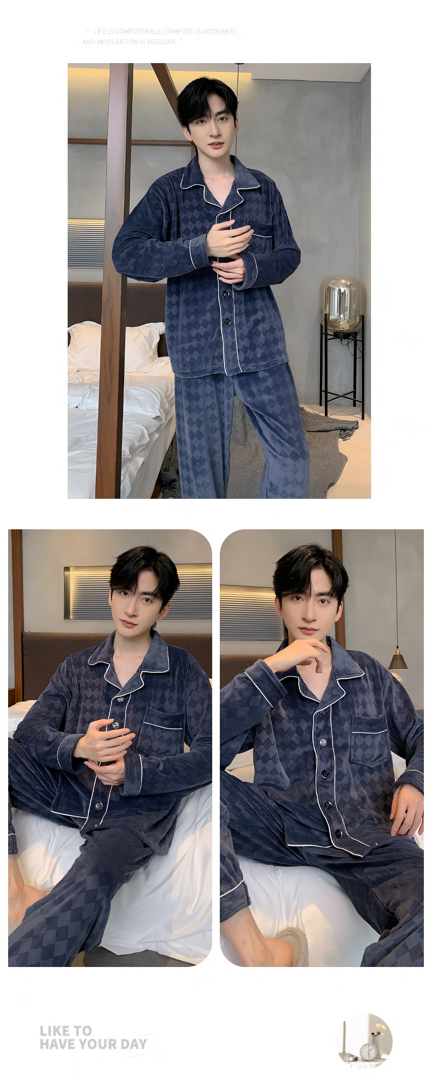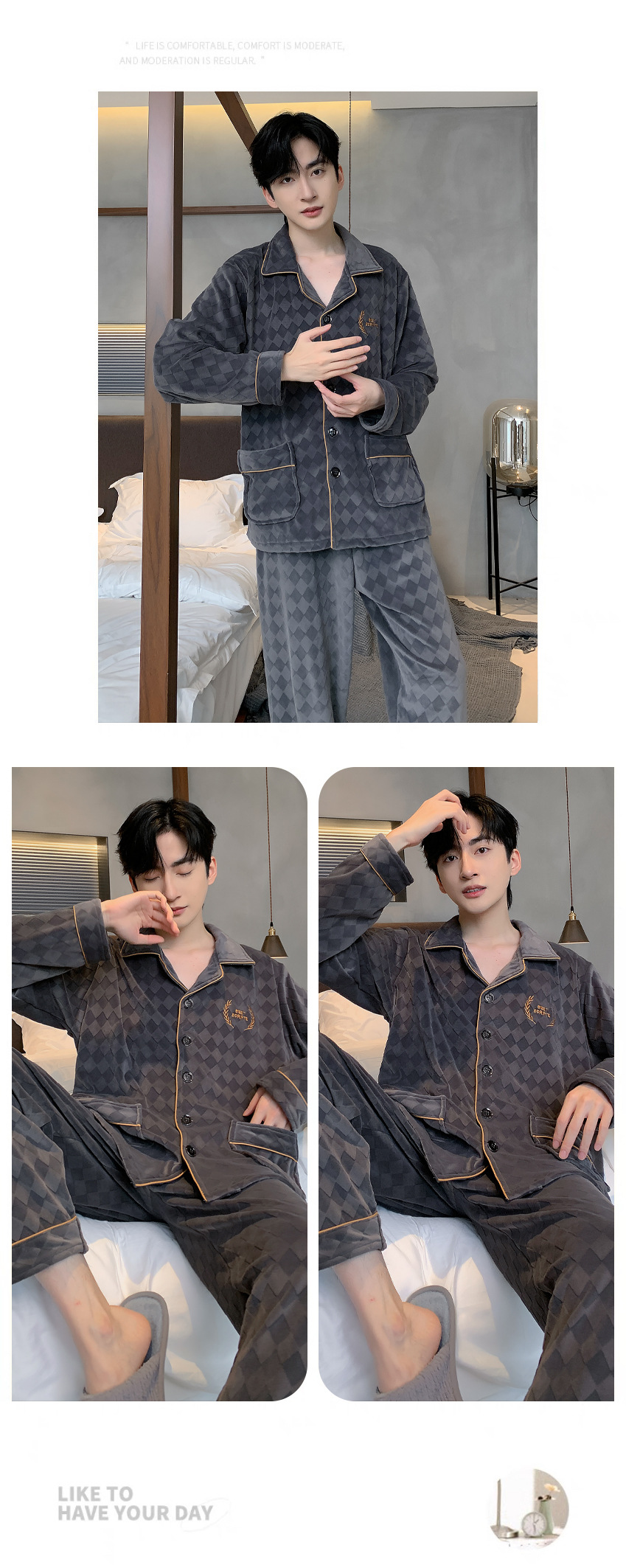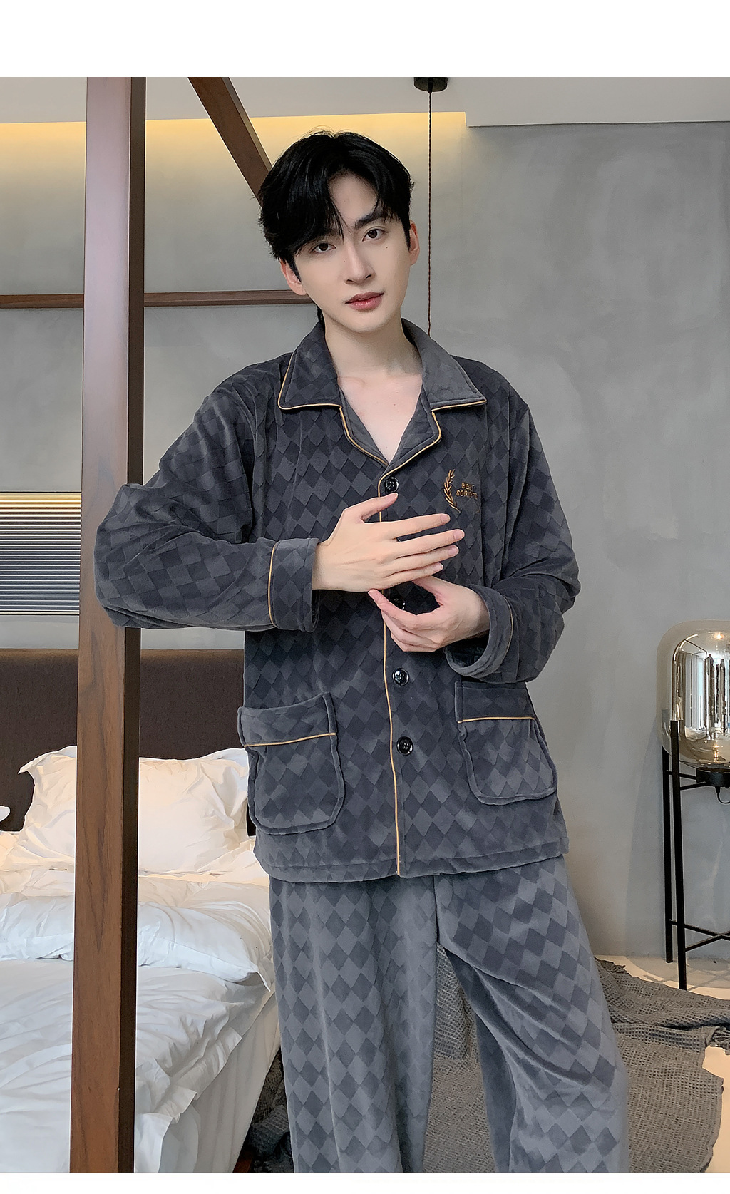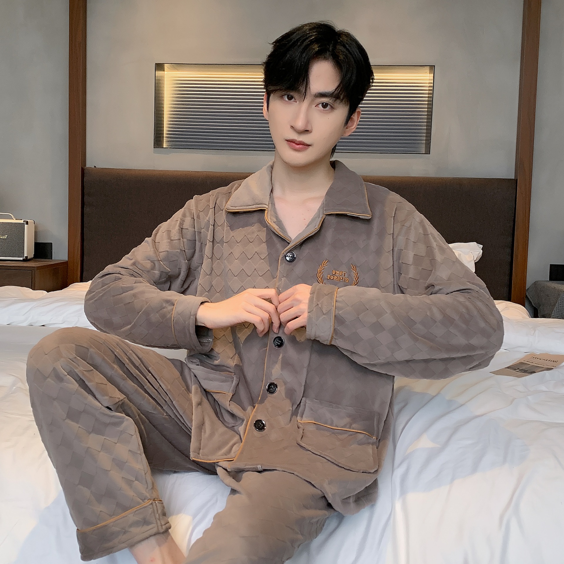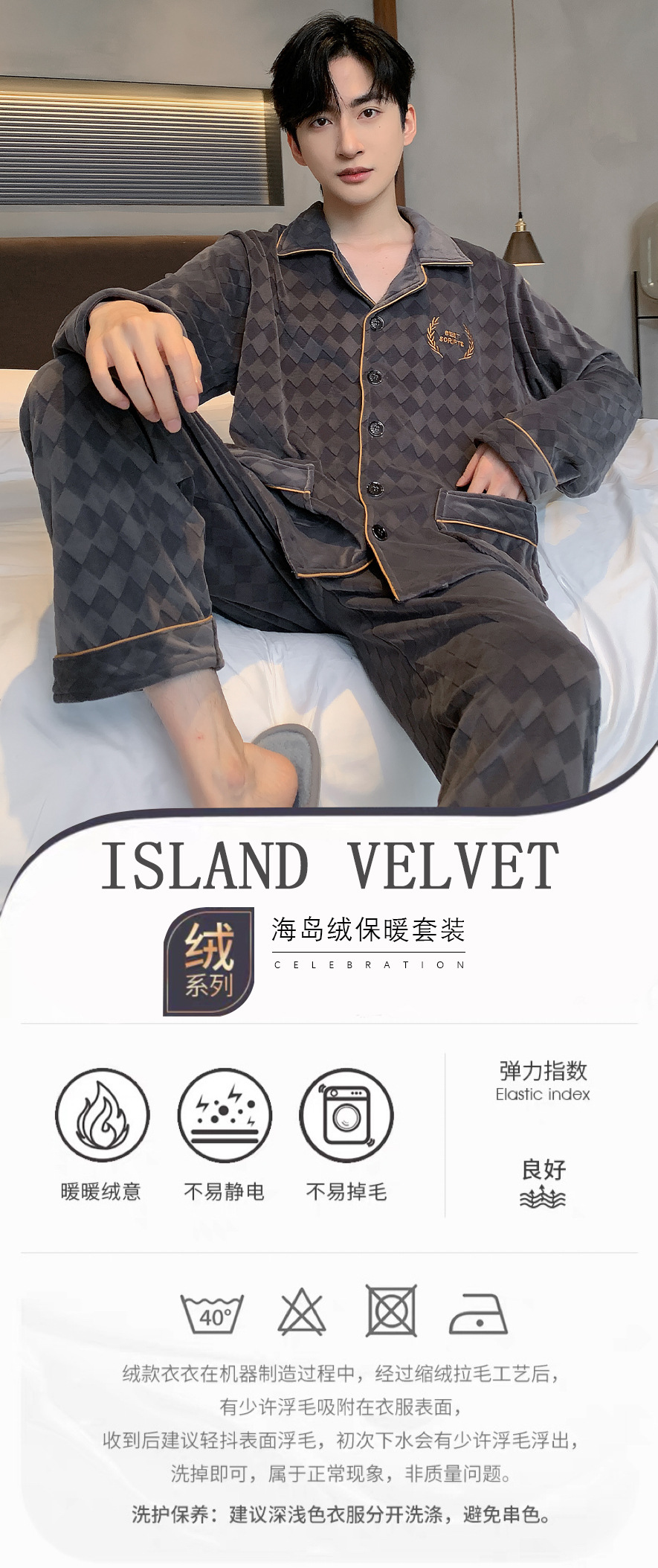 신상품 남성용 아일랜드 벨벳 잠옷 가을 겨울용 플러스 벨벳 보온 루즈핏 코랄 벨벳 얇은 벨벳 외출복 겸용 홈웨어