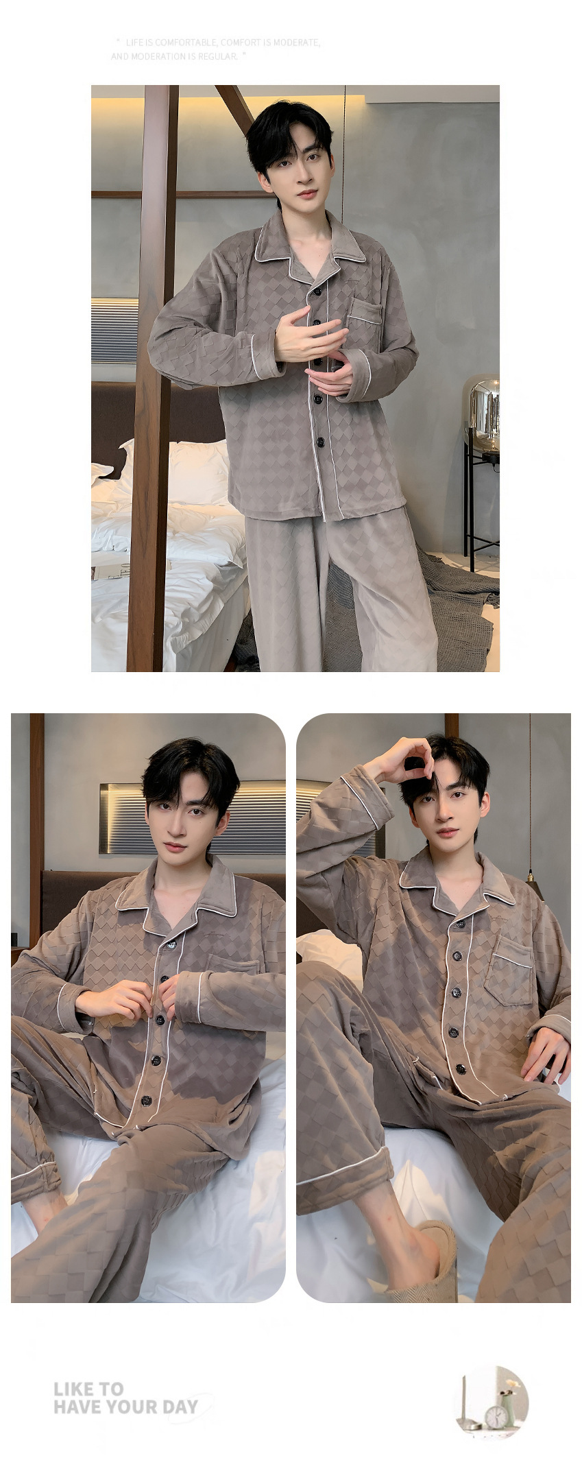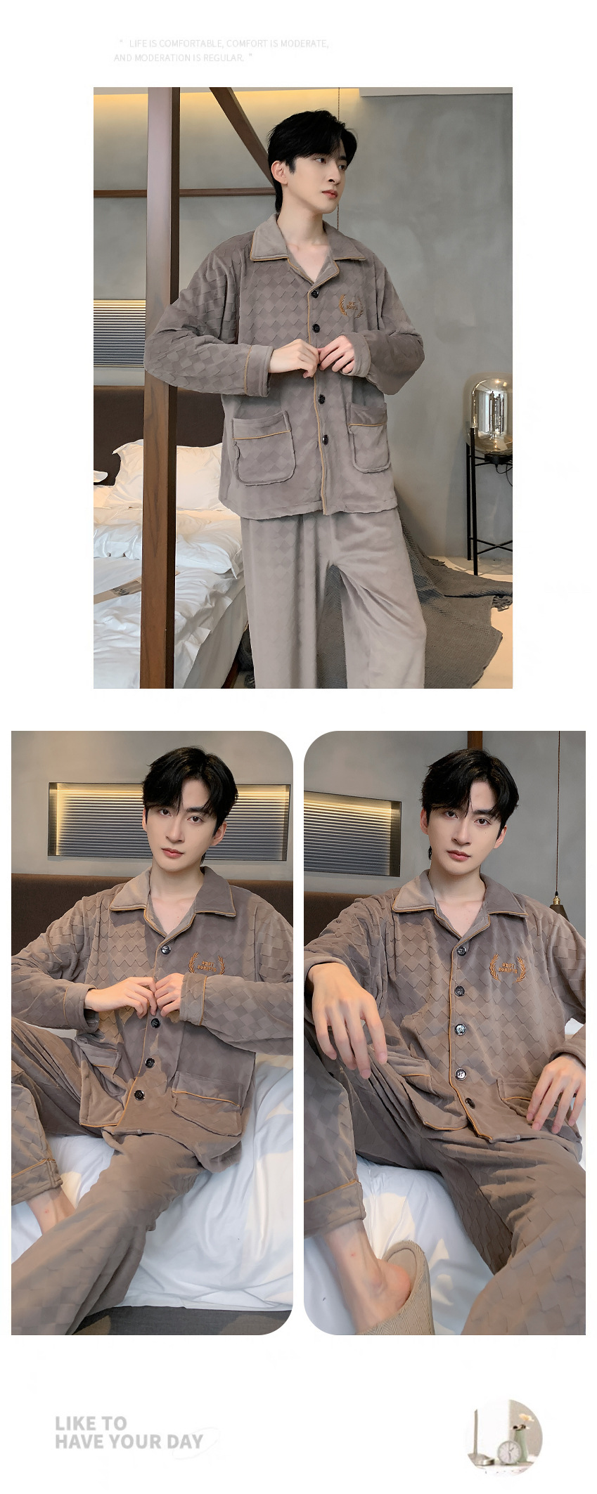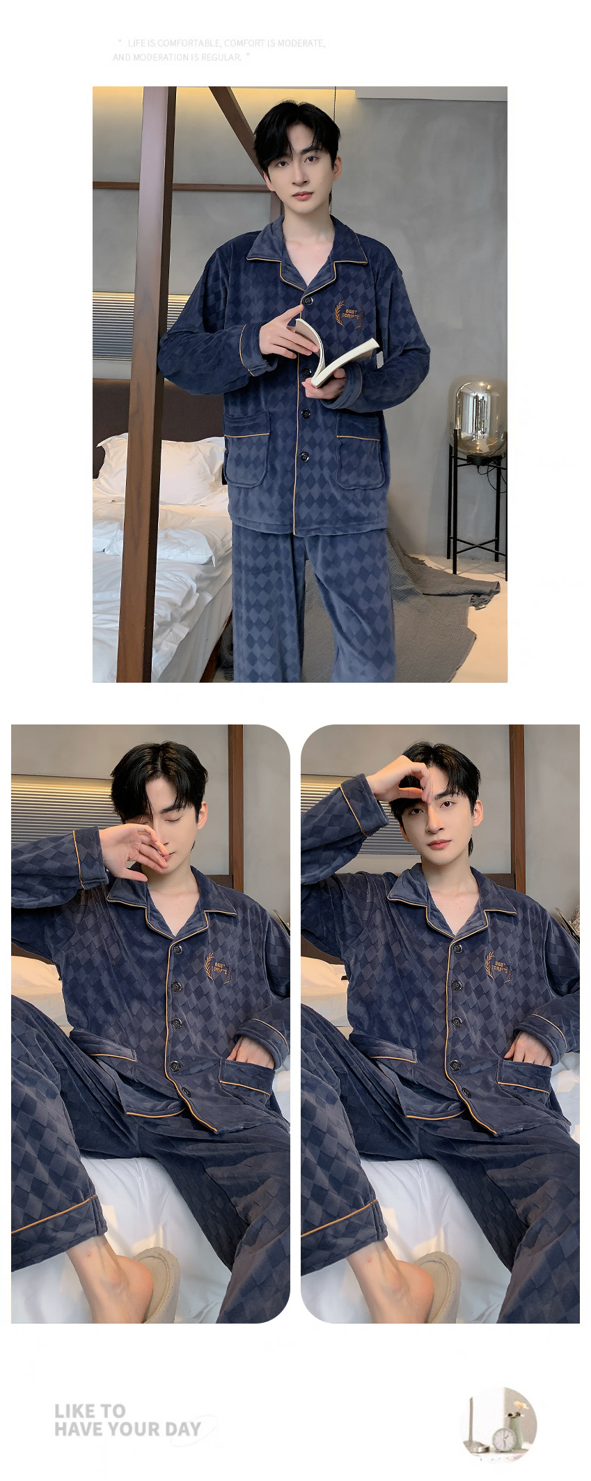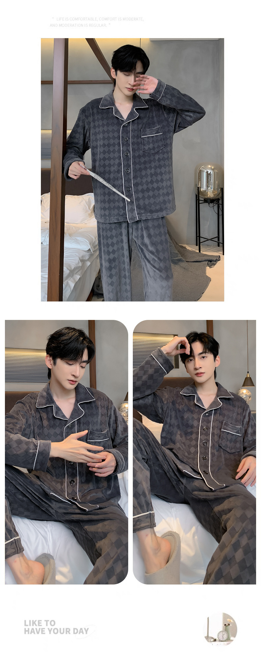 신상품 남성용 아일랜드 벨벳 잠옷 가을 겨울용 플러스 벨벳 보온 루즈핏 코랄 벨벳 얇은 벨벳 외출복 겸용 홈웨어