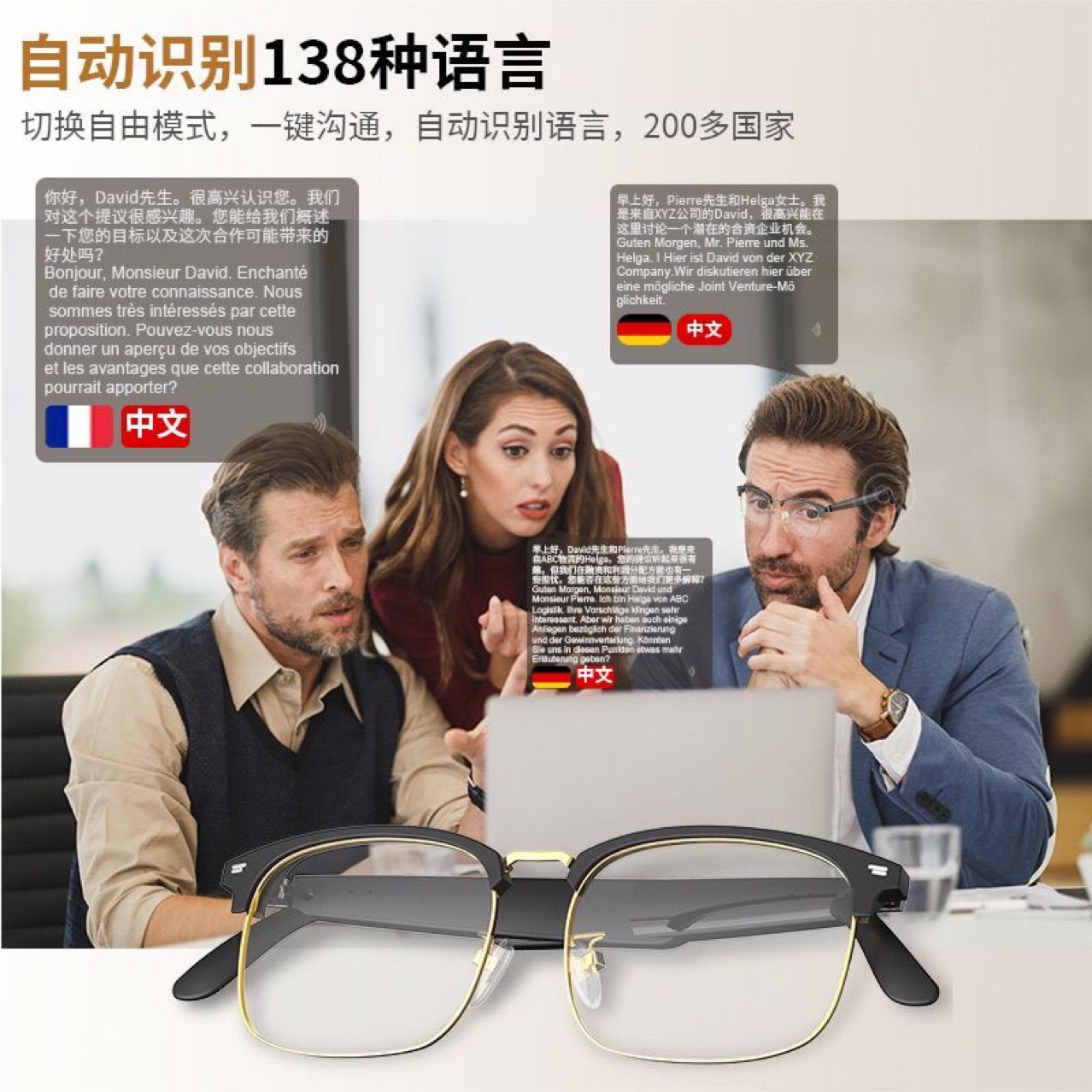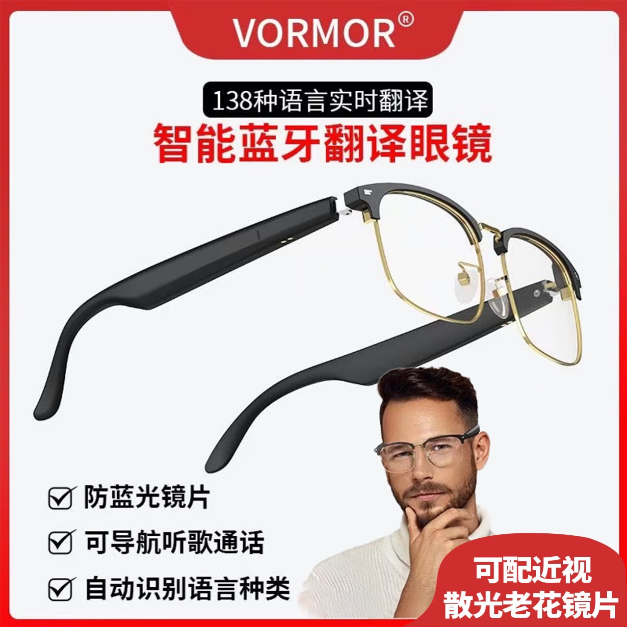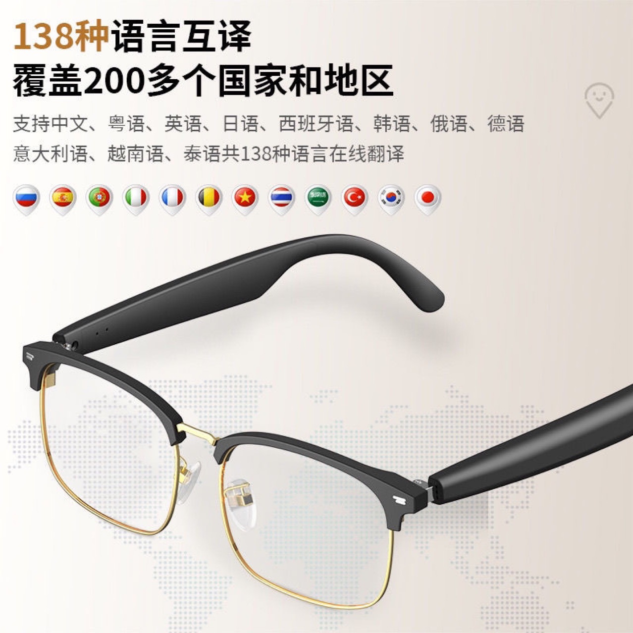 국경 간 블루투스 번역 안경 다기능 헤드셋 안경은 노래를들을 수 있고, 전화, 카메라, 블루 라이트 무선 스마트