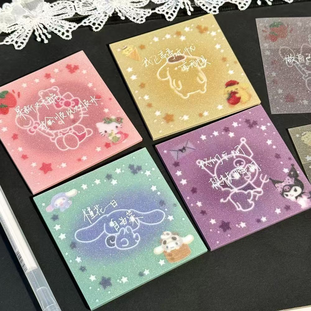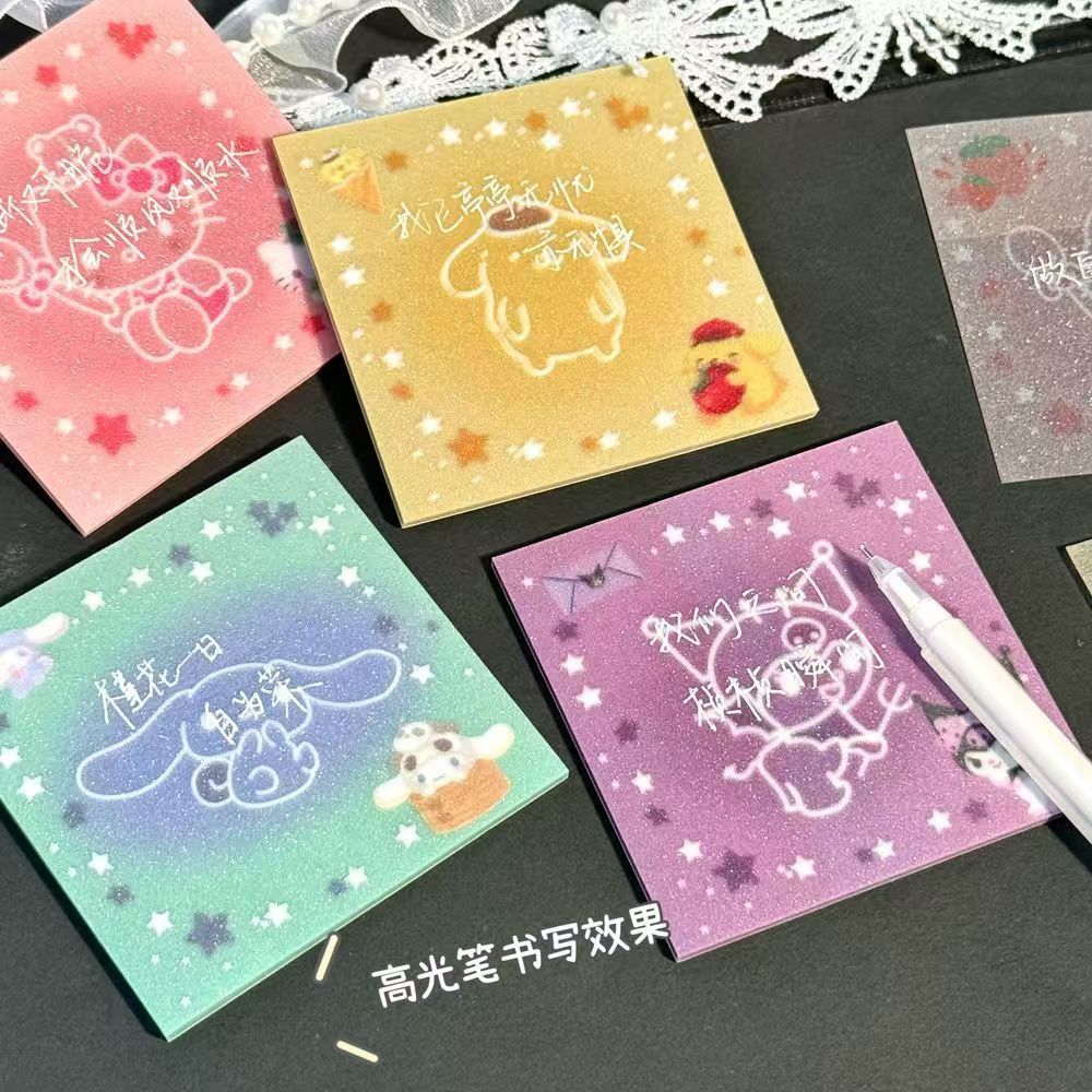 폭발성 투명 산리오 스타 라이트 황산 종이 노트 Ins 학생 높은 색상 가치 장식 페이스트 포스트잇 노트