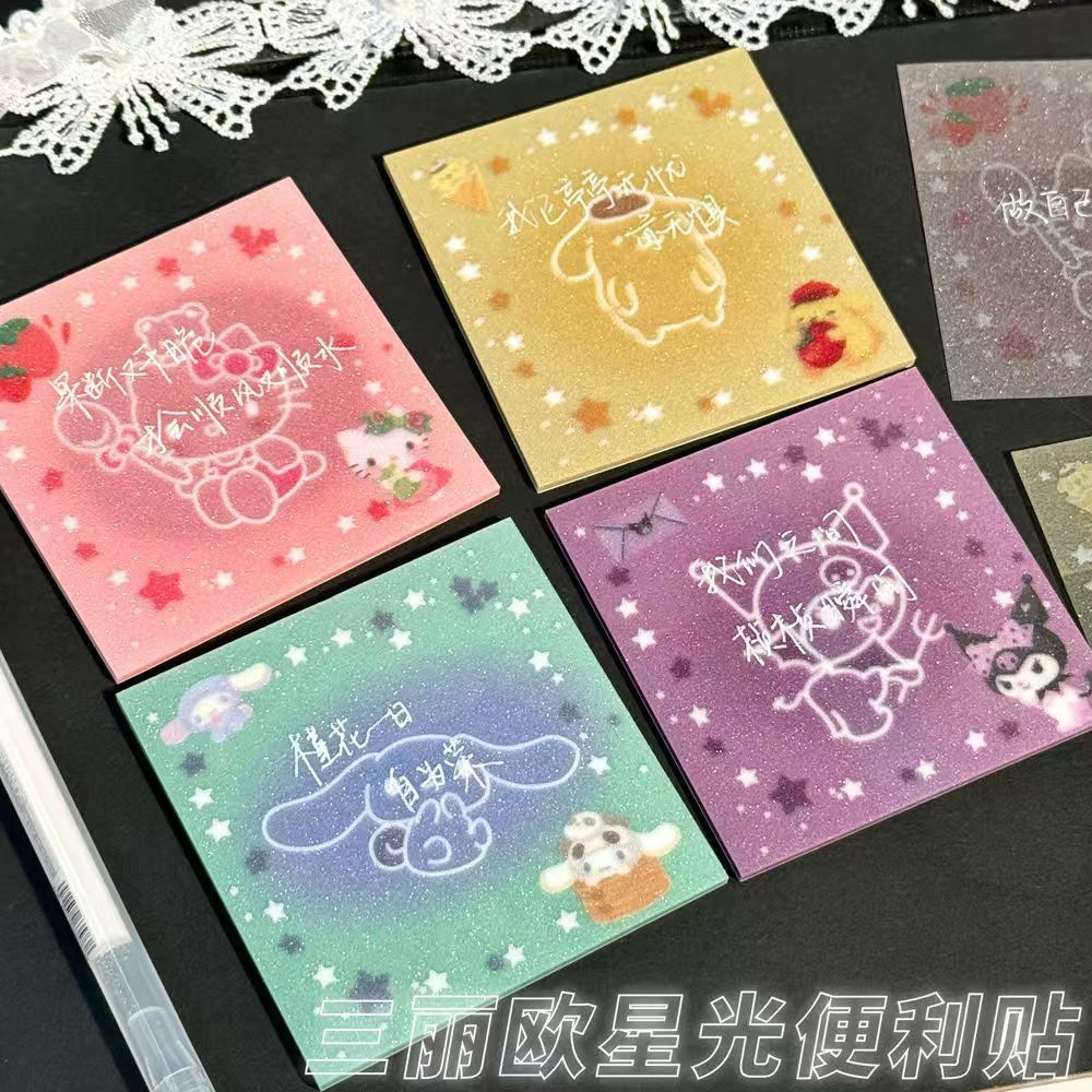 폭발성 투명 산리오 스타 라이트 황산 종이 노트 Ins 학생 높은 색상 가치 장식 페이스트 포스트잇 노트스토어 가기