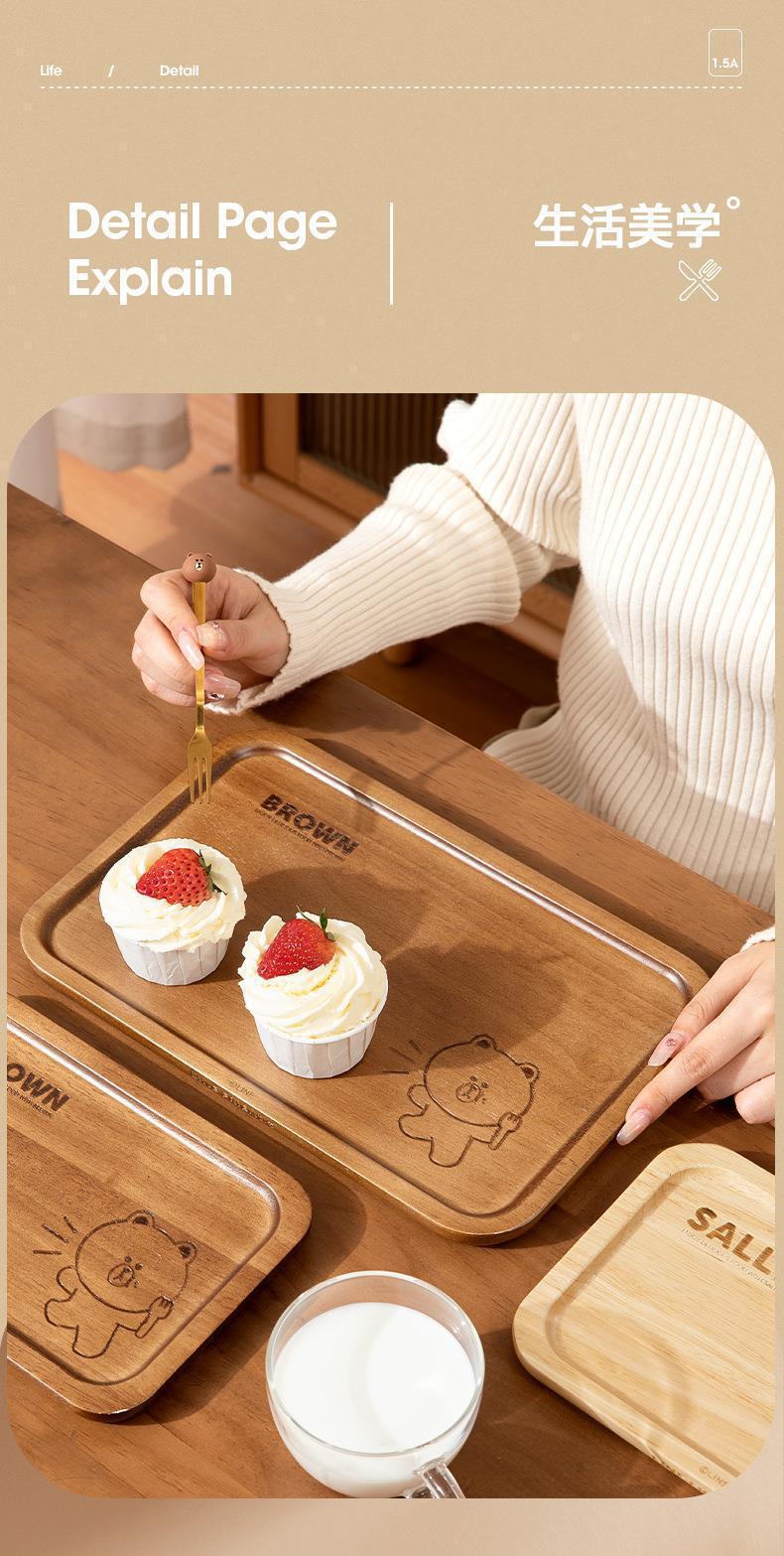 LINE FRIENDS 만화 나무 접시 어린이 점심 창조적 인 단열 트레이 안티 스케일 웨스턴 플레이트 가구스토어 가기