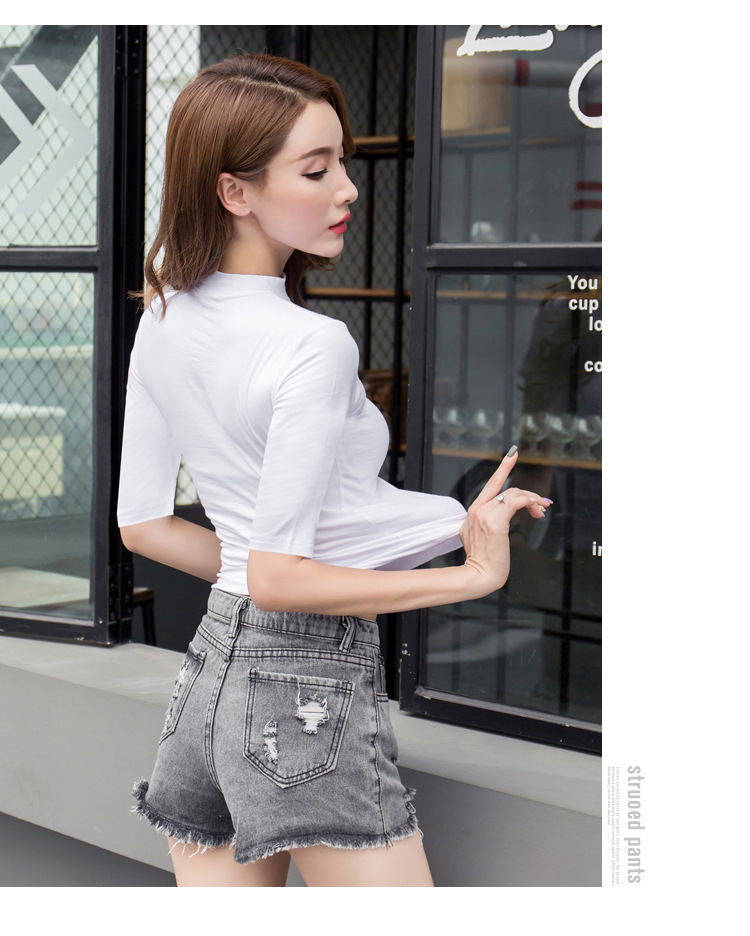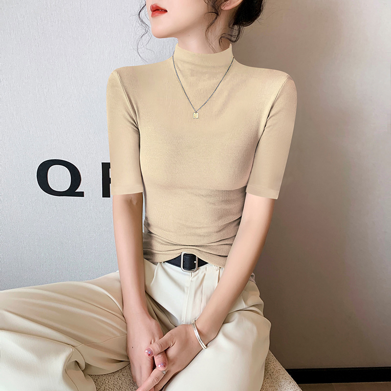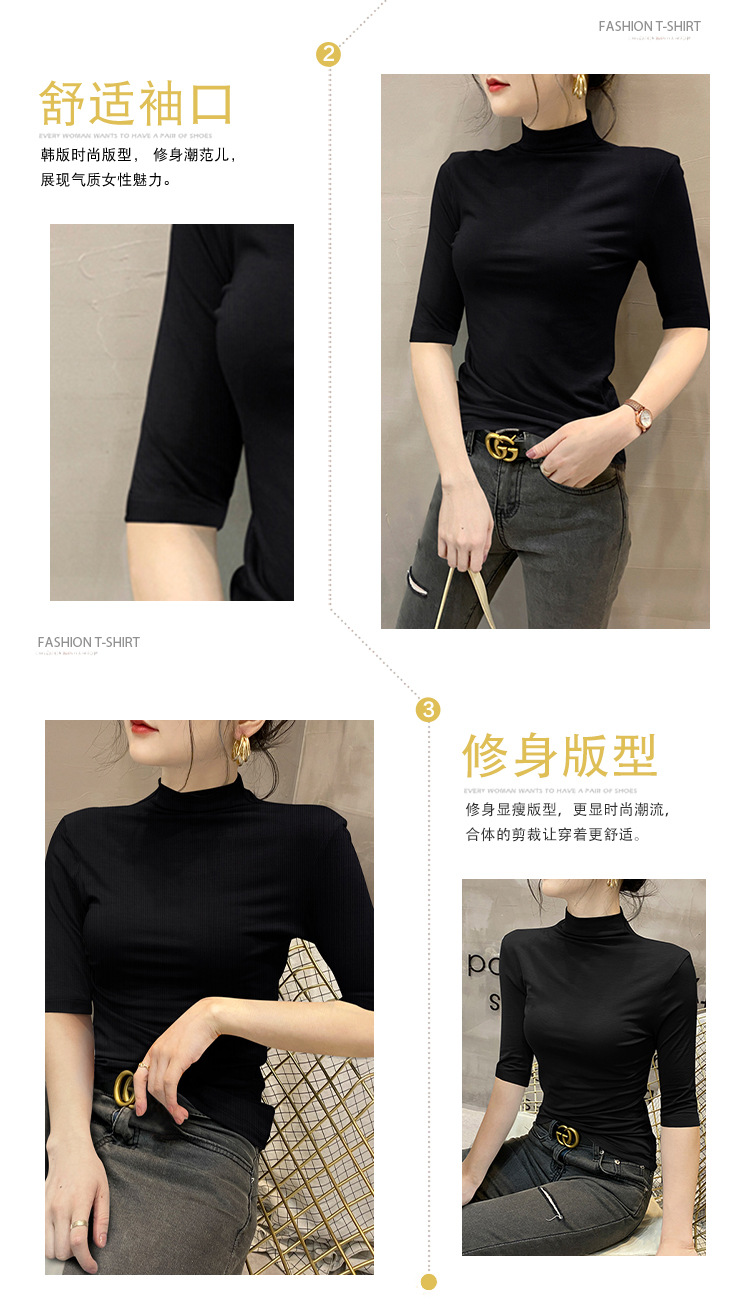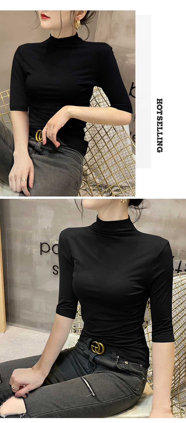 블랙 모달 하프 하이 칼라베이스 셔츠 미드 슬리브 티셔츠 여성용 여름 및 가을 반소매 얇은 세븐 슬리브 이너 탑스토어 가기