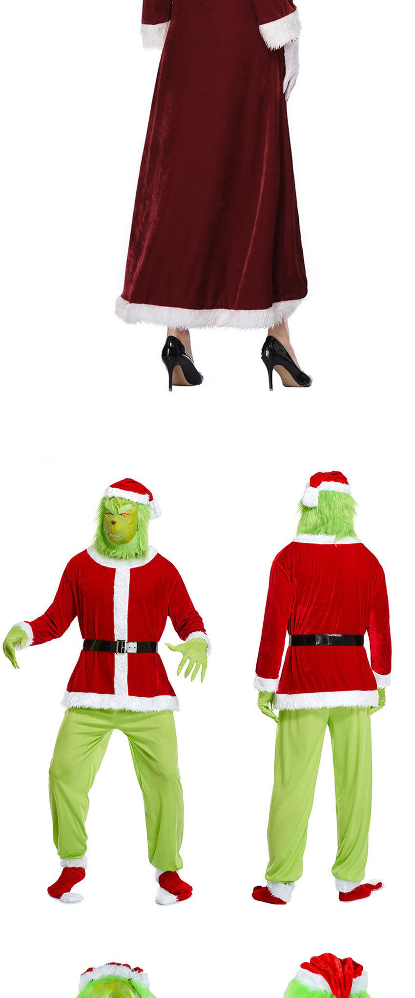 노인 코스프레 의상, 남녀 커플용, 녹색 머리가 있는 괴물 그린 공연 의상, 크리스마스 드레스, 코스프레 의상스토어 가기