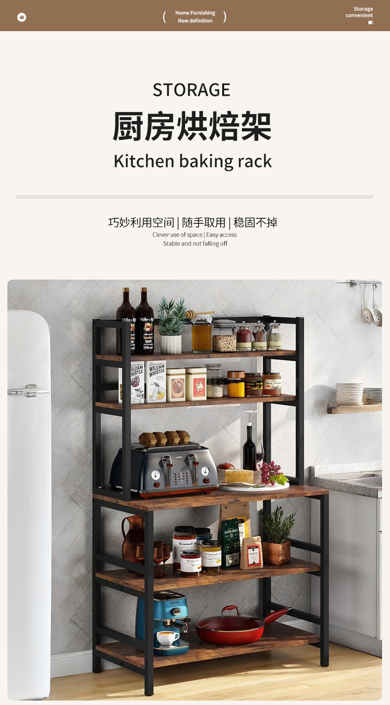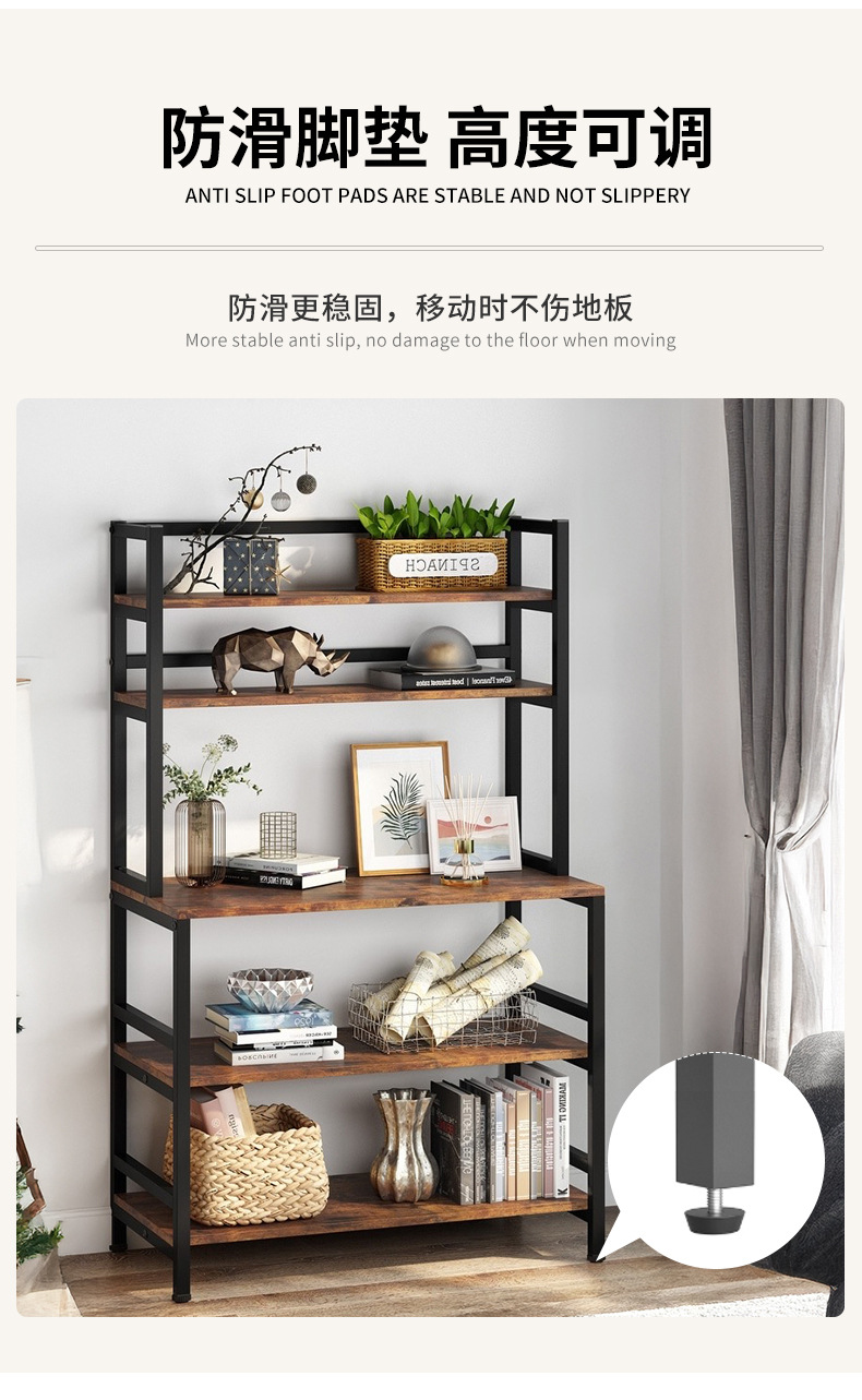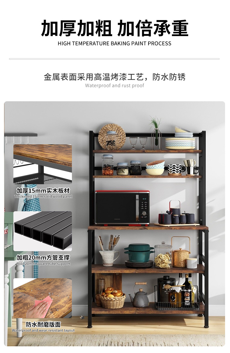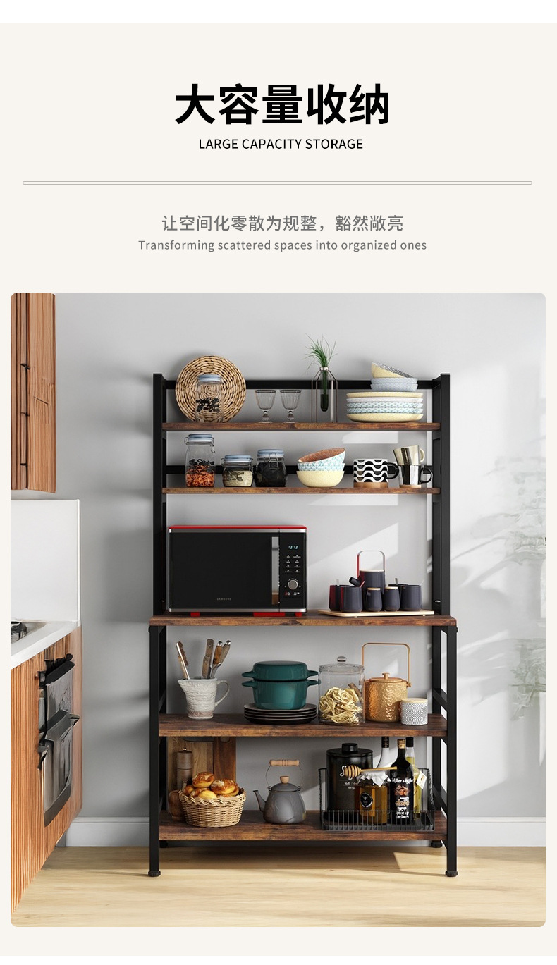 맞춤형 주방 선반 전자 레인지 베이킹 식기 보관 선반 바닥에 놓인 다층 강철 및 목재 펀치없는 보관 선반스토어 가기