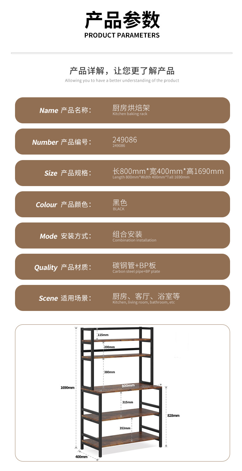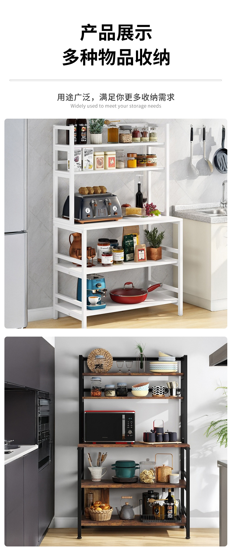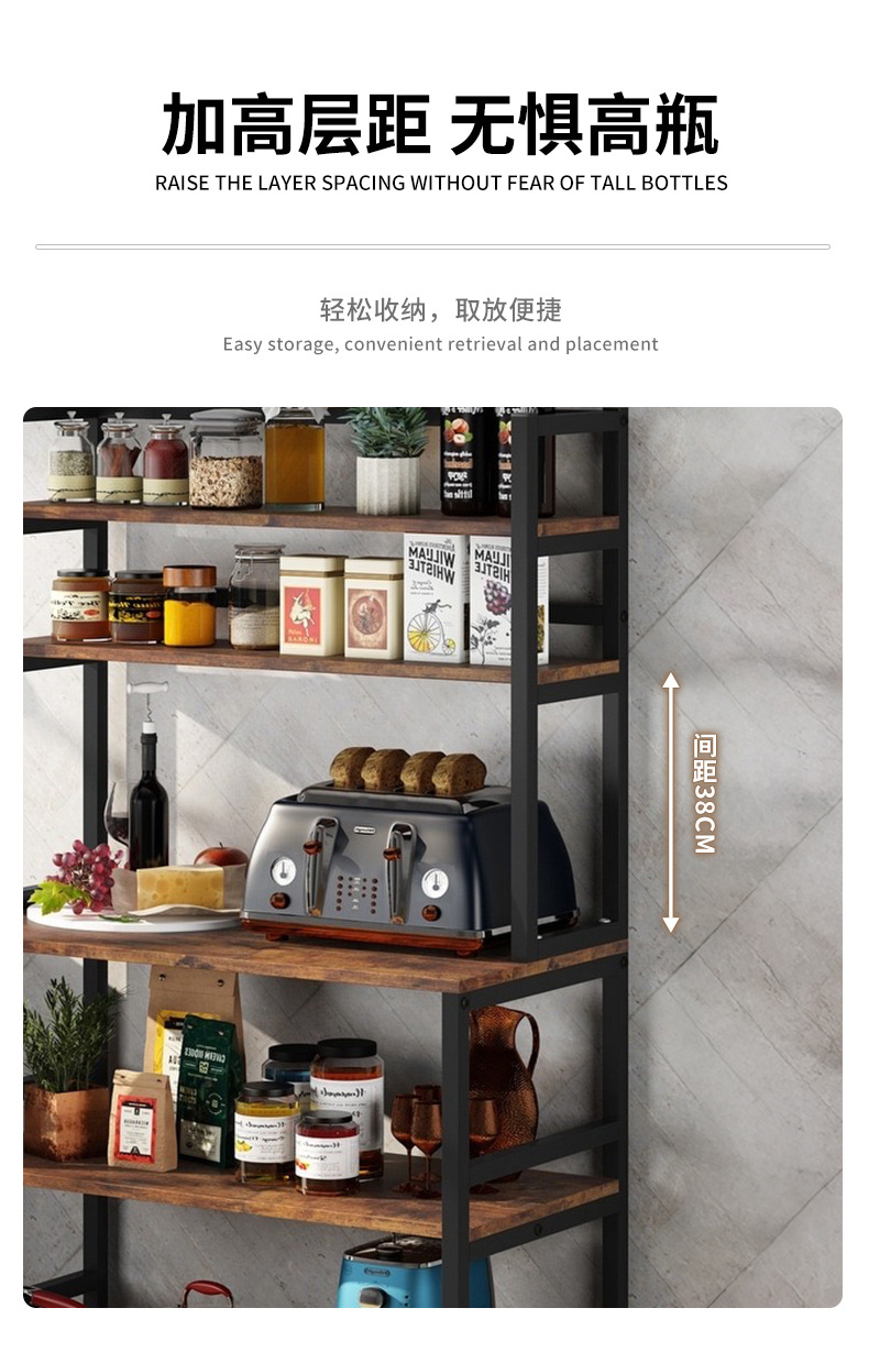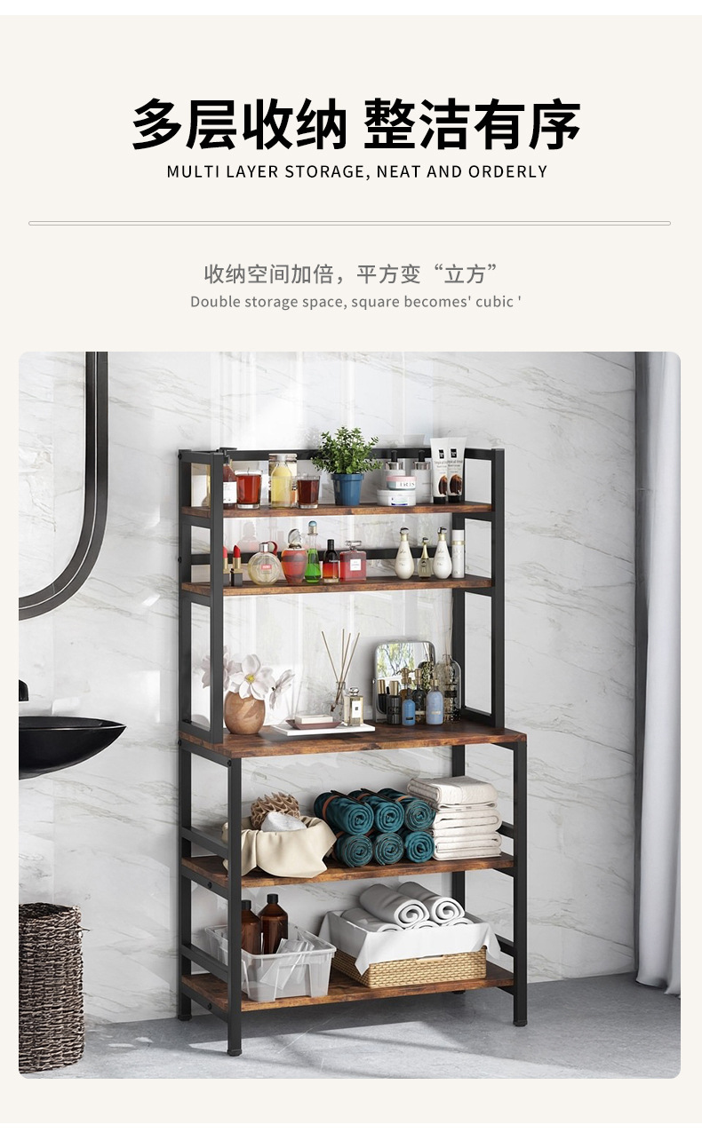 맞춤형 주방 선반 전자 레인지 베이킹 식기 보관 선반 바닥에 놓인 다층 강철 및 목재 펀치없는 보관 선반스토어 가기