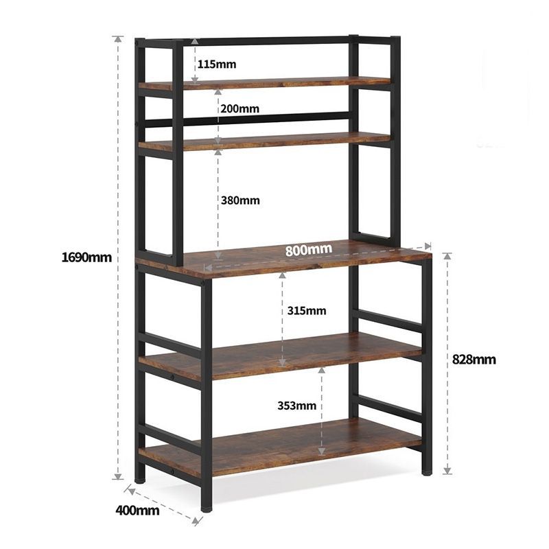 맞춤형 주방 선반 전자 레인지 베이킹 식기 보관 선반 바닥에 놓인 다층 강철 및 목재 펀치없는 보관 선반