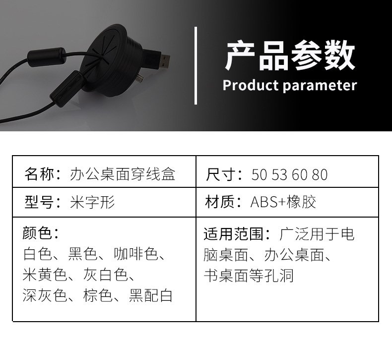 办公桌穿线盒桌面装饰盖电脑桌过线盒线孔盖