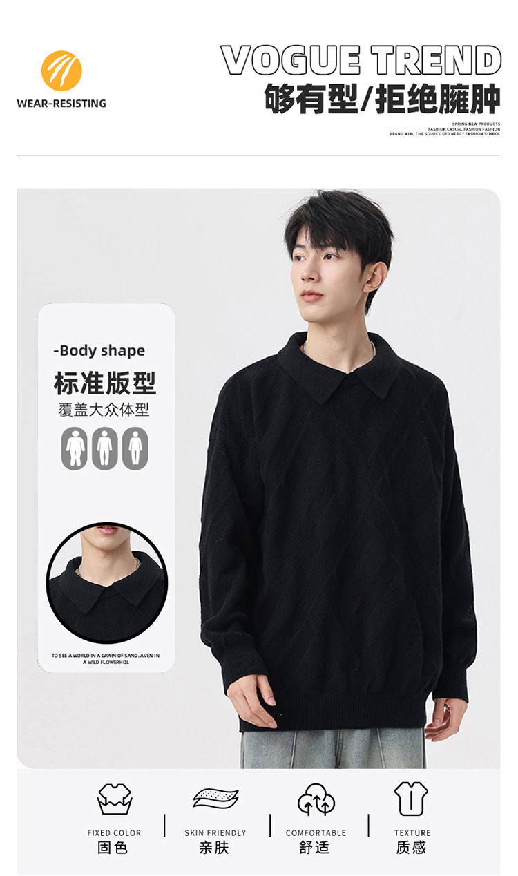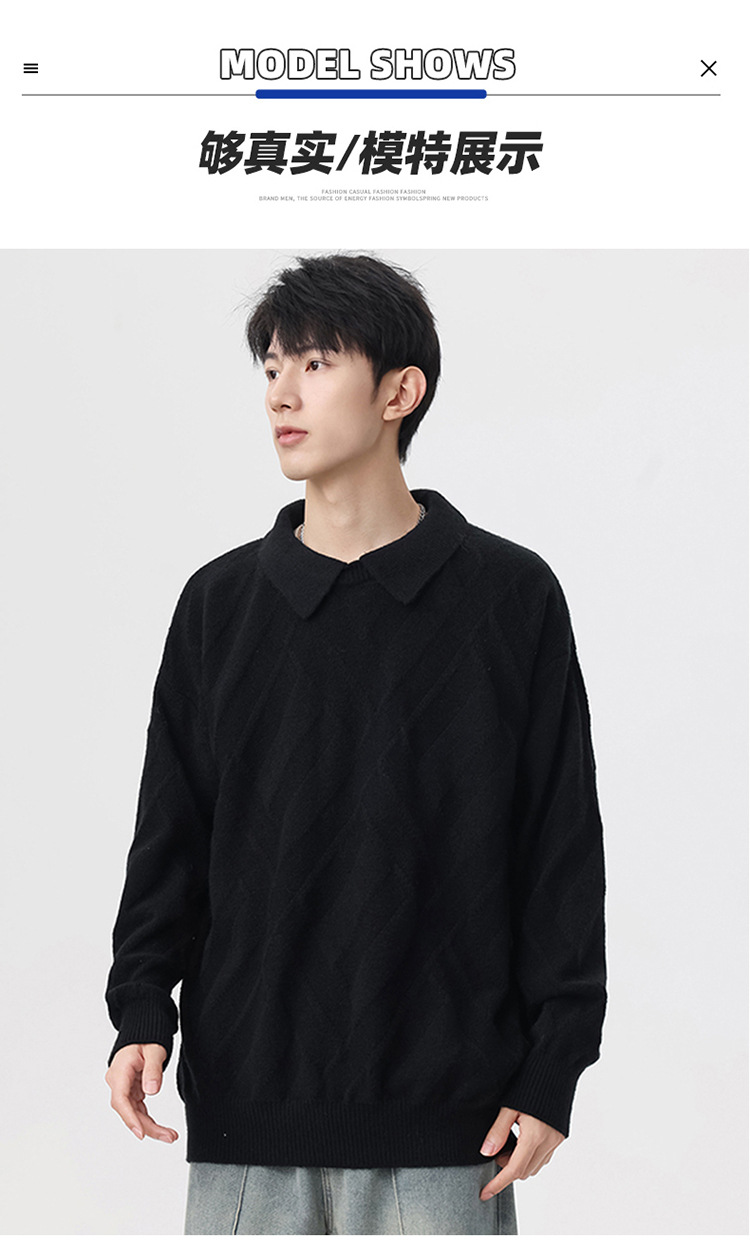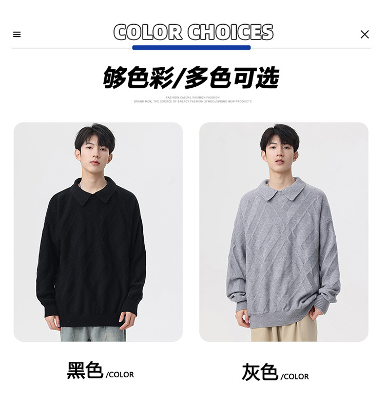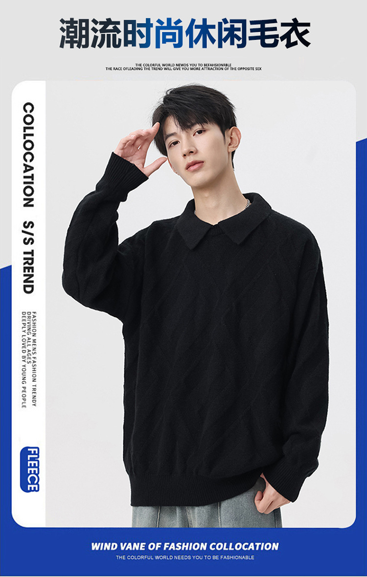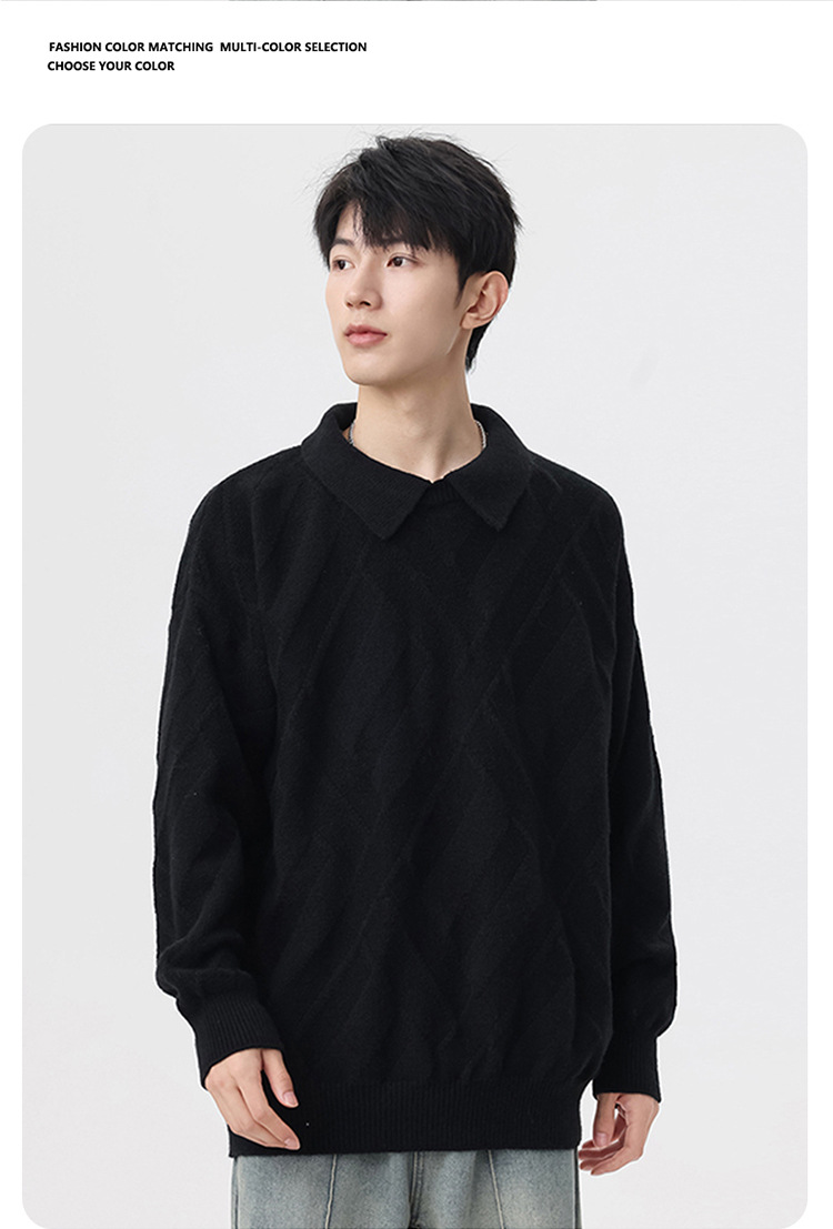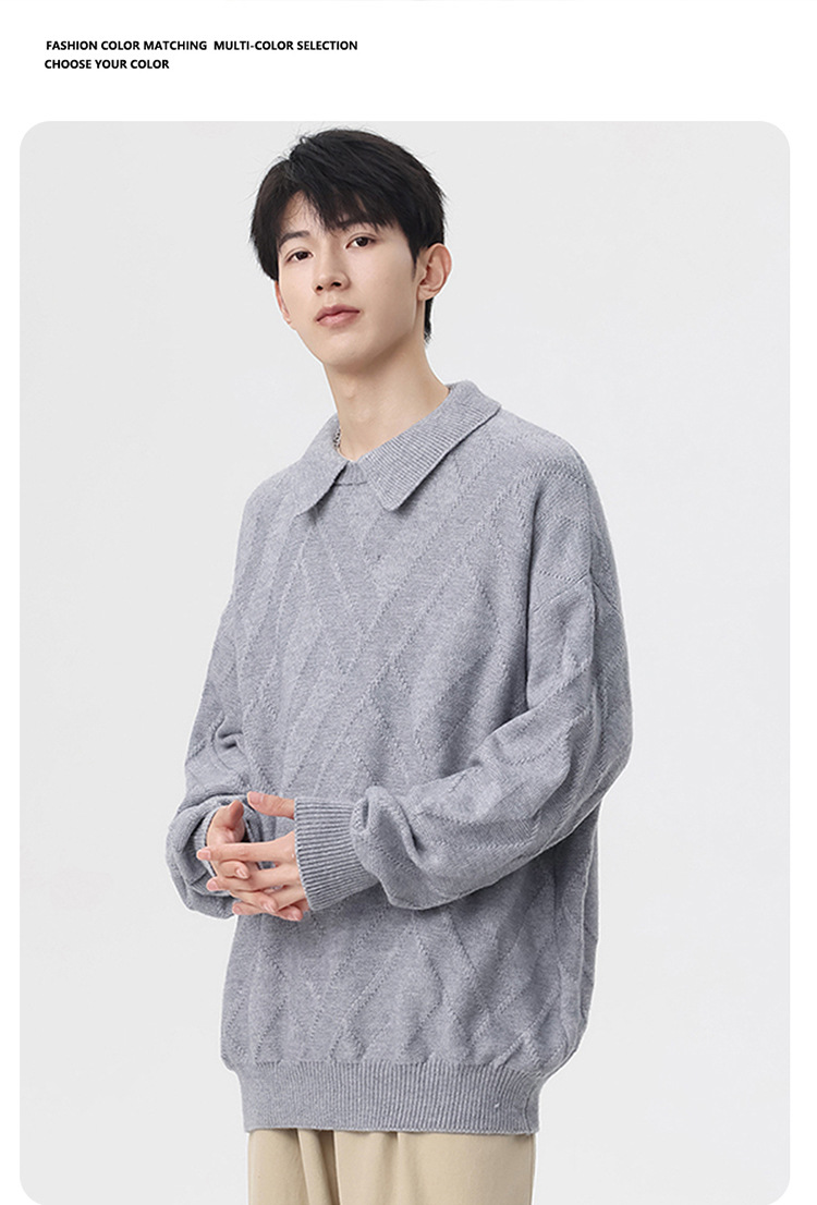 스웨터 남자 봄과 가을 긴팔 일본 스타일 신선한 Ins 트렌디 한 브랜드 느슨한 올 매치 폴로 셔츠 솔리드 컬러베이스 스웨터스토어 가기
