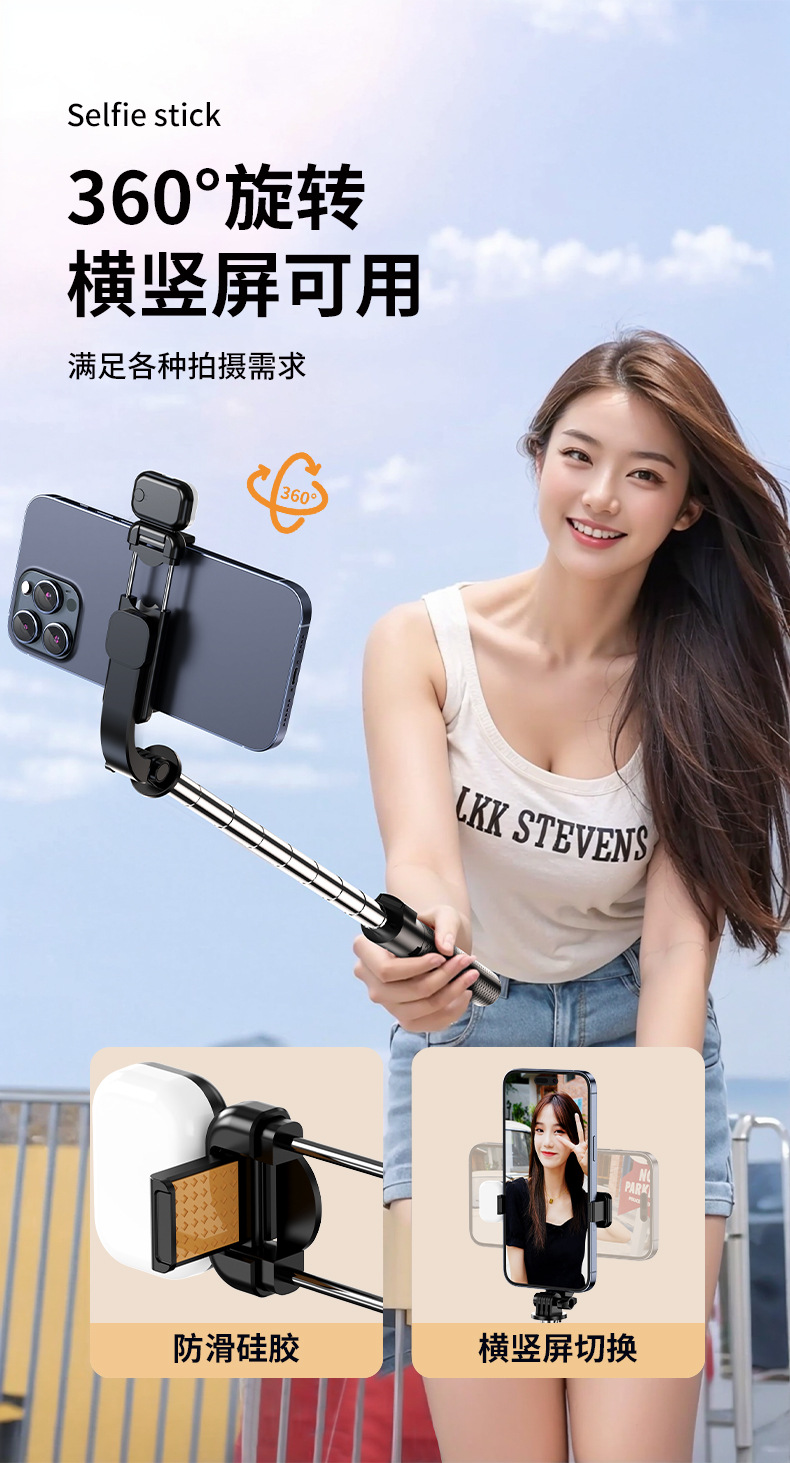 새로운 확장 블루투스 휴대 전화 셀카 스틱 라이브 데스크탑 브래킷 보편적 인 사진 촬영 비디오 여행 소스 제조업체