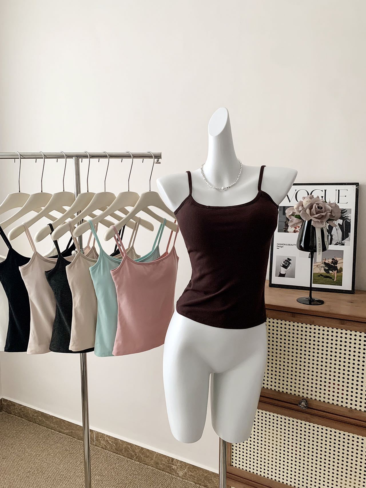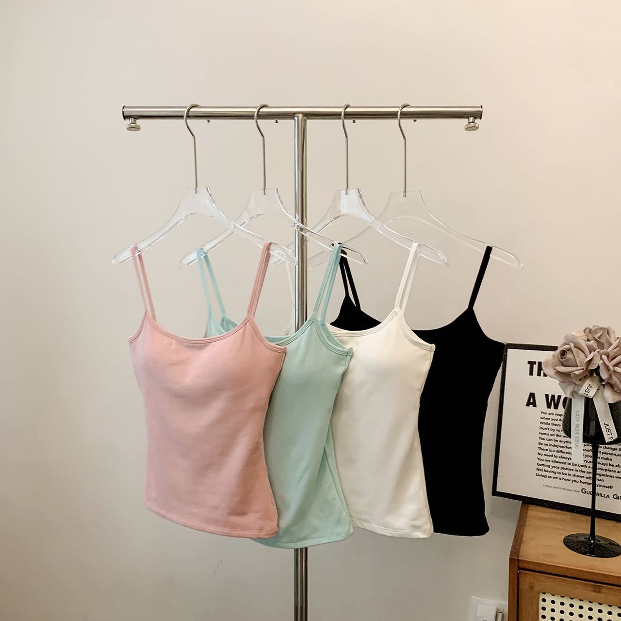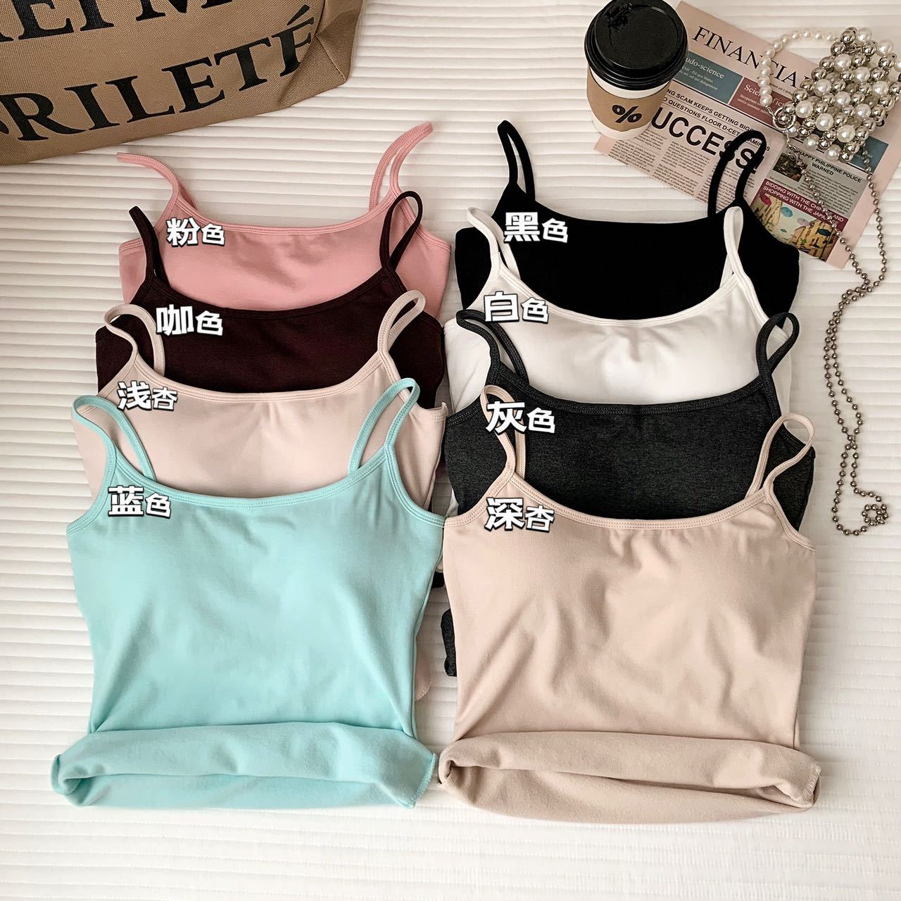 690 # 레이온 브러시 벨벳 열 조끼 여성의 섹시한 슬림 속옷 겉옷 가슴 패드 캐미솔 탑