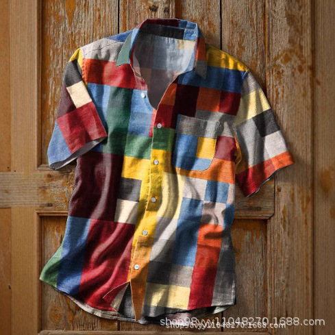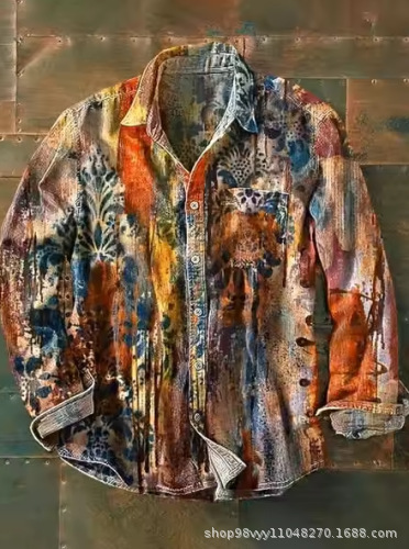 2025년 신상 아마존 레트로 스타일 인기 배색 체크무늬 3D 프린팅 트렌디 긴팔 버튼업 셔츠 (남성용)스토어 가기