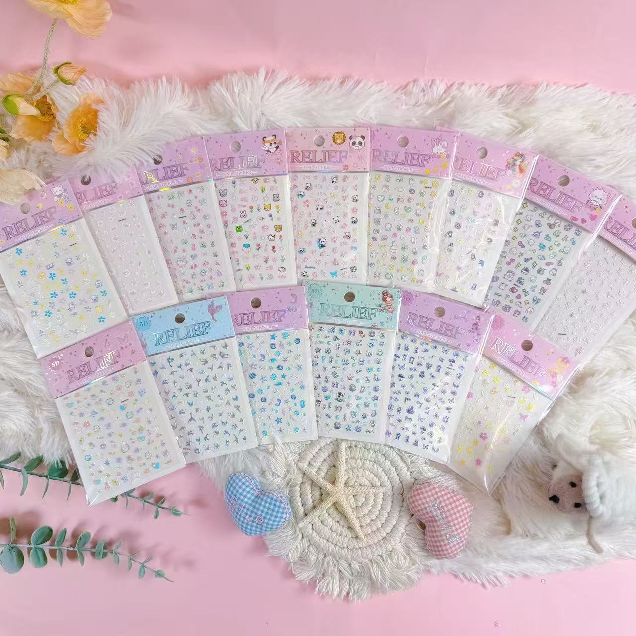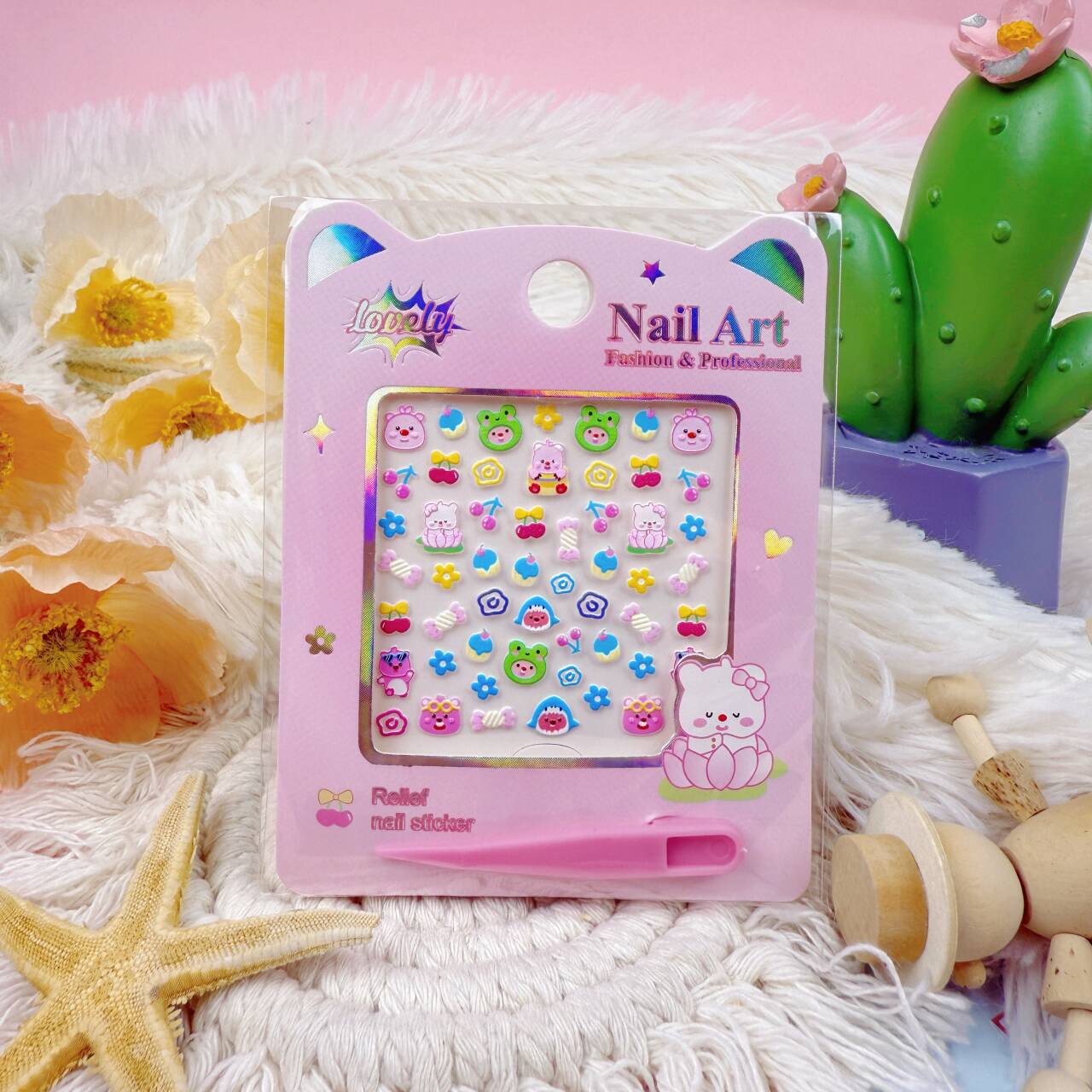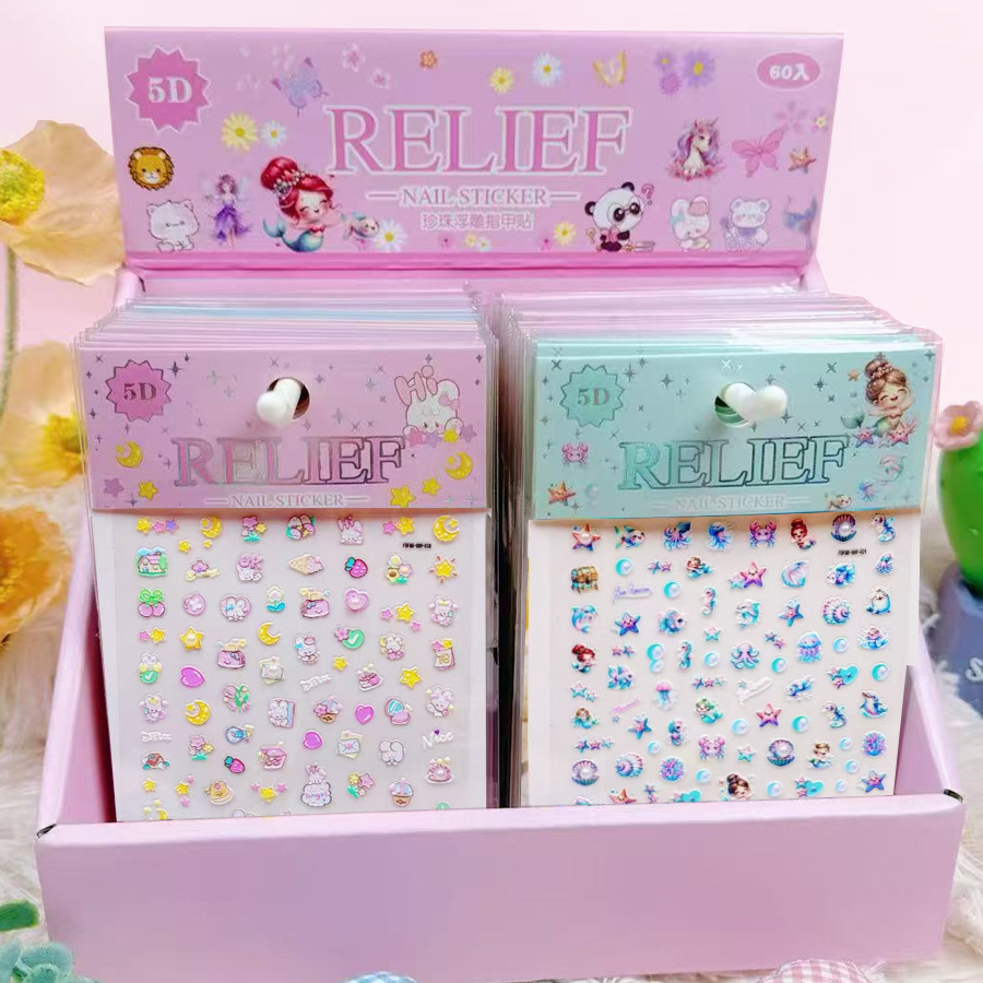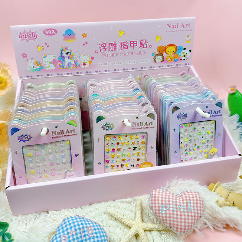 60 양각 어린이 네일 스티커 DIY 어린이 창조적 인 네일 스티커 귀여운 소녀 만화 양각 스티커스토어 가기