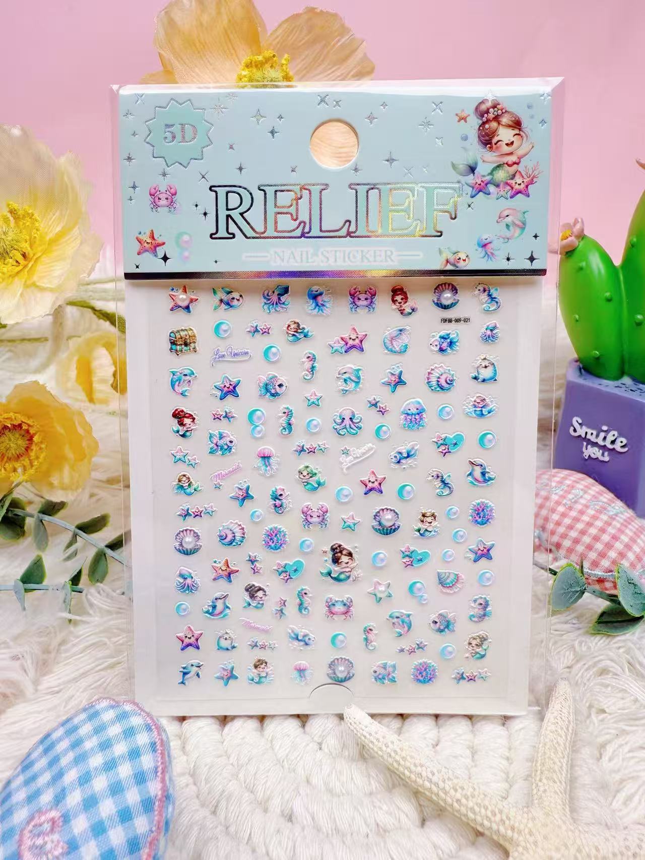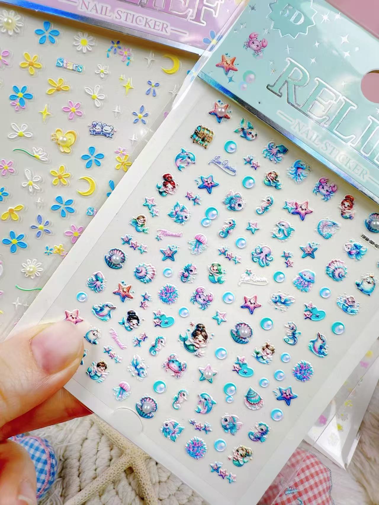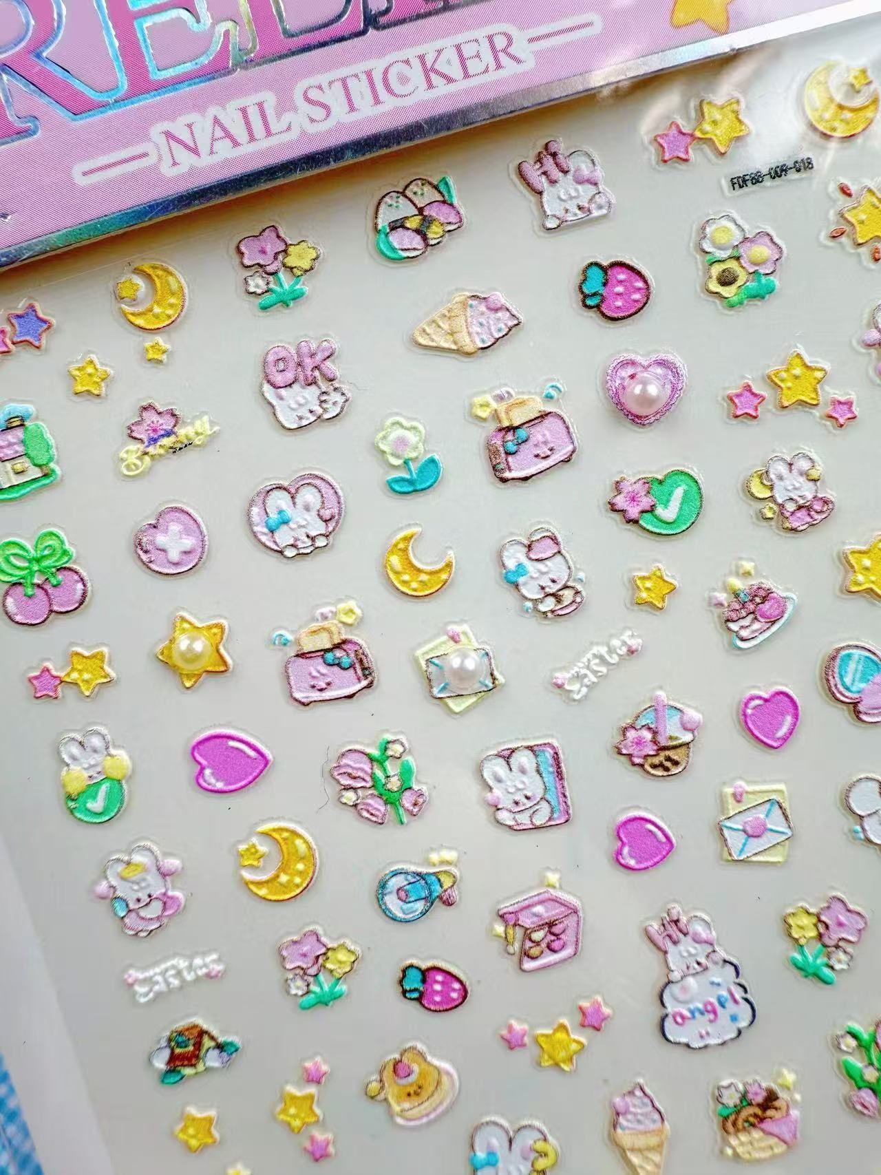 60 양각 어린이 네일 스티커 DIY 어린이 창조적 인 네일 스티커 귀여운 소녀 만화 양각 스티커스토어 가기