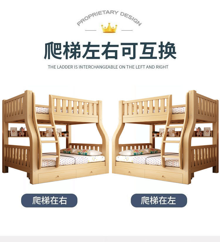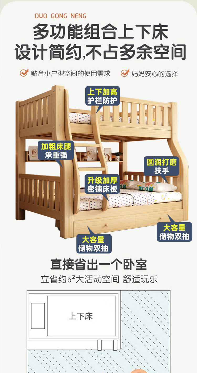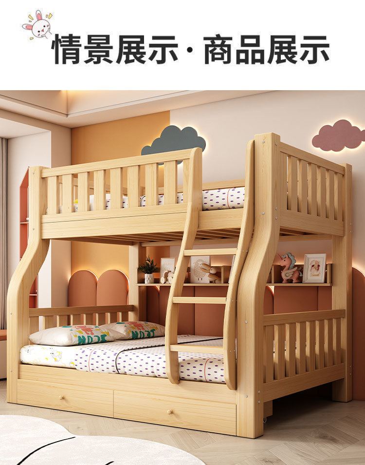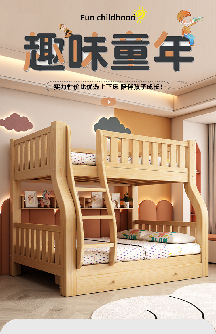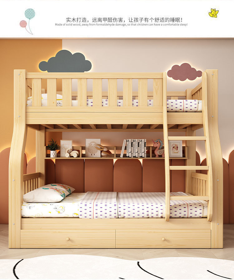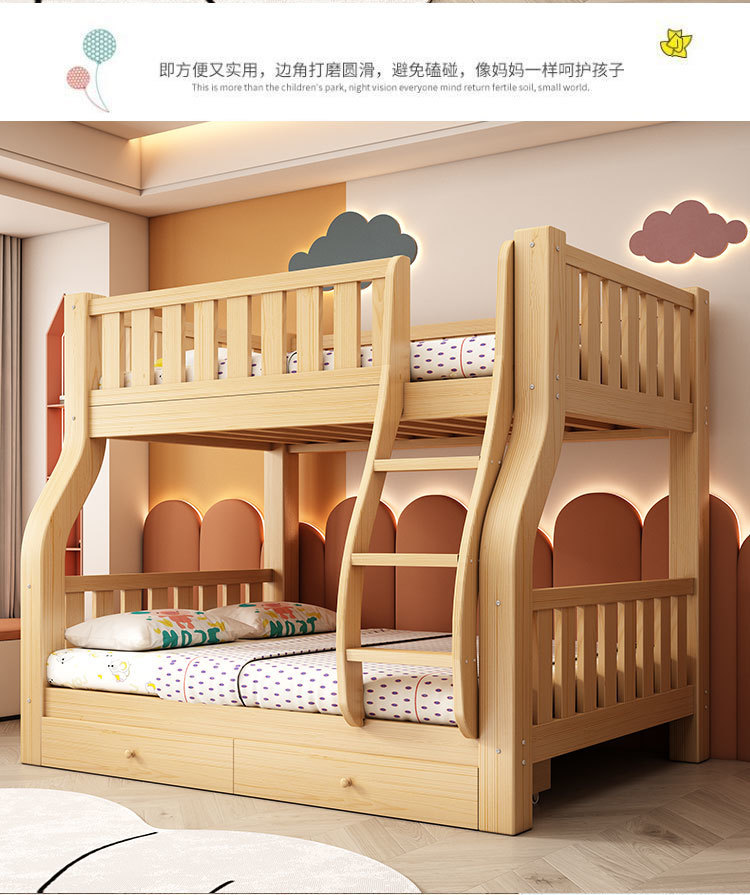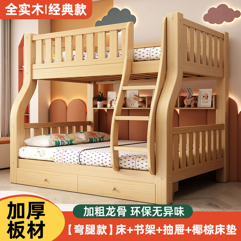 풀 솔리드 우드 침대 이층 침대 높고 낮은 침대 다기능 작은 아파트 어린이 침대 침대 2 층 침대
