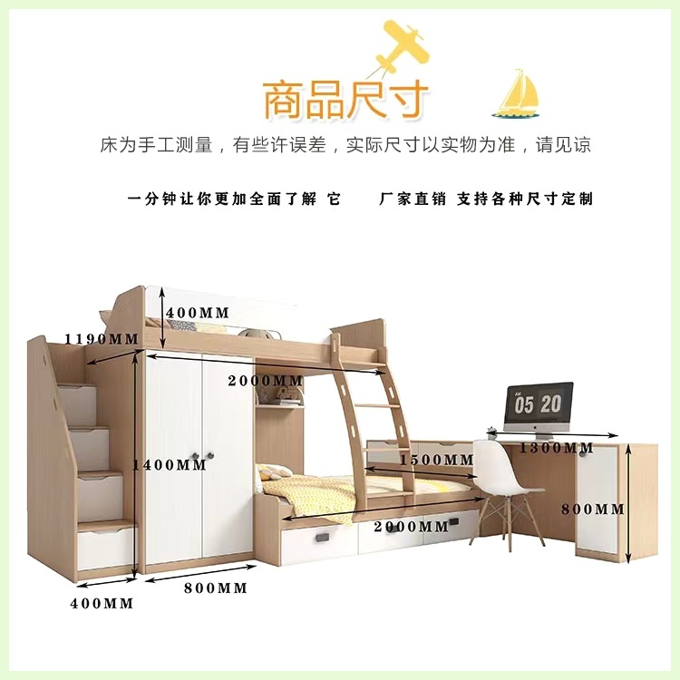 • 1.5*2.0/책상형 + 상하침대 E0등급 다층 원목보드