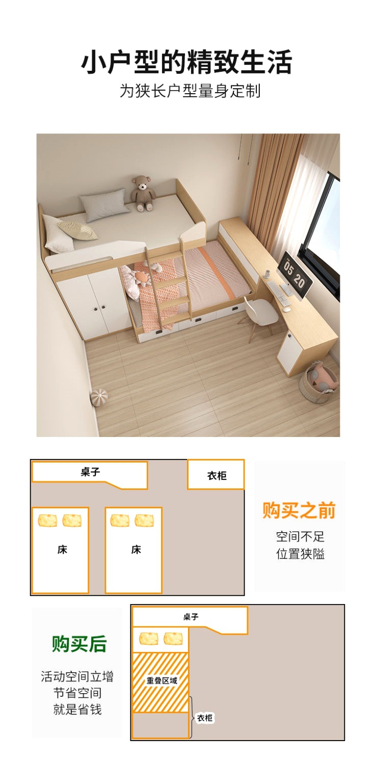 • 1.2*2.0/책상형 + 상하침대 E0등급 다층 원목판