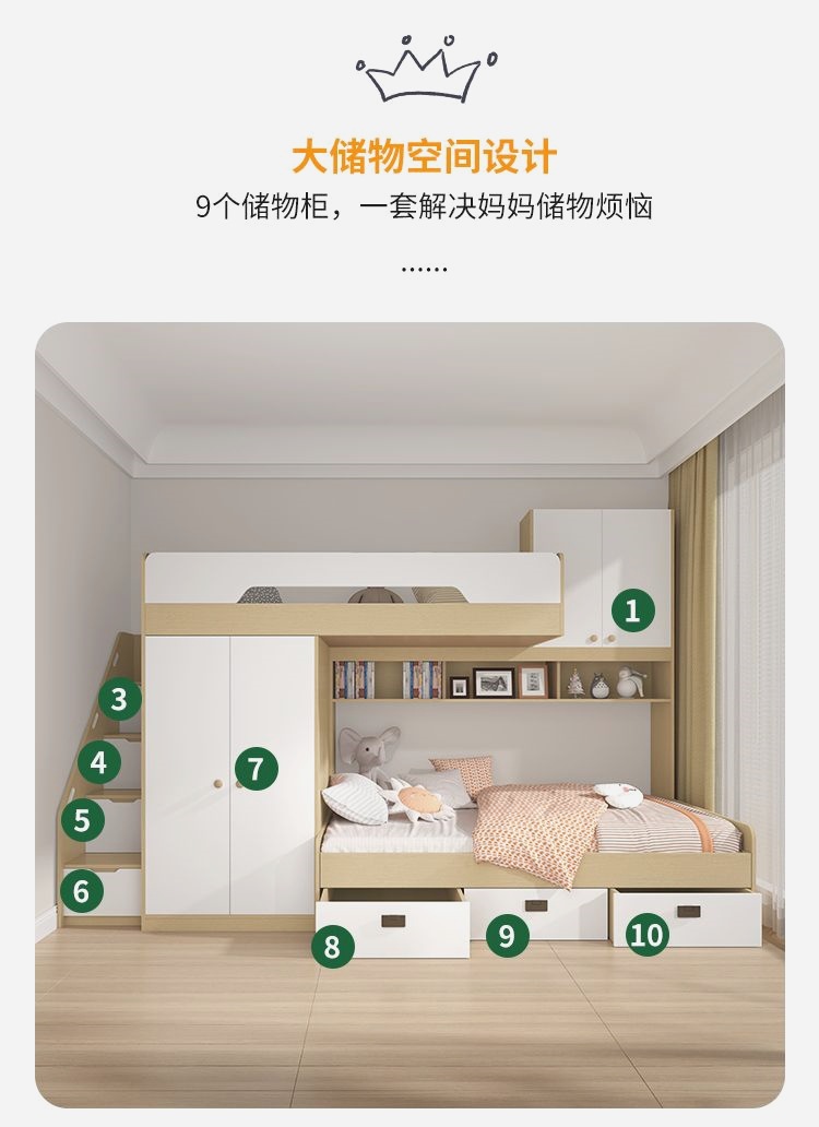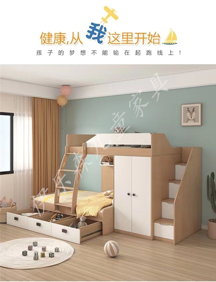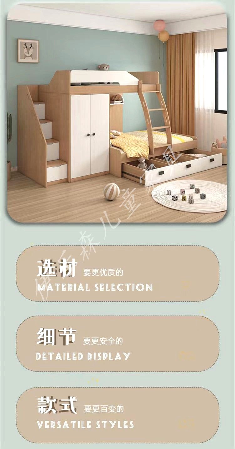 계단 달린 침대 작은 아파트 이층 어린이 높은 침대 책상 통합 상하 침대 어머니 침대