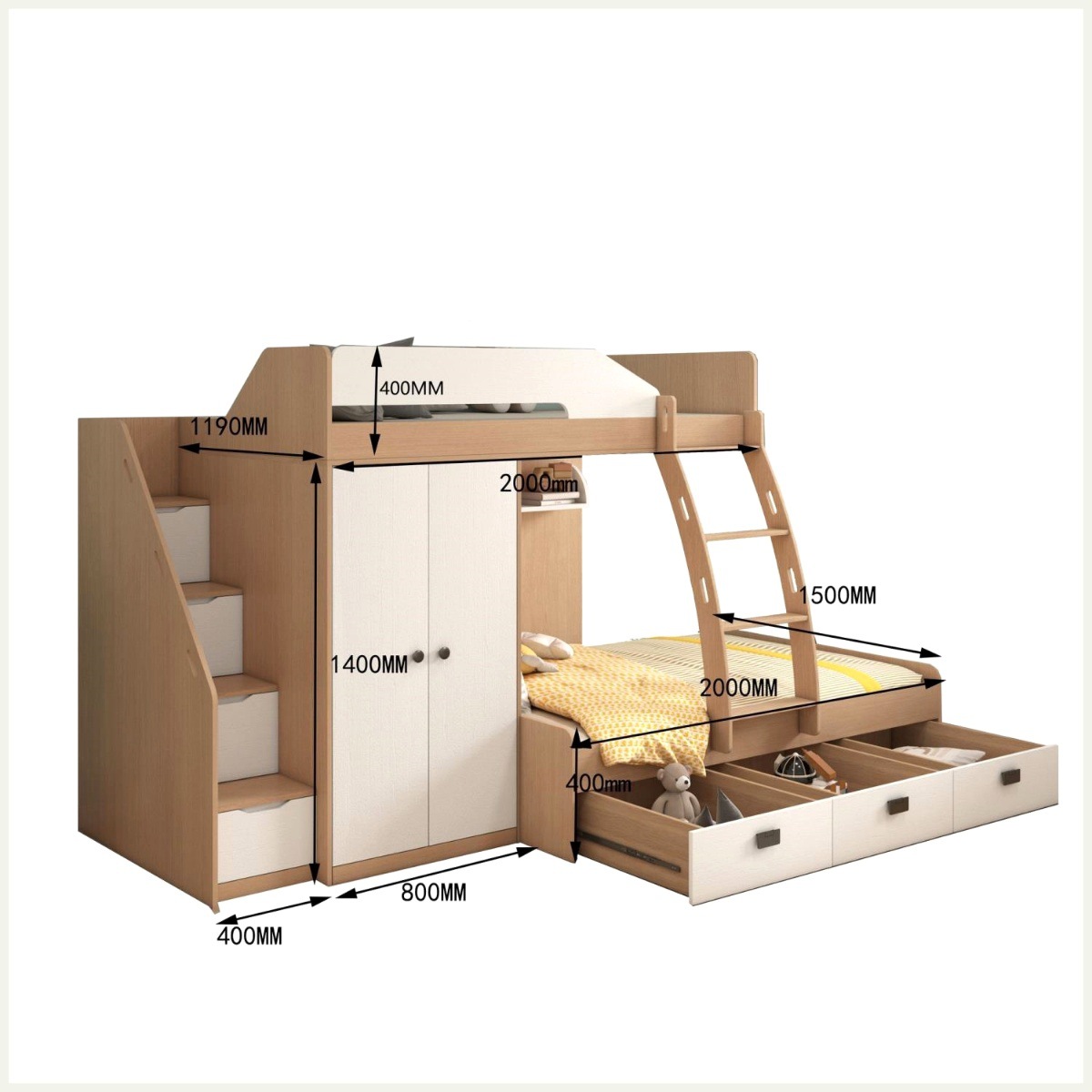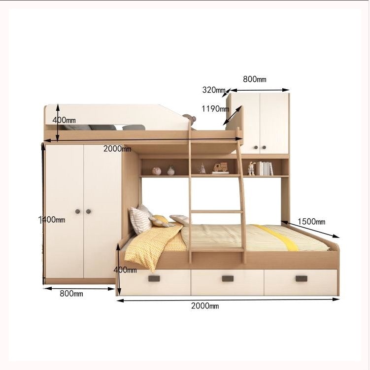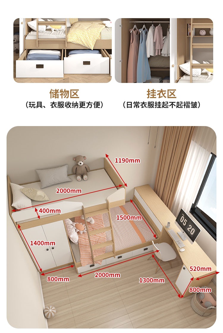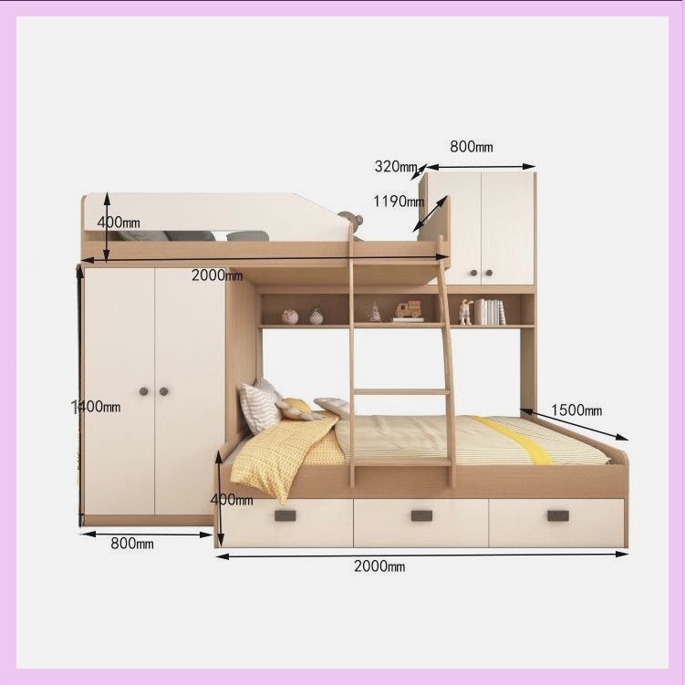 • 1.35*2.0/옷장 모델 + 상부 및 하부 침대 E0 등급 다층 원목 보드